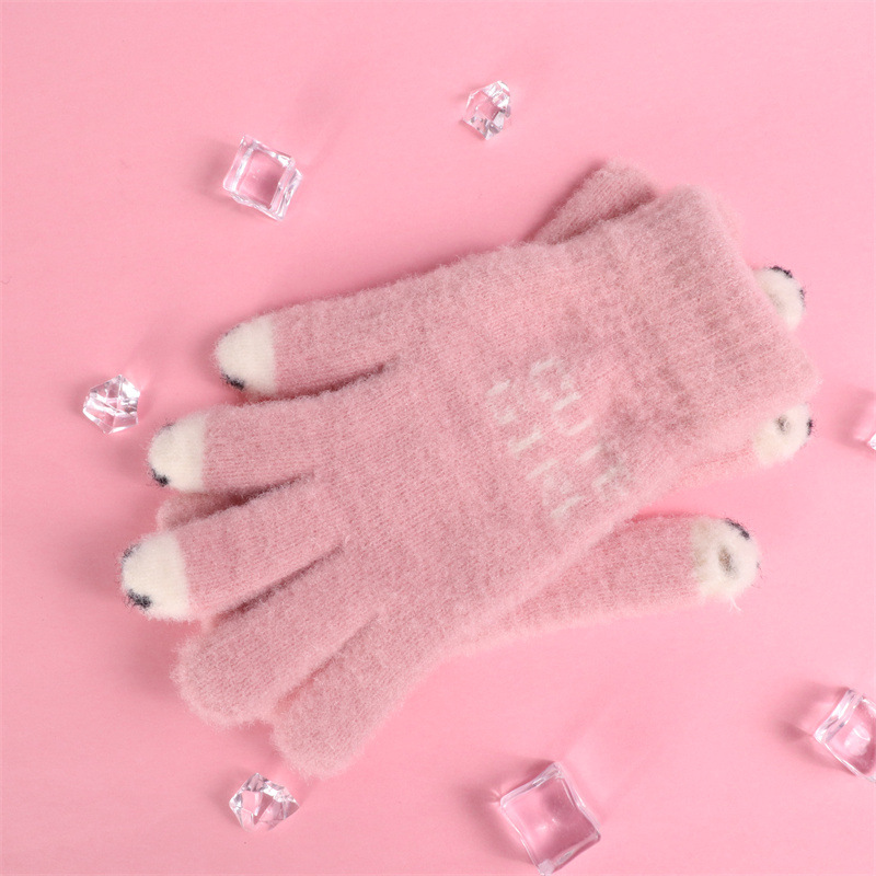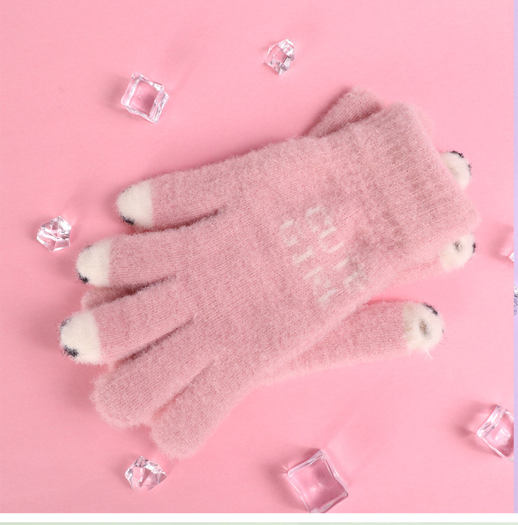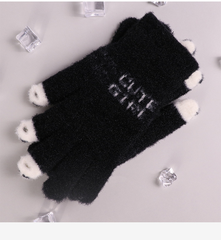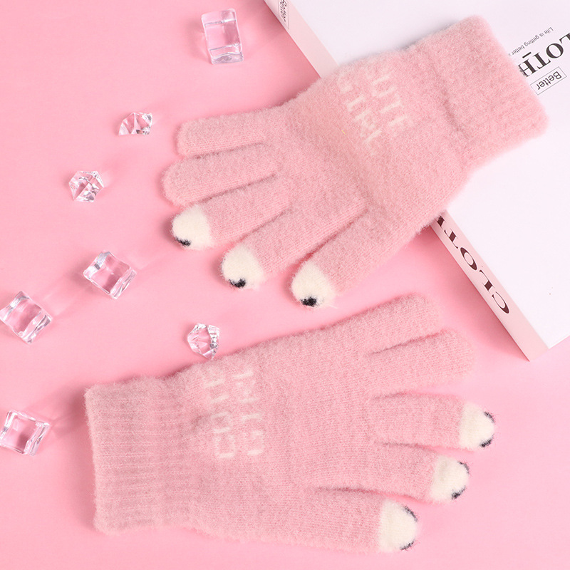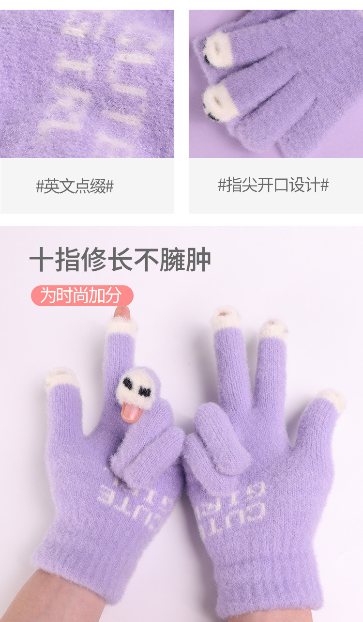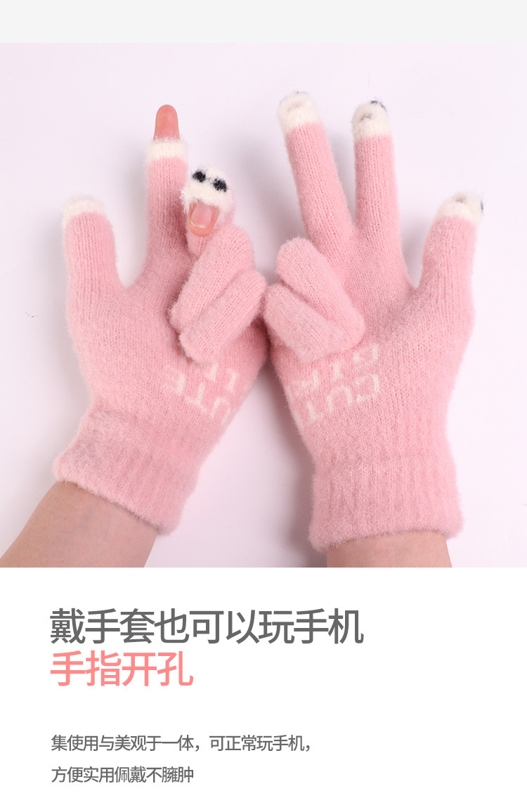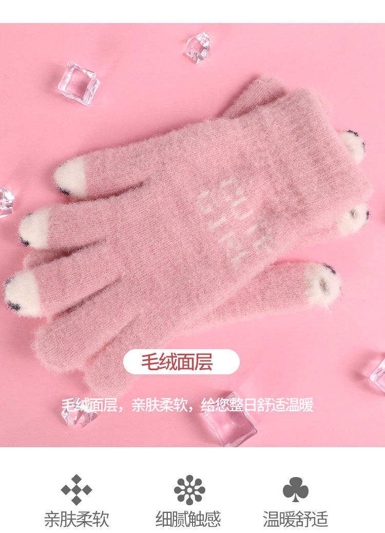 手套女士冬季新款露指加厚保暖加绒可爱学生防寒毛线分指触屏手套
