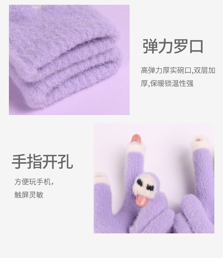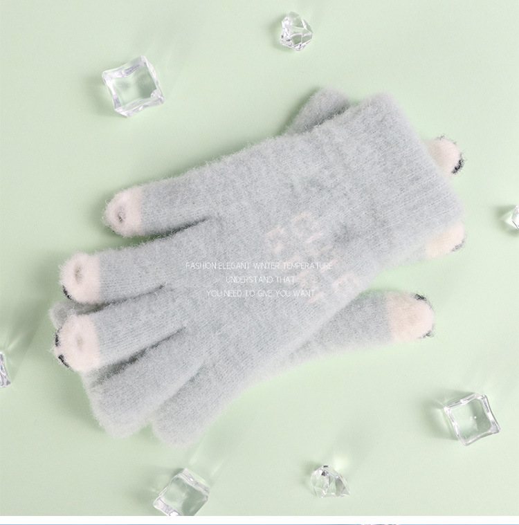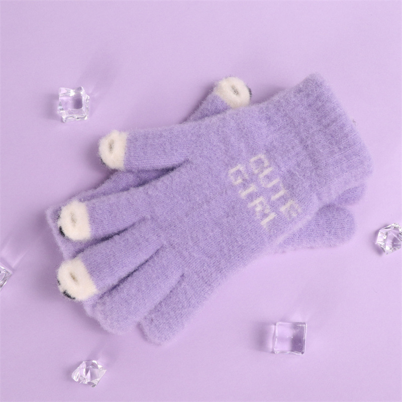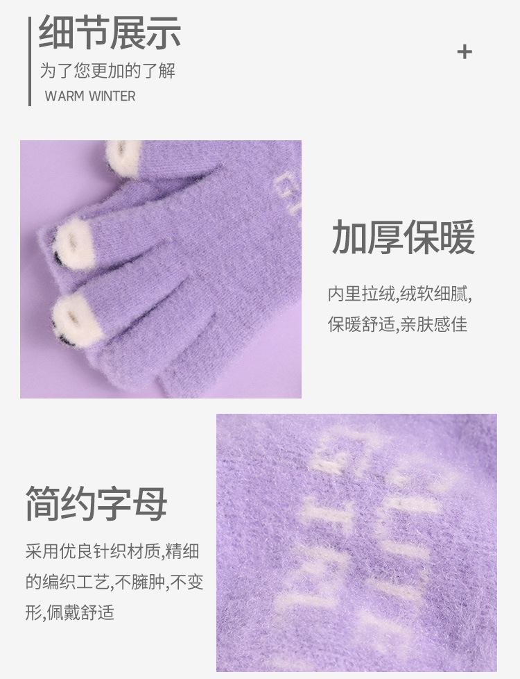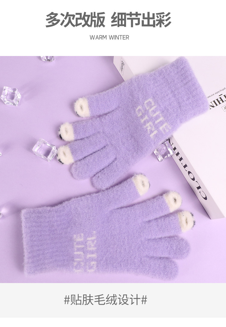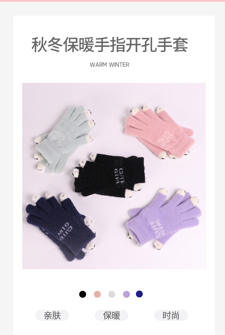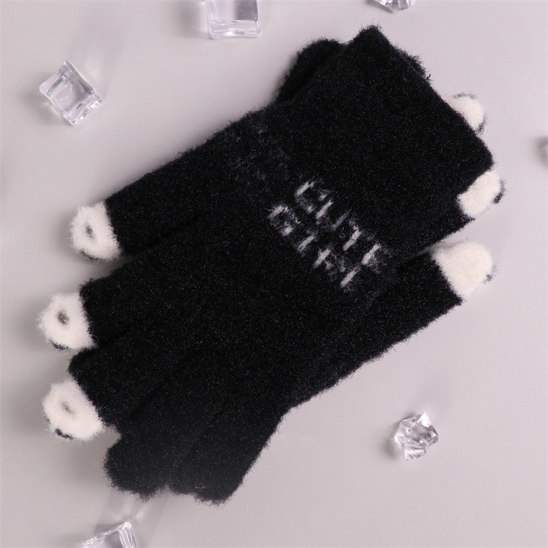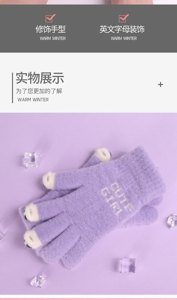 手套女士冬季新款露指加厚保暖加绒可爱学生防寒毛线分指触屏手套