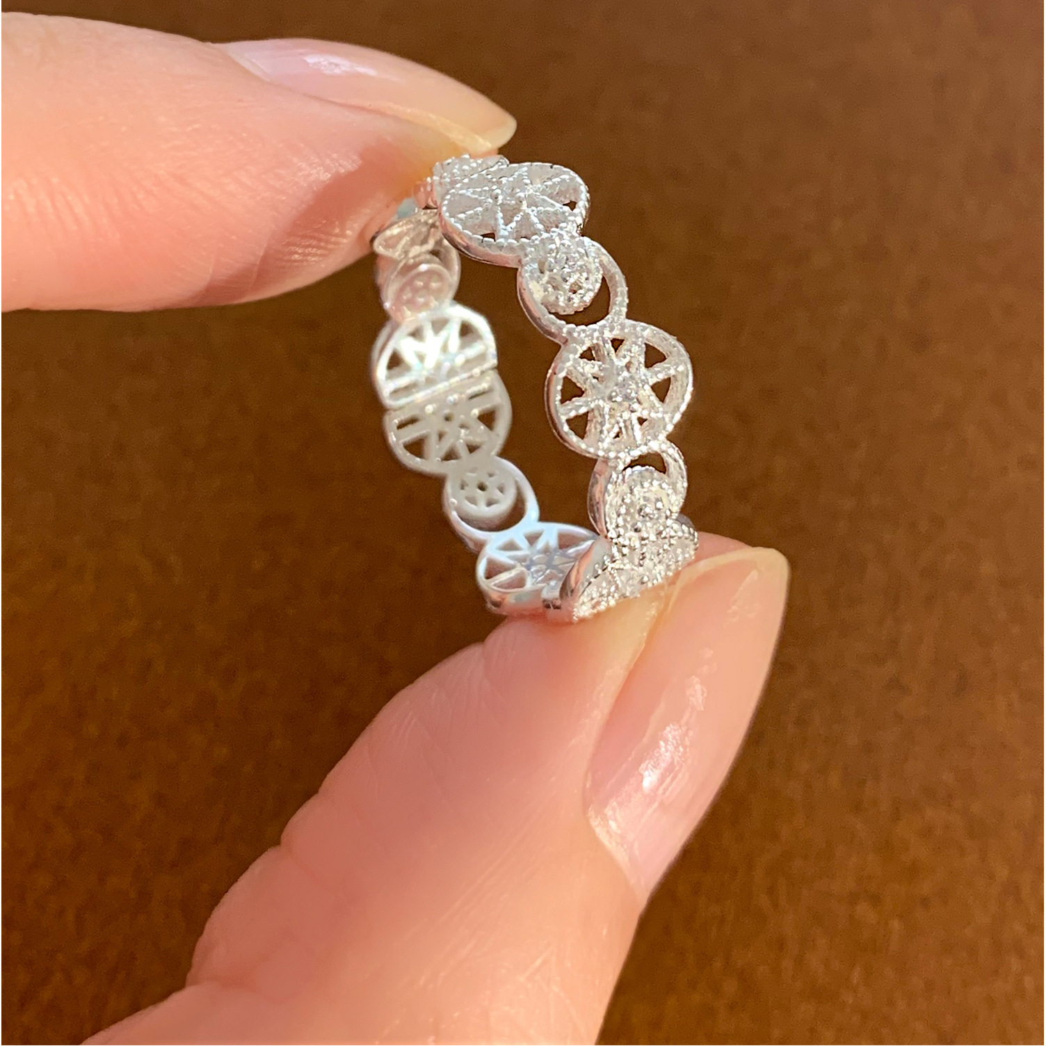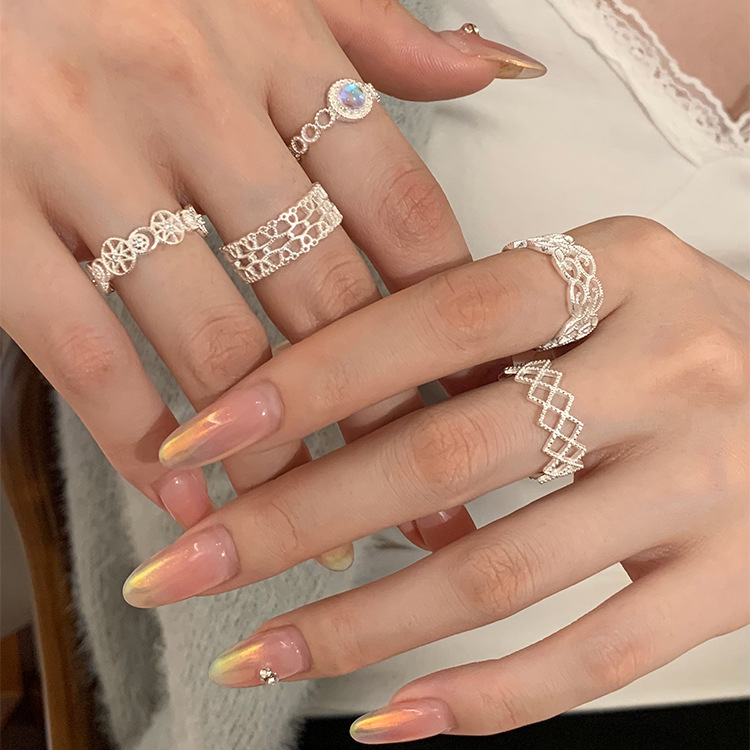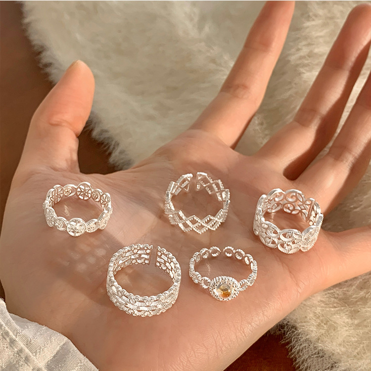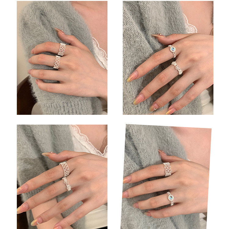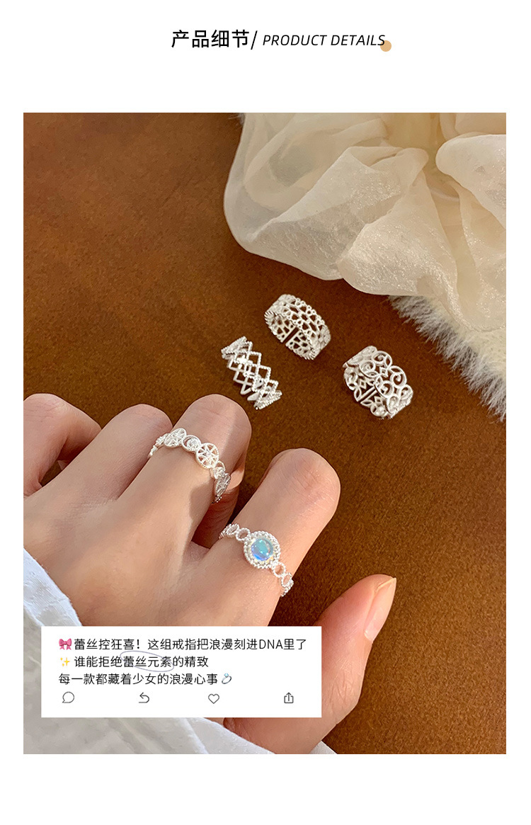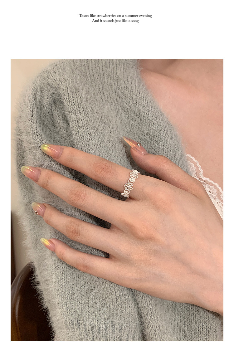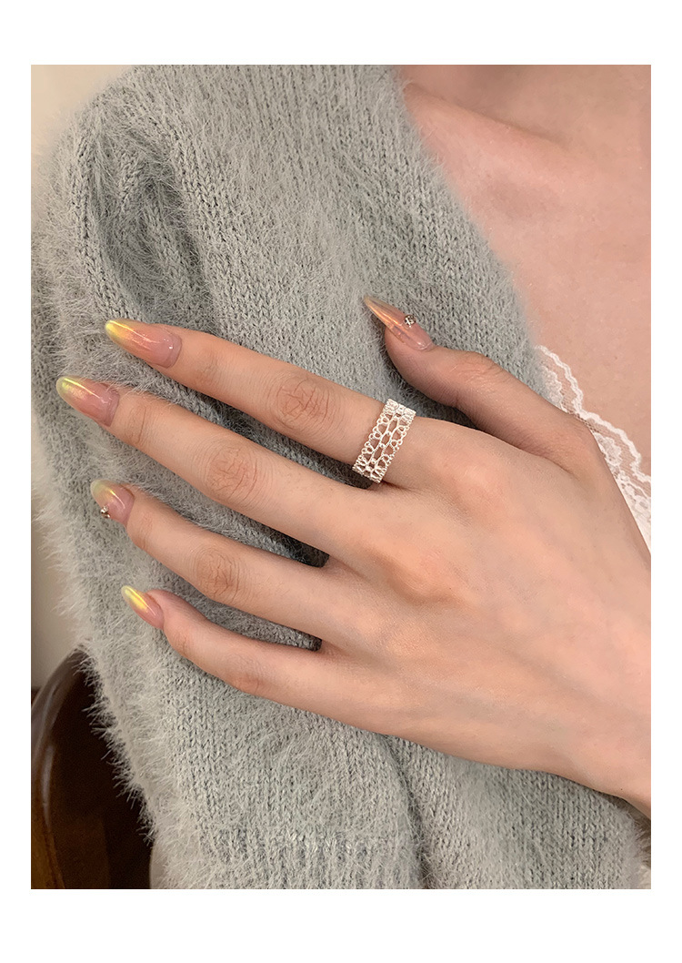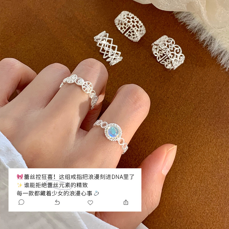 S925纯银小清新蕾丝戒指女轻奢小众高级感百搭叠戴食指戒新品手饰