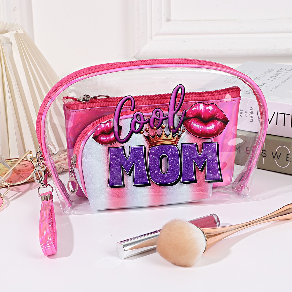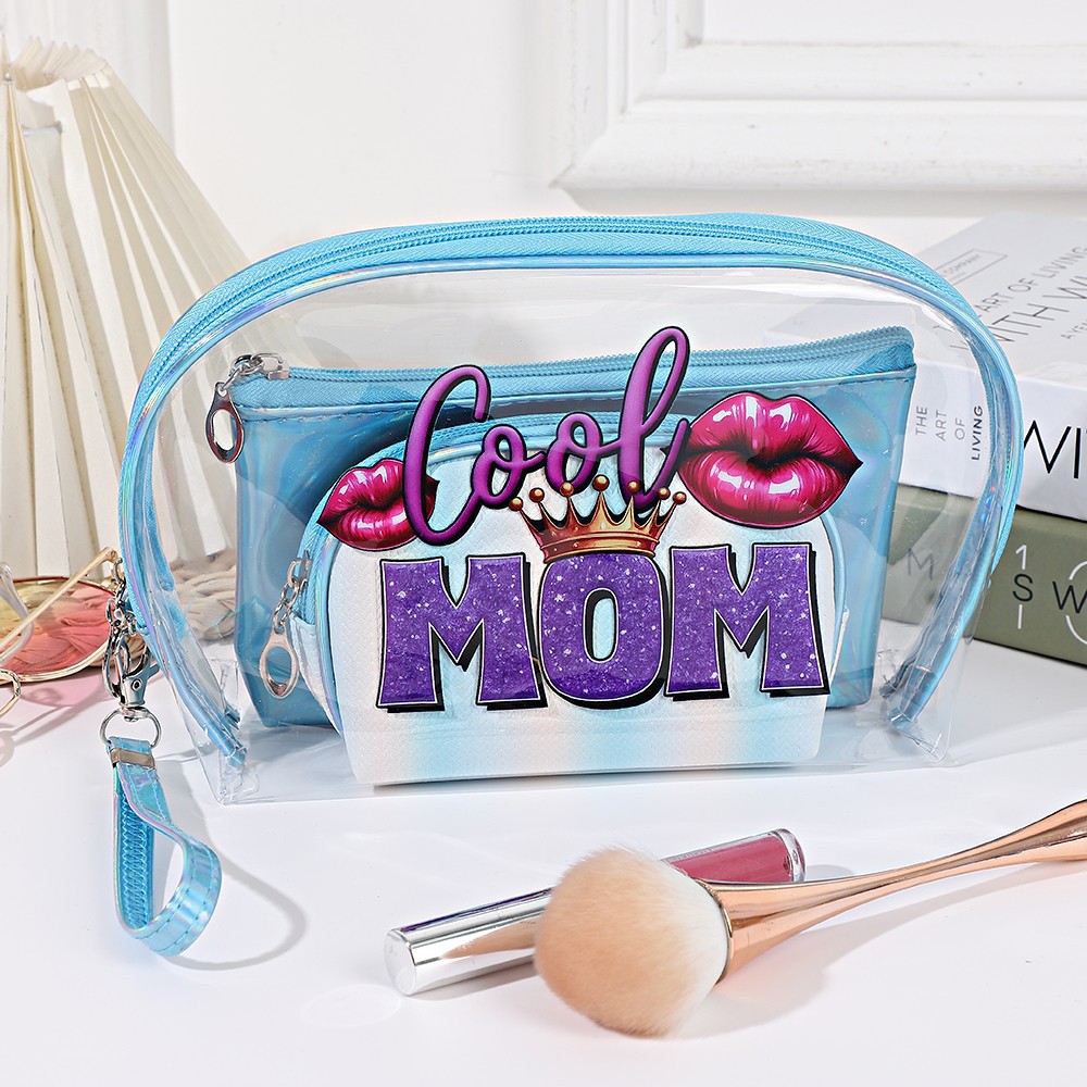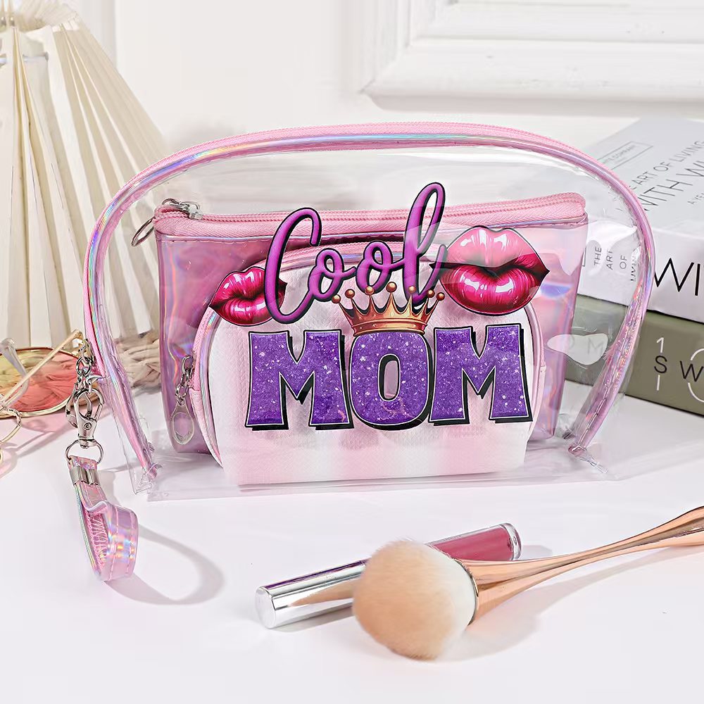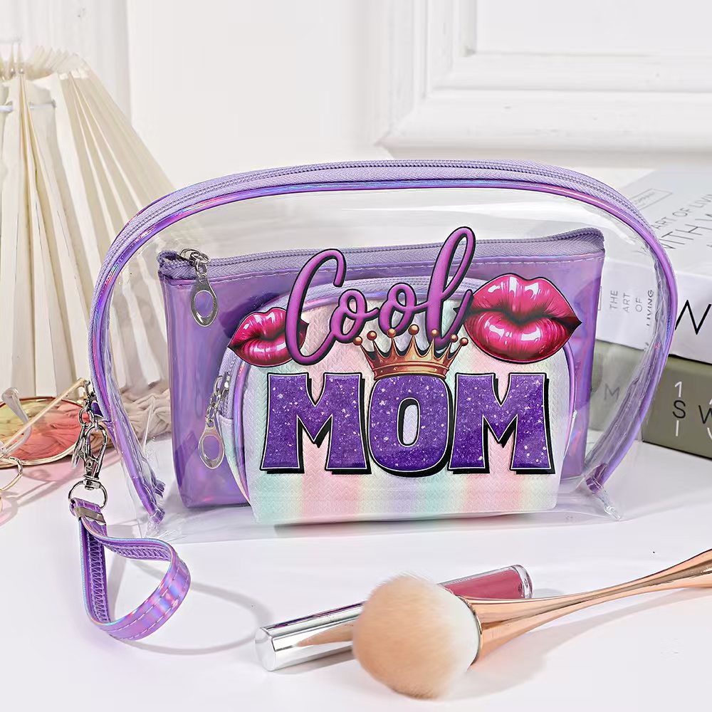 新款跨境透明条纹彩虹三件套手提化妆包洗漱包化妆品旅行收纳包
