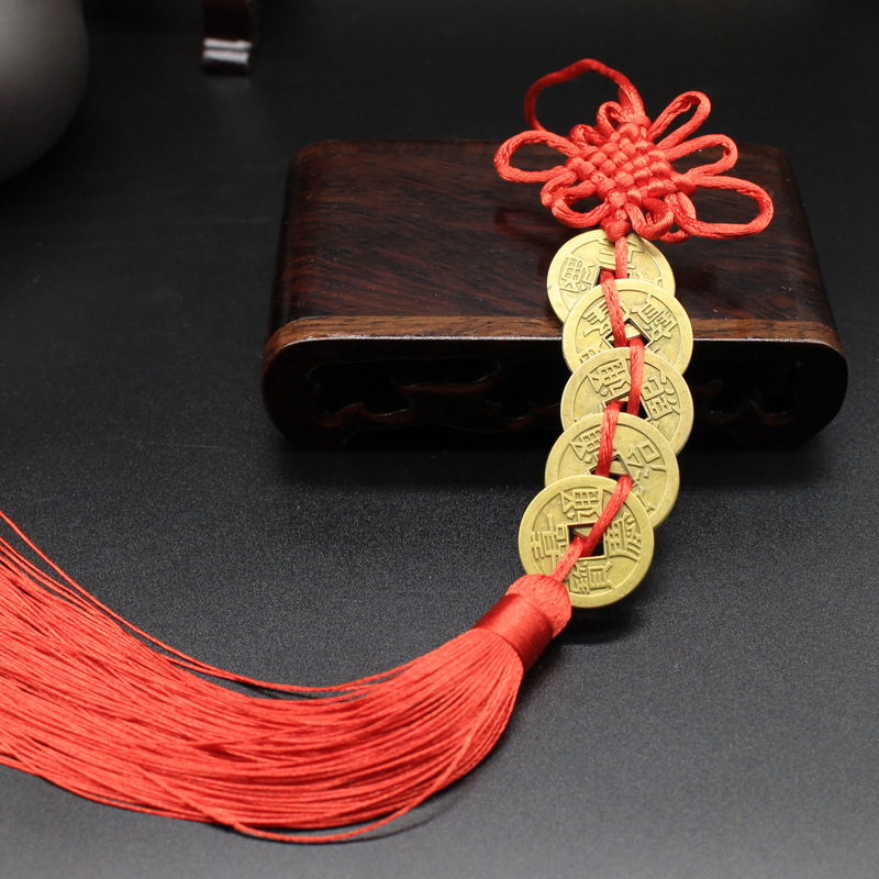 五帝钱合金汽车挂件饰品中国结仿铜中国结吊坠装饰品挂坠地摊网红
