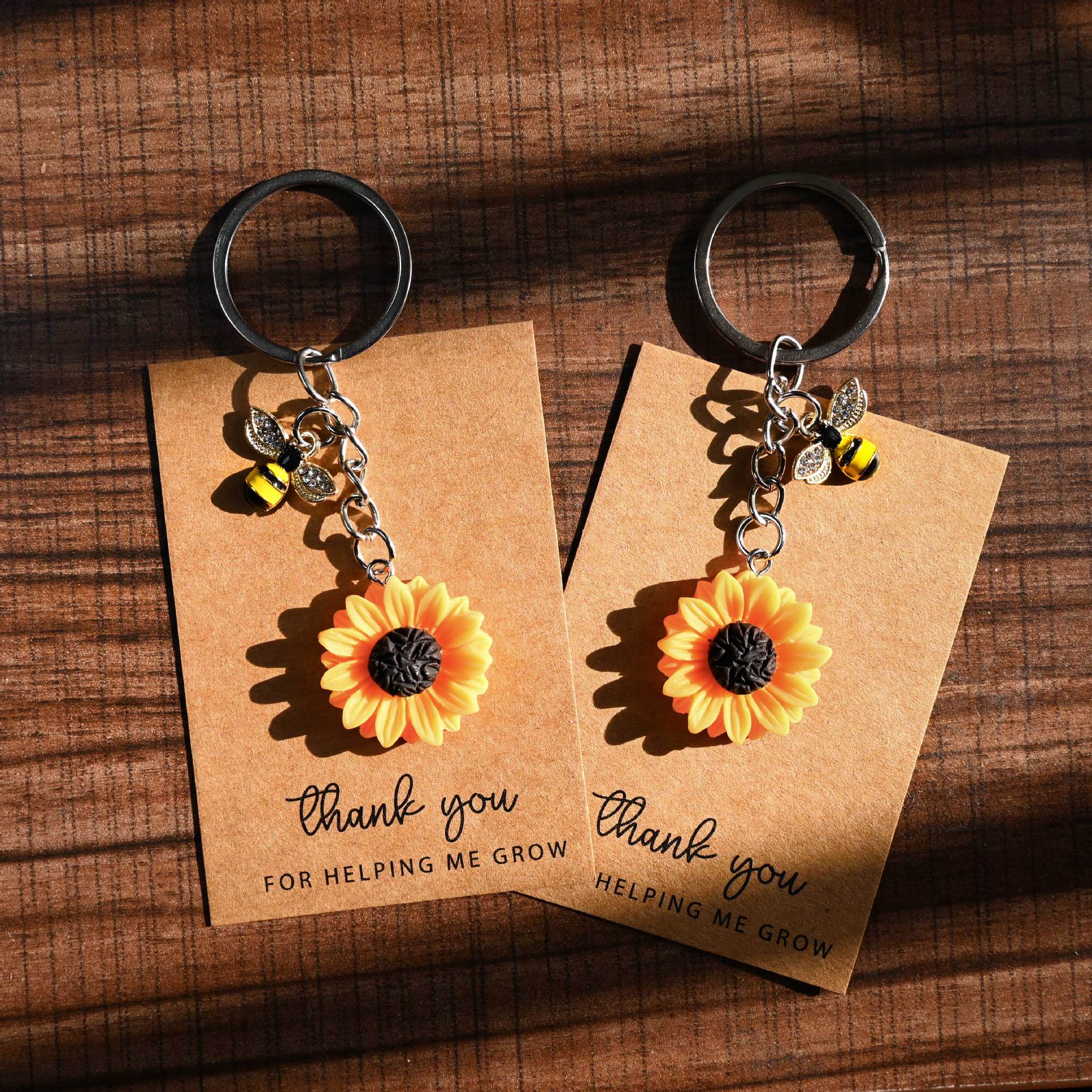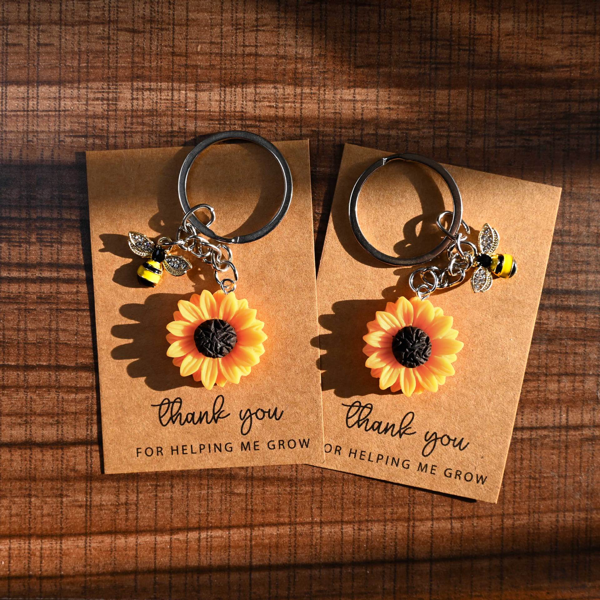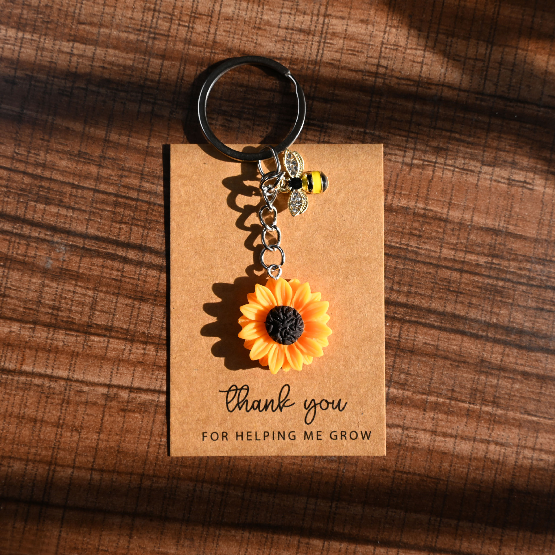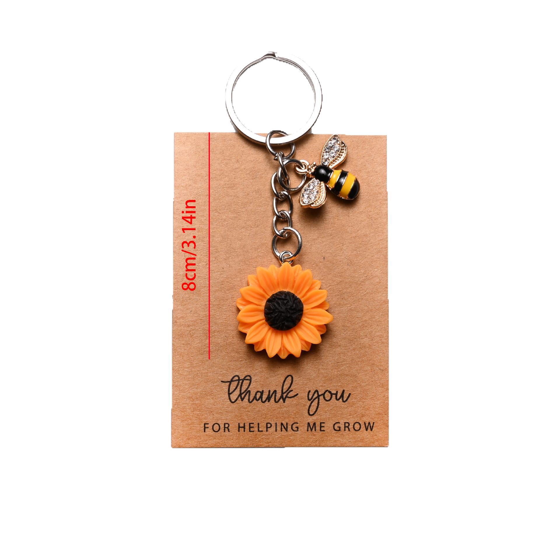 跨境新品【Thank you】英文感谢卡 创意蜜蜂雏菊向日葵钥匙扣挂件