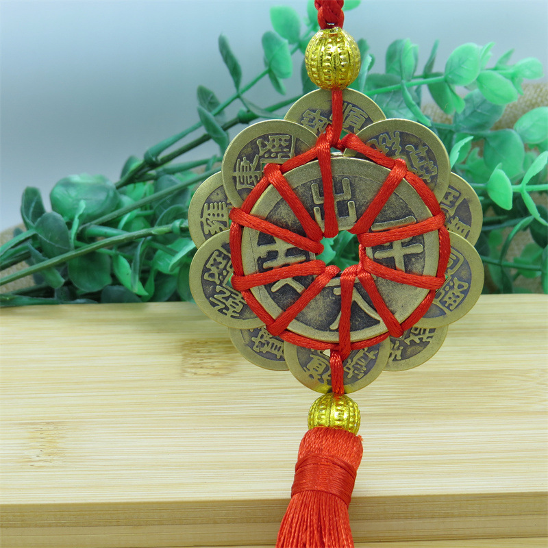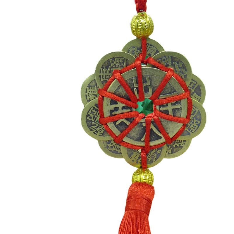 工厂批发真铜十帝钱梅花出入平安铜钱汽车挂件地摊铜饰车载挂饰