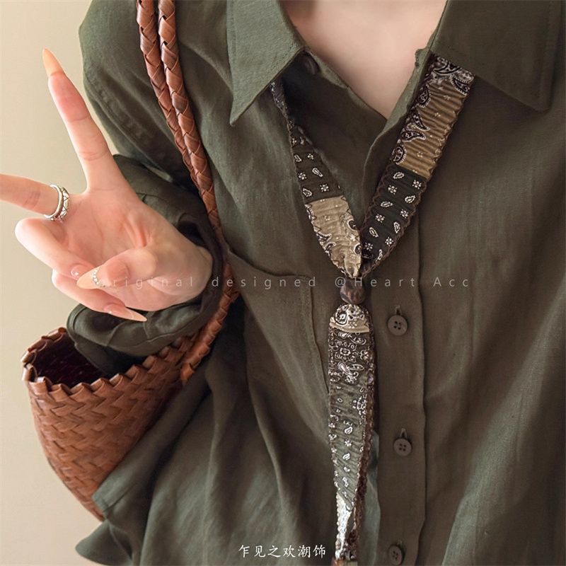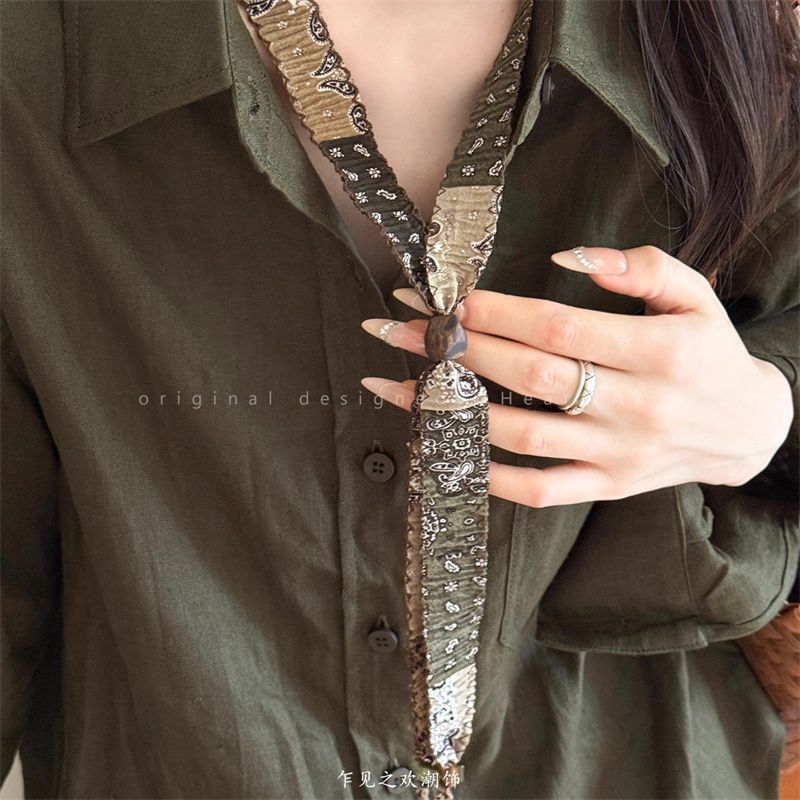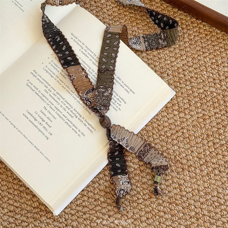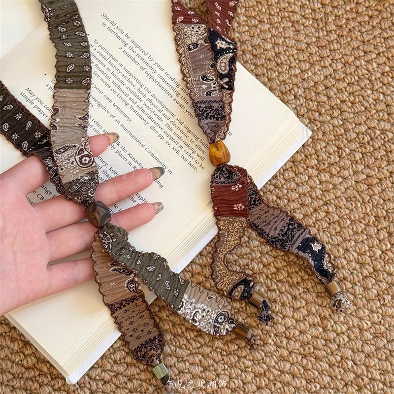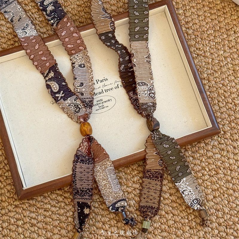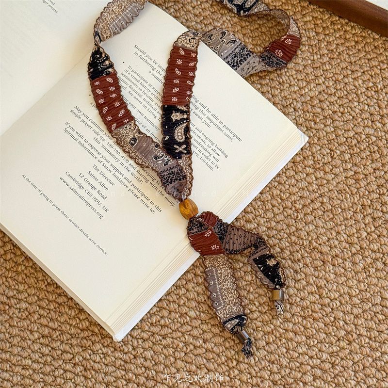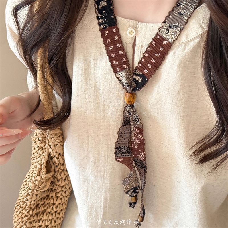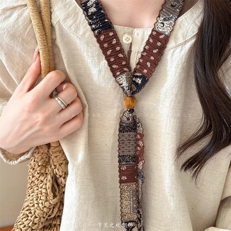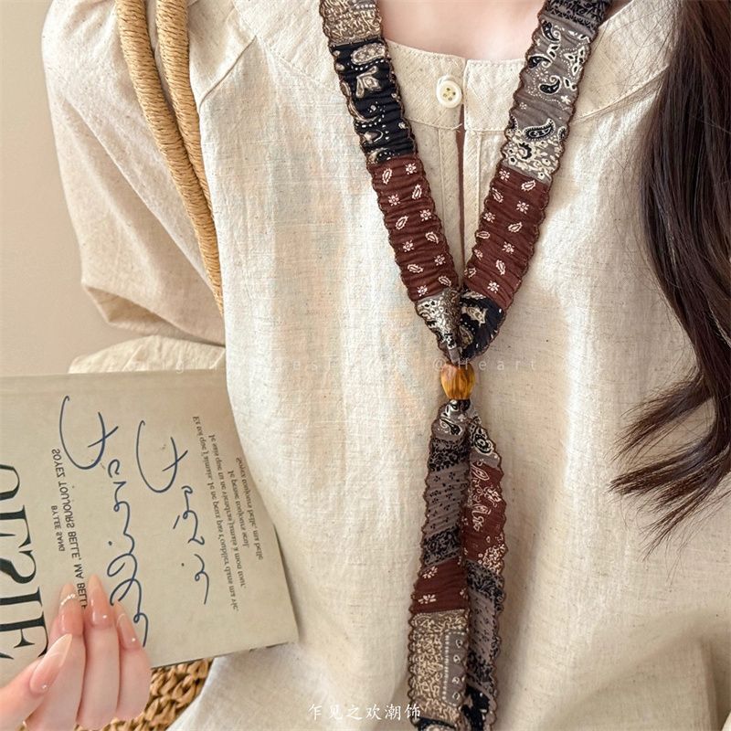 复古腰果花丝巾项链女早秋氛围感长款可抽拉毛衣链时尚美拉德配饰