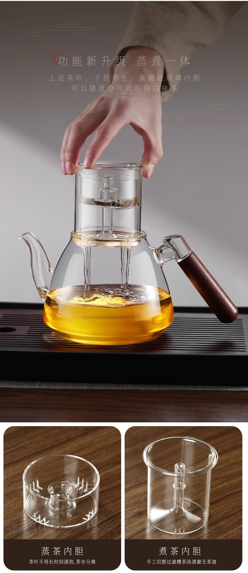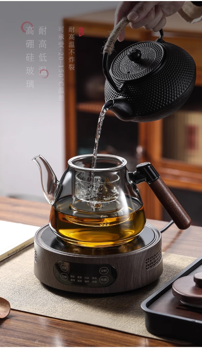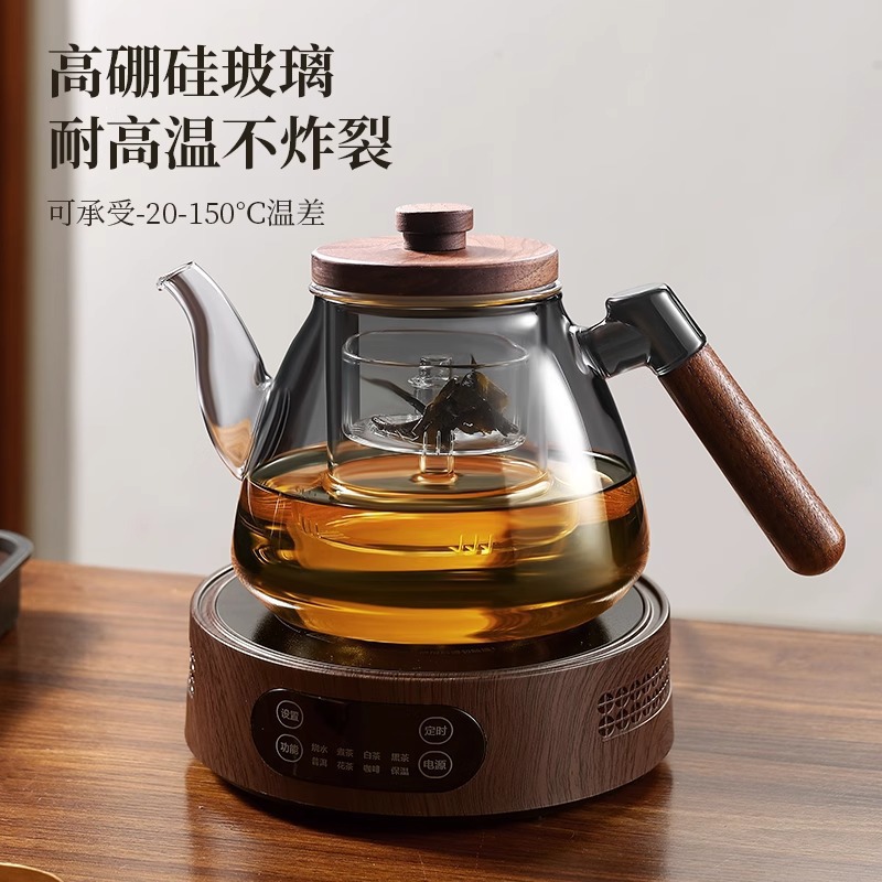 家用胡桃木蒸煮两用大容量花草茶壶高硼硅玻璃茶壶电陶炉煮茶器