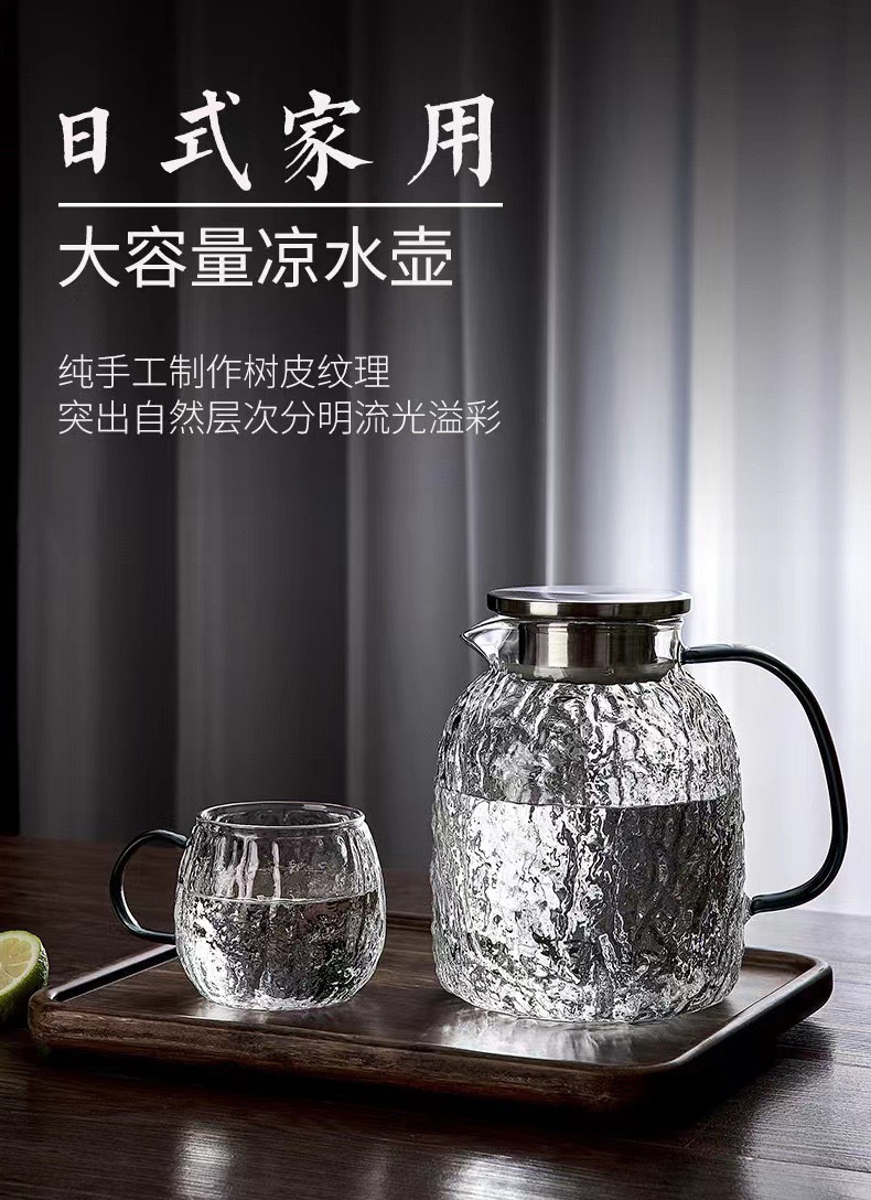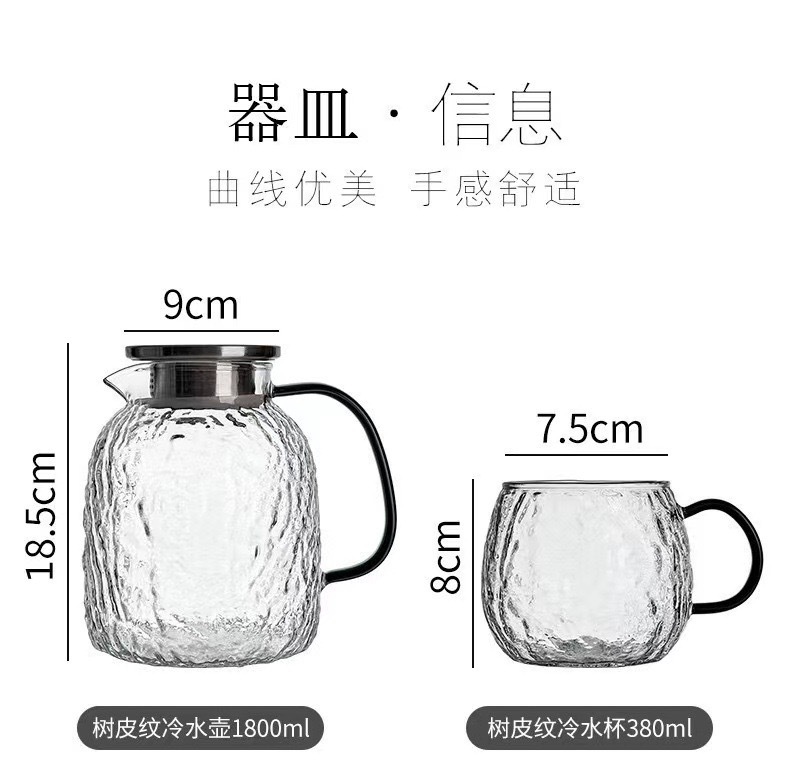 耐热玻璃冷水壶树纹家用凉水壶杯大容量客厅玻璃壶泡茶壶水杯套装