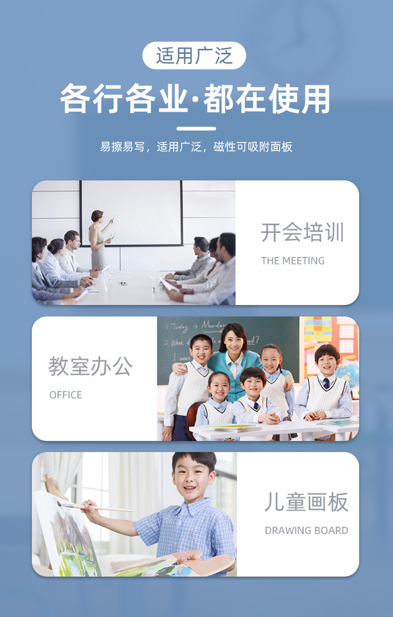 跨境挂式双面磁性加厚白板写字板商用办公书写培训儿童家用黑板墙