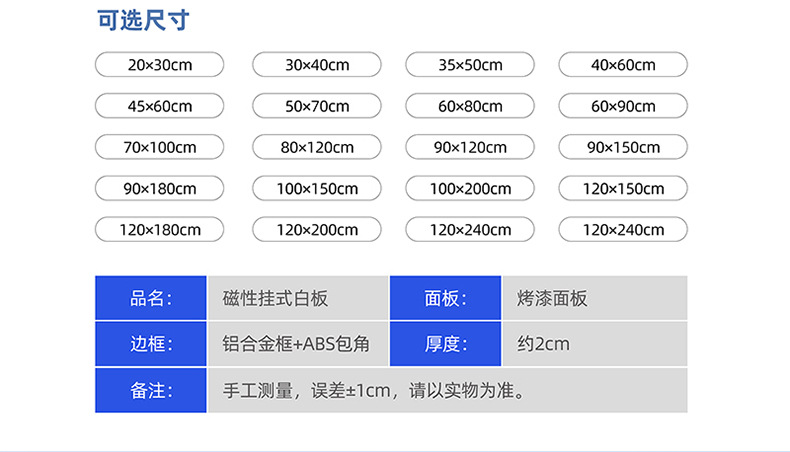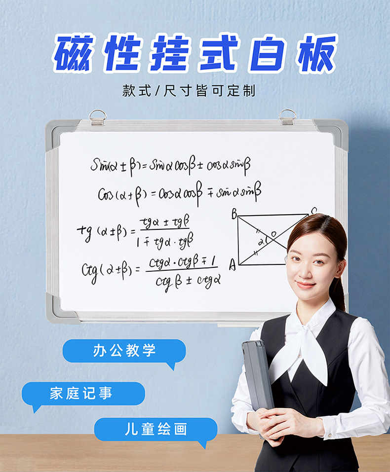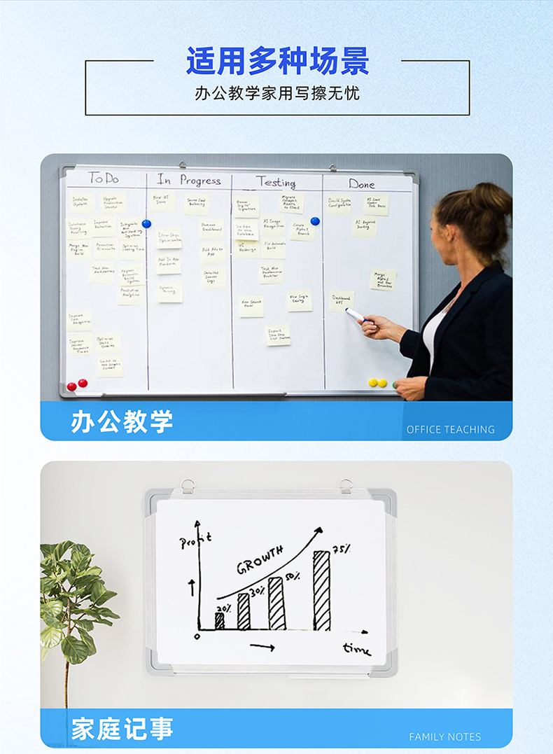 磁吸白板定制家用教学挂式磁性白板写字板办公可擦儿童绘画小白板