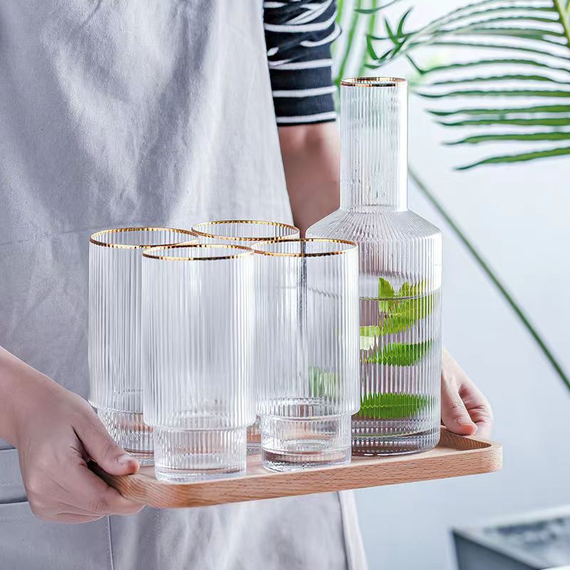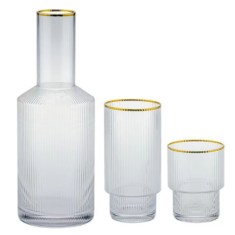 日式简约竖纹玻璃冷水壶家用果汁柠檬水水杯高颜值凉水壶果汁壶