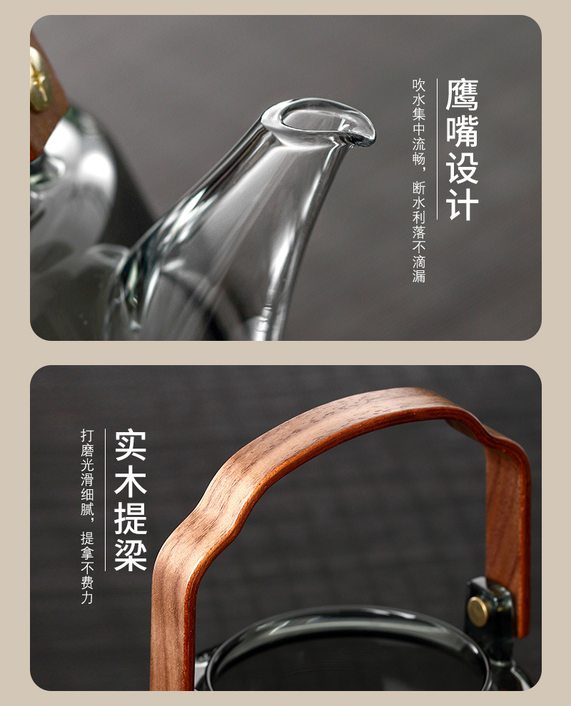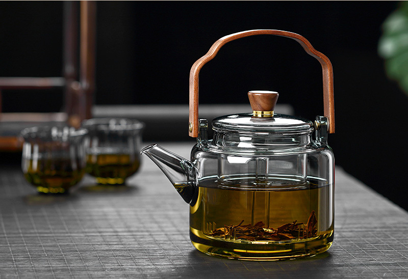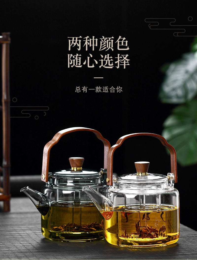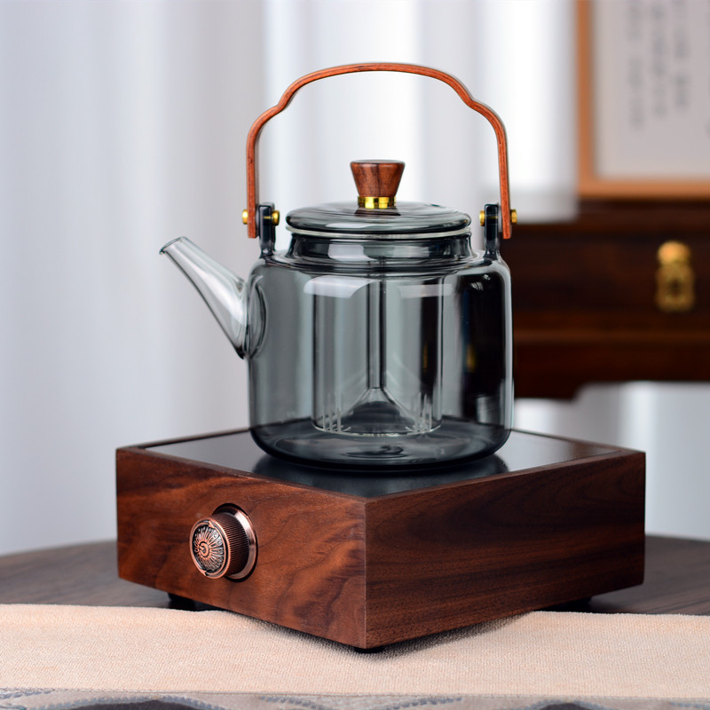 围炉煮茶提梁壶透黑玻璃烧水泡茶壶电陶炉煮茶器炭火炉蒸煮一体壶
