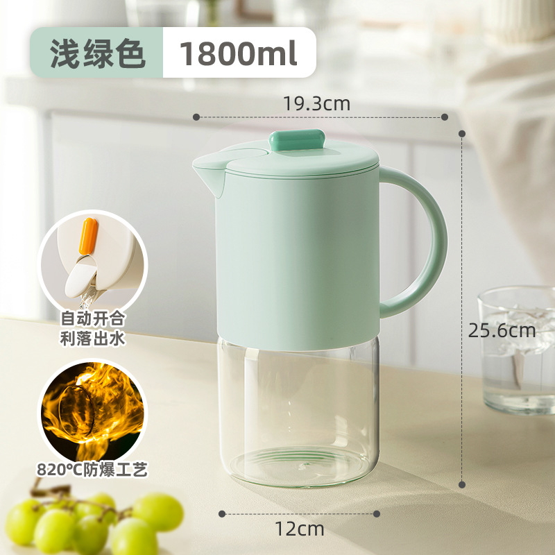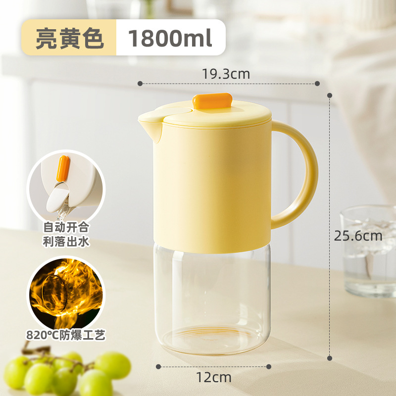 品沐设计自动开合冷水壶家用大容量防尘耐高温玻璃泡茶开水凉水杯