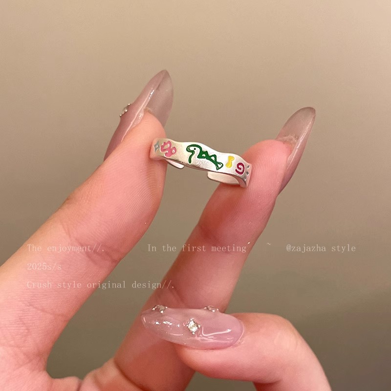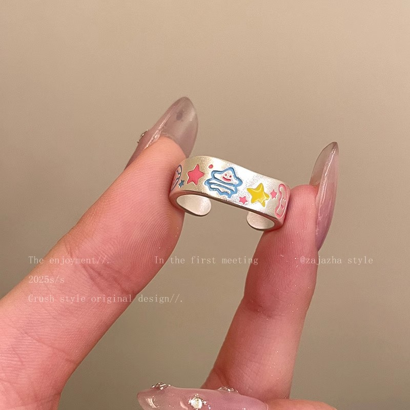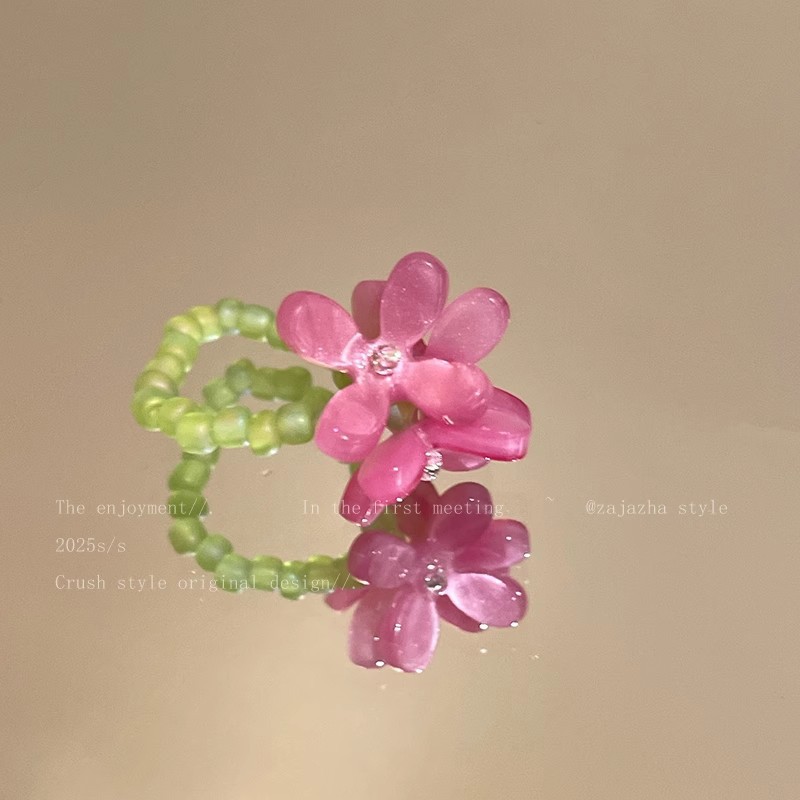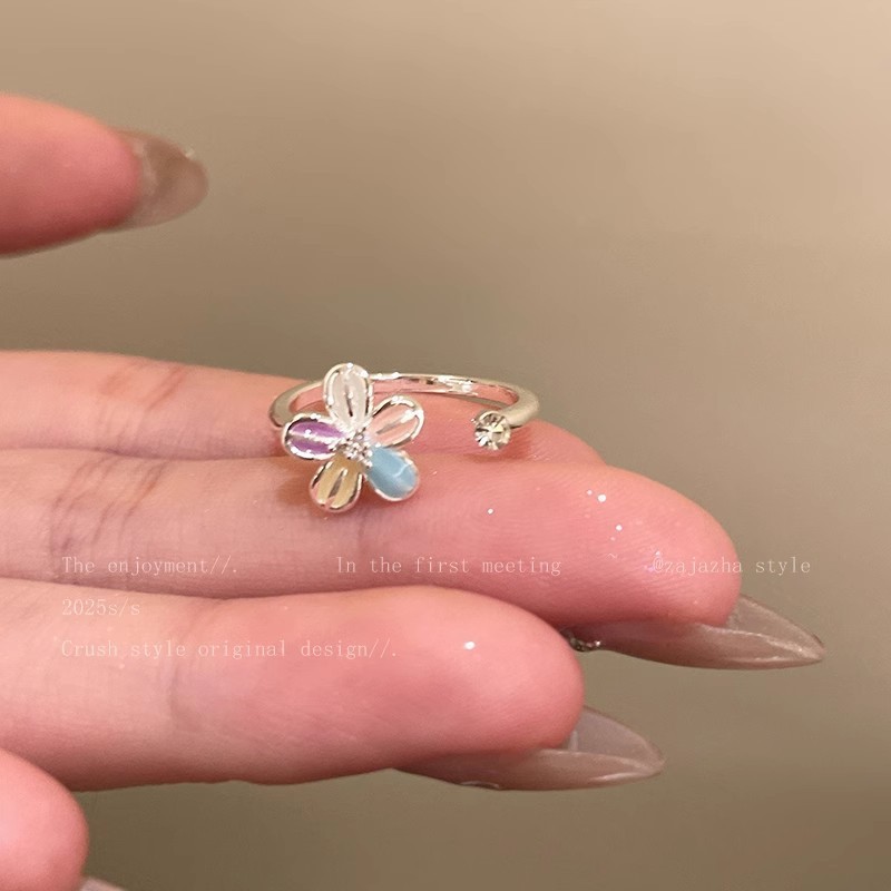 多巴胺彩色花朵戒指女新款可爱小清新食指戒轻奢精致小众高级指环