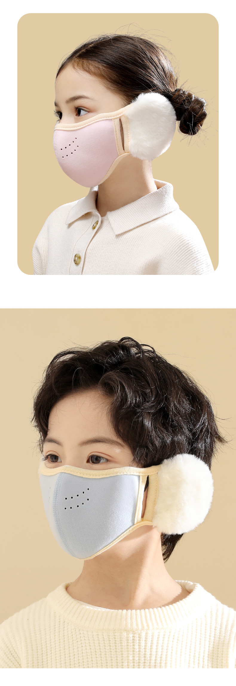 保暖儿童护耳口罩纯色透气立体男女孩学生护耳套加厚防寒毛绒耳罩