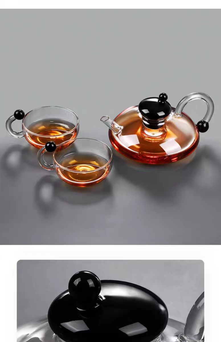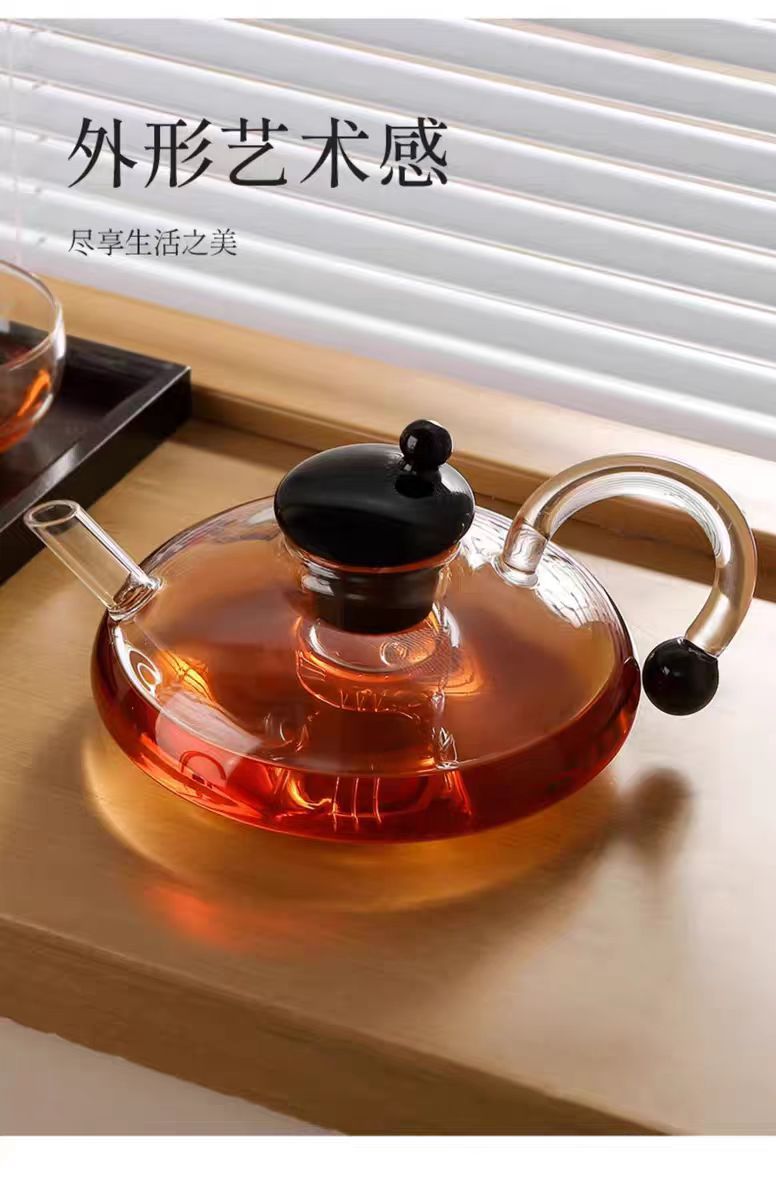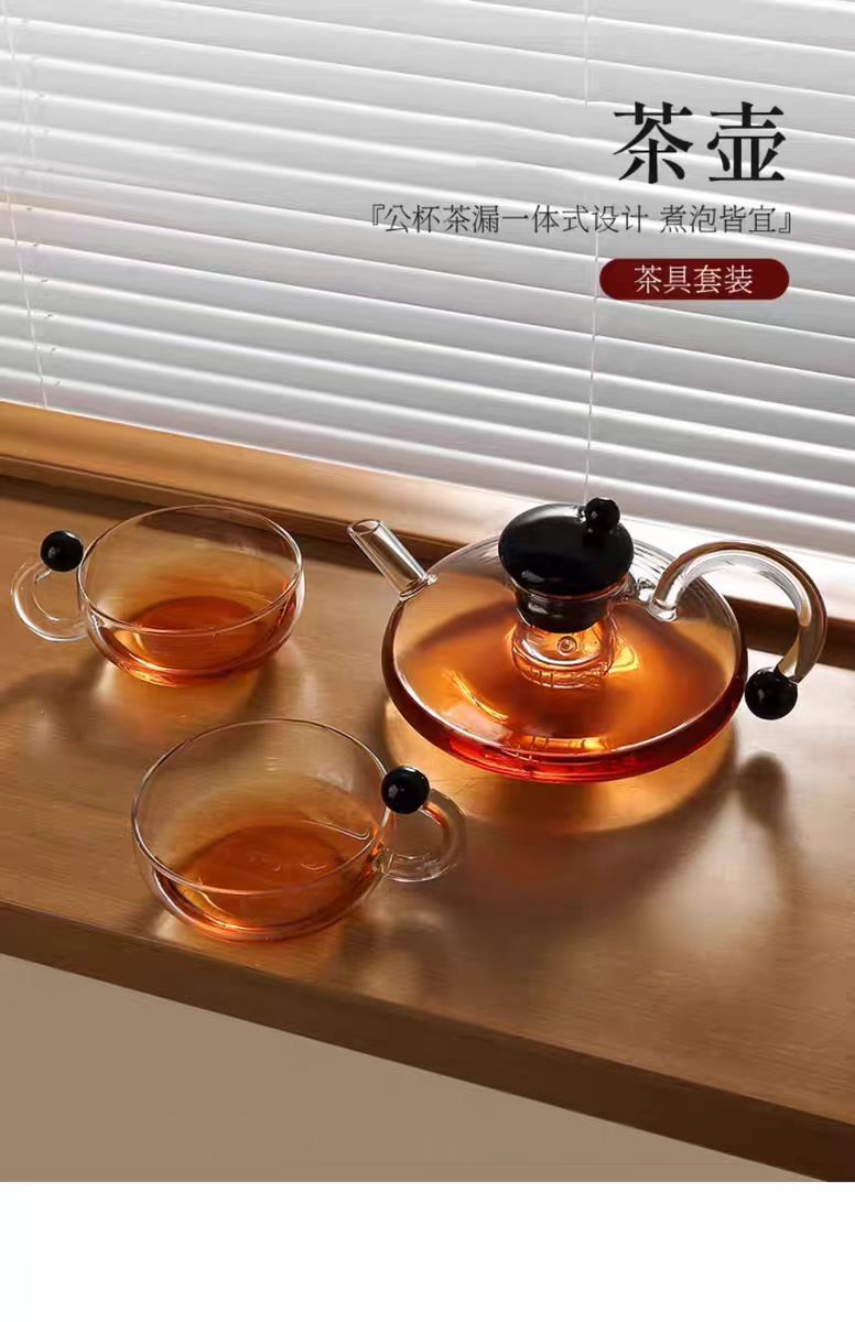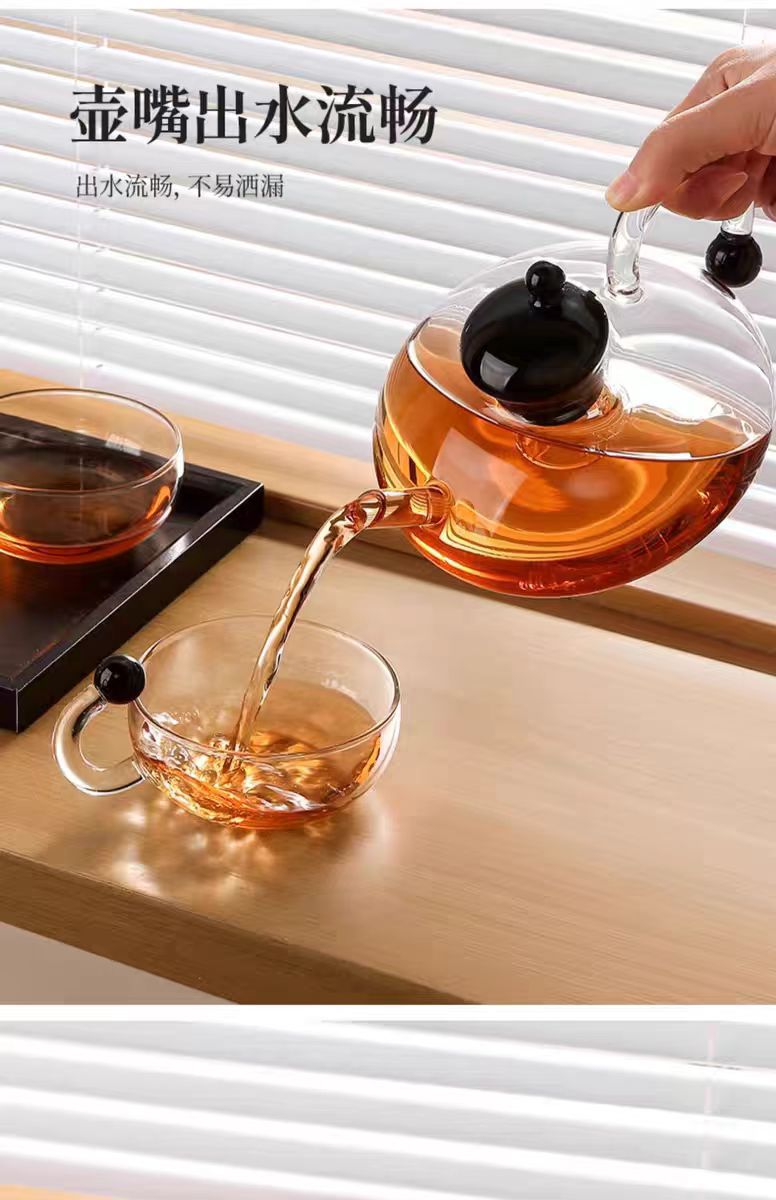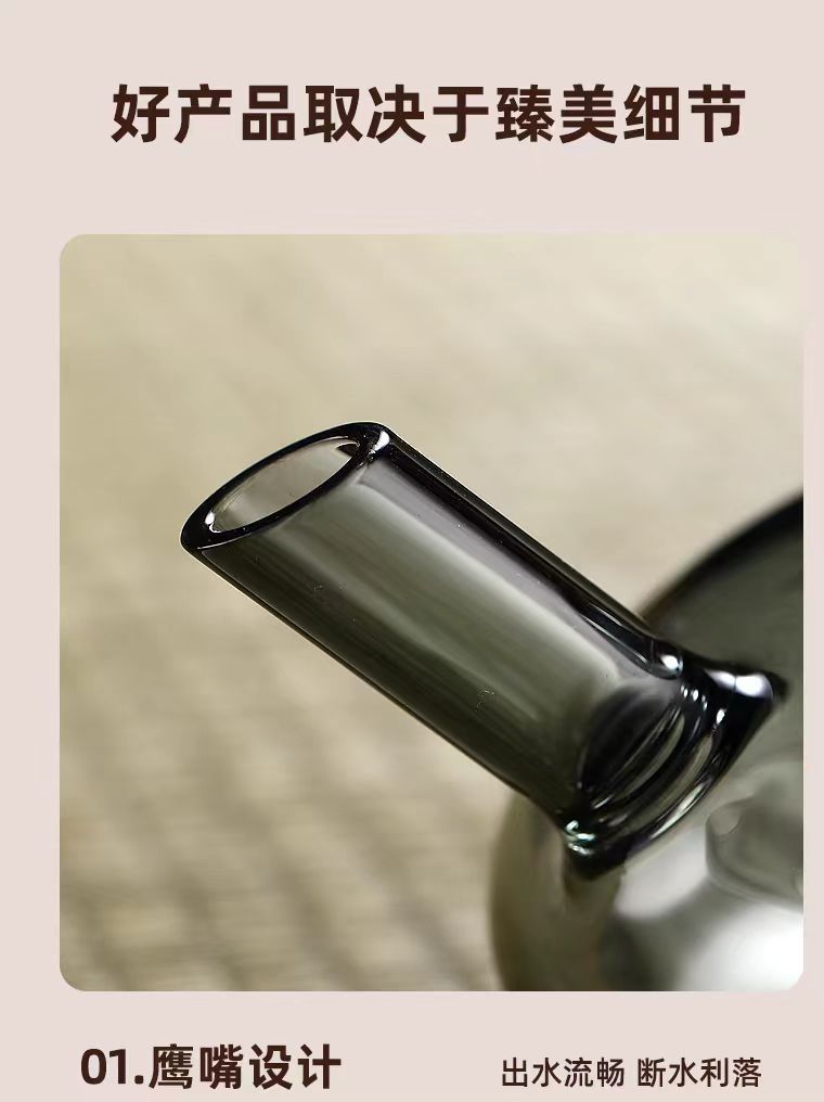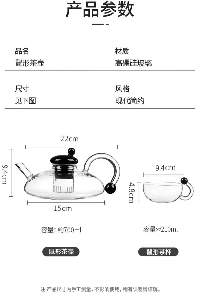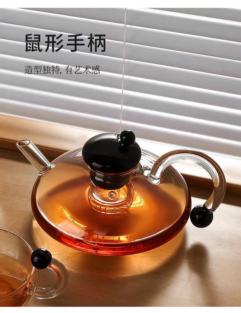 轻奢玻璃财鼠壶套装茶壶咖啡壶办公室客厅网红手工煮茶鼠尾壶复古