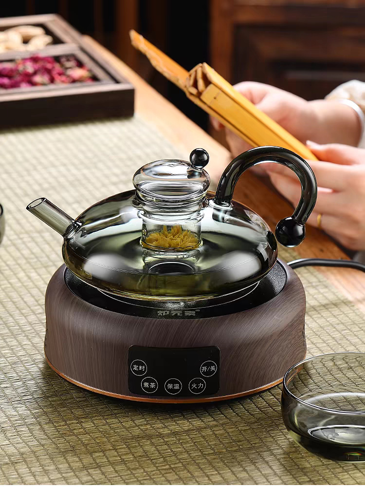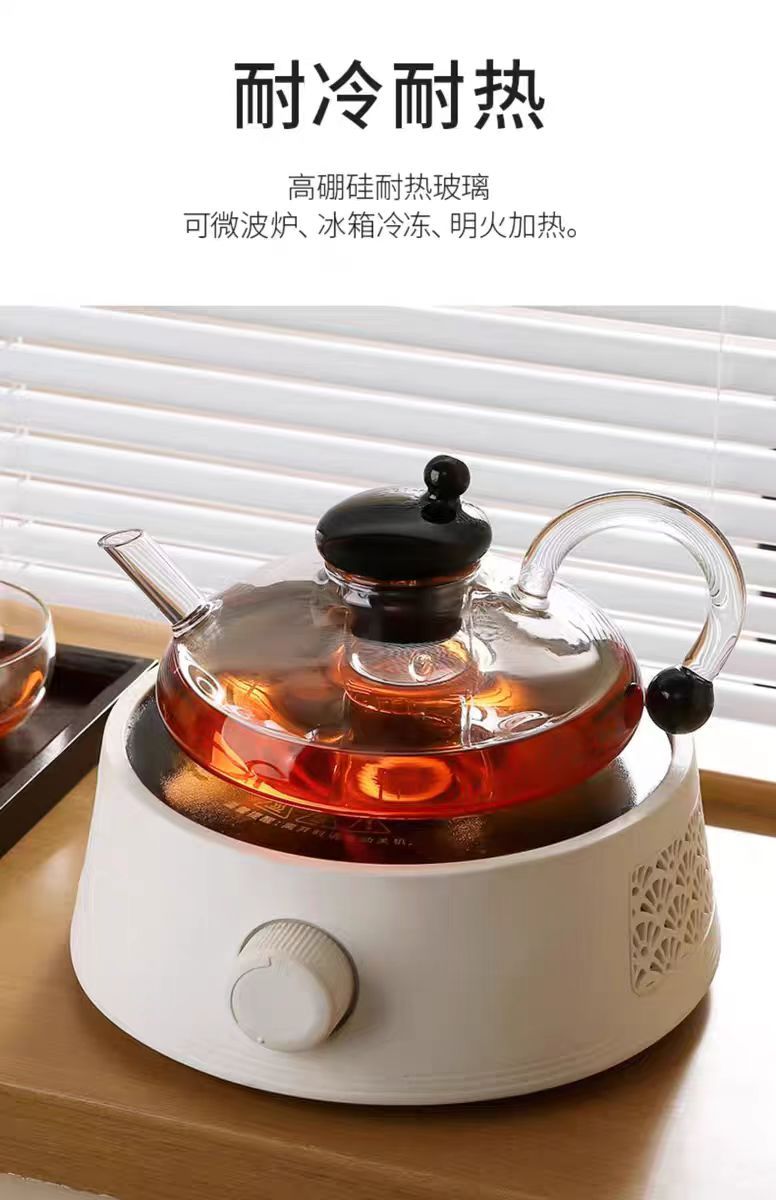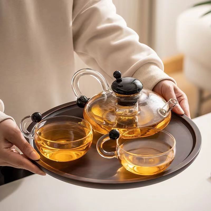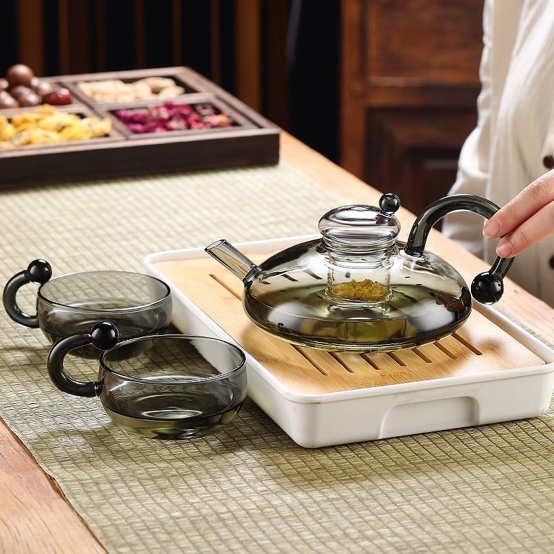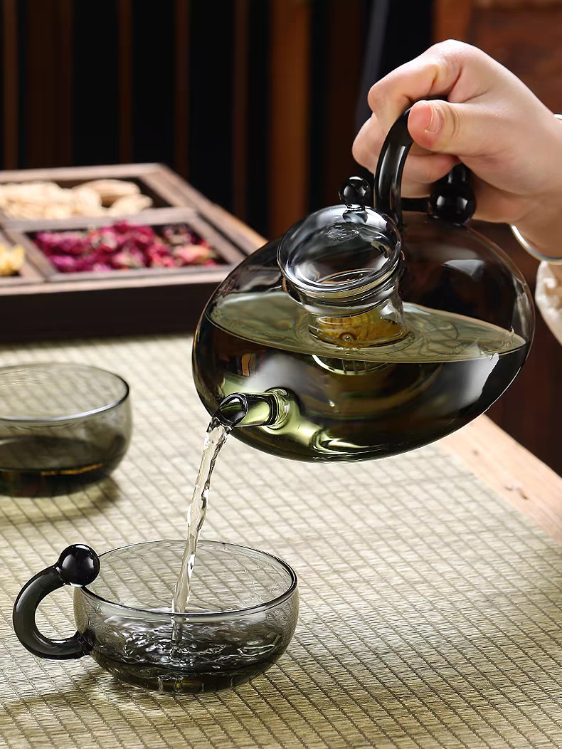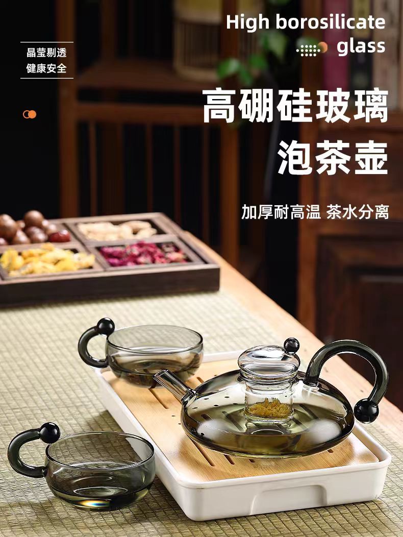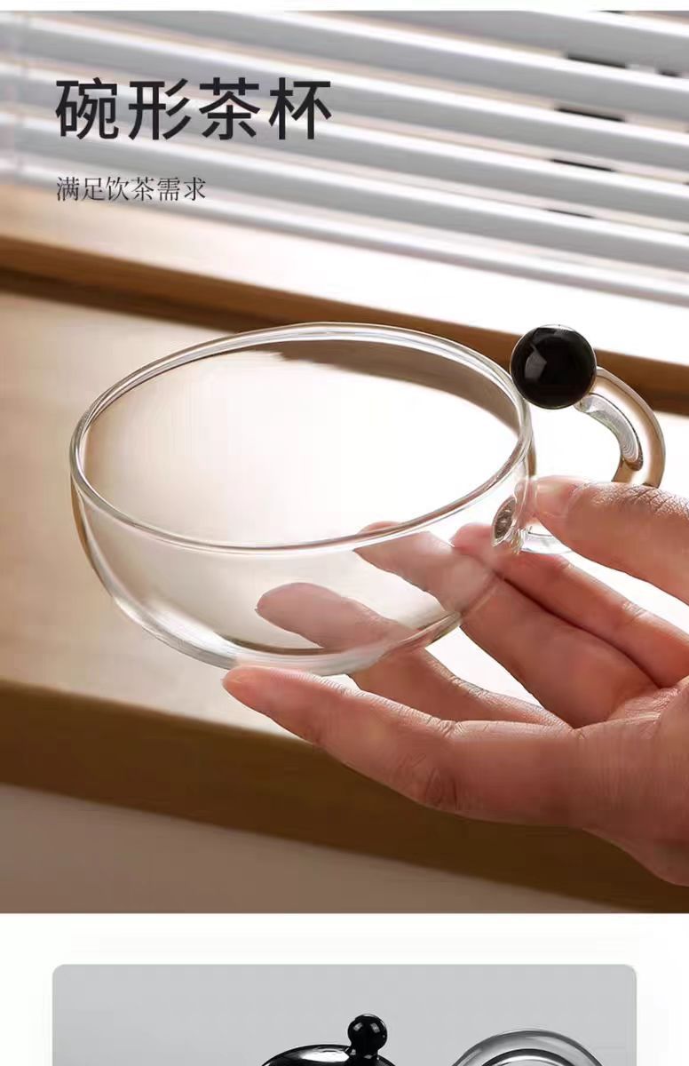 轻奢玻璃财鼠壶套装茶壶咖啡壶办公室客厅网红手工煮茶鼠尾壶复古