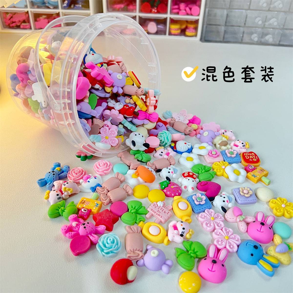 奶油胶diy发夹材料包可爱树脂配件女孩手工制作发卡网红收纳桶装