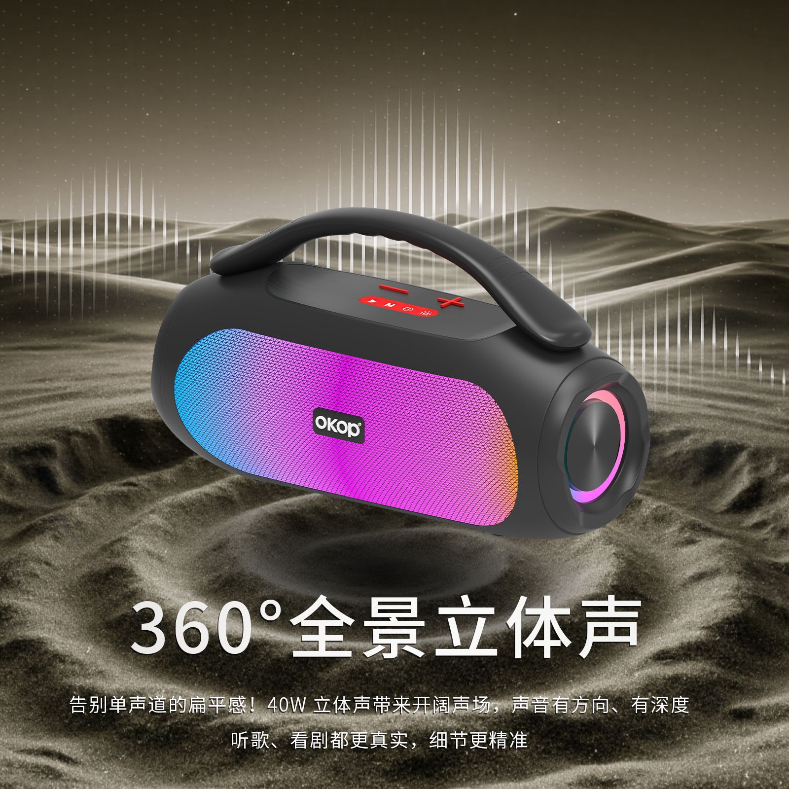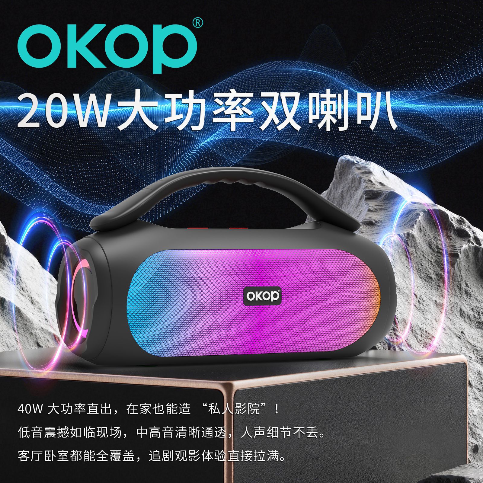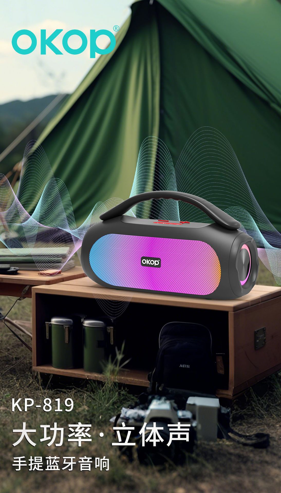 819蓝牙音箱大功率高音质长续航居家音响炫彩氛围灯插卡跨境热销