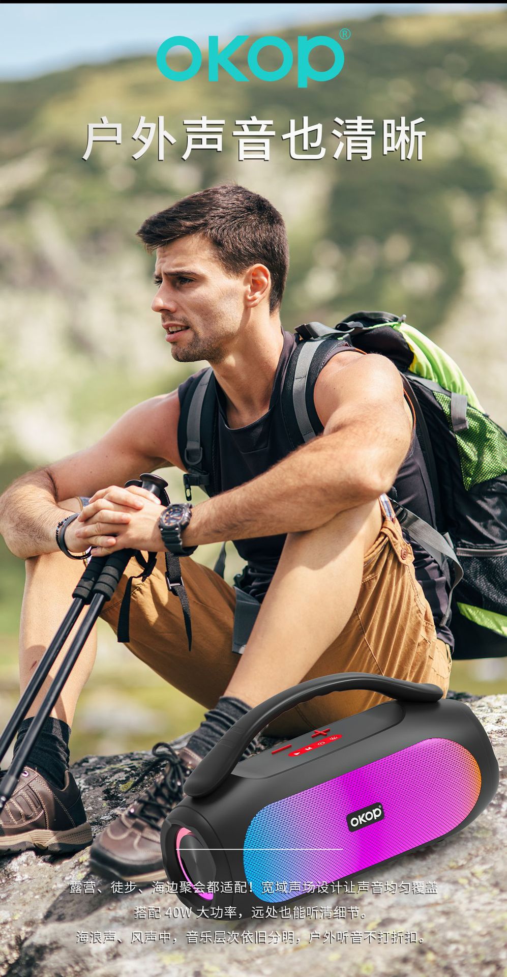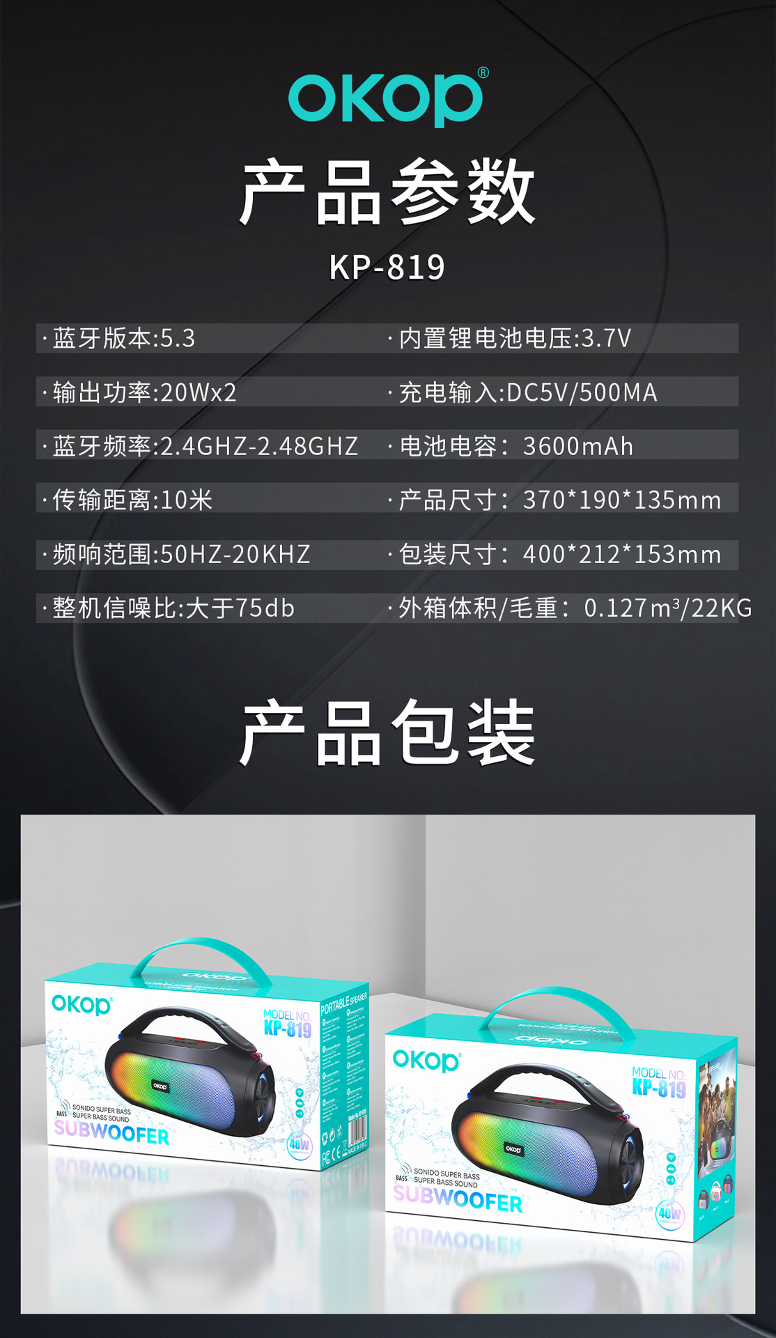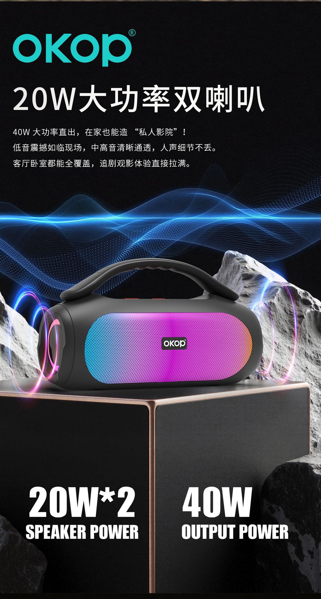 819蓝牙音箱大功率高音质长续航居家音响炫彩氛围灯插卡跨境热销