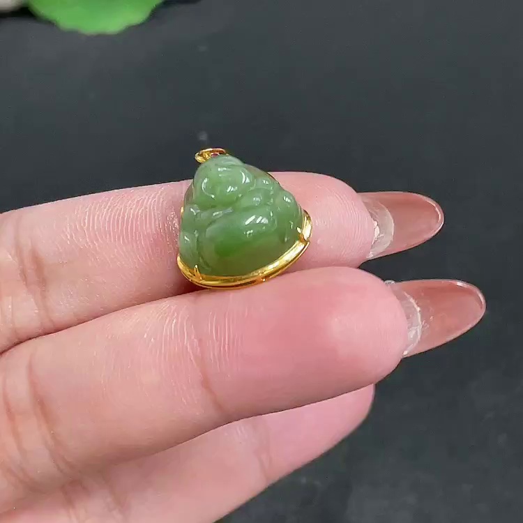 和田玉18K金镶嵌挂件 佛公