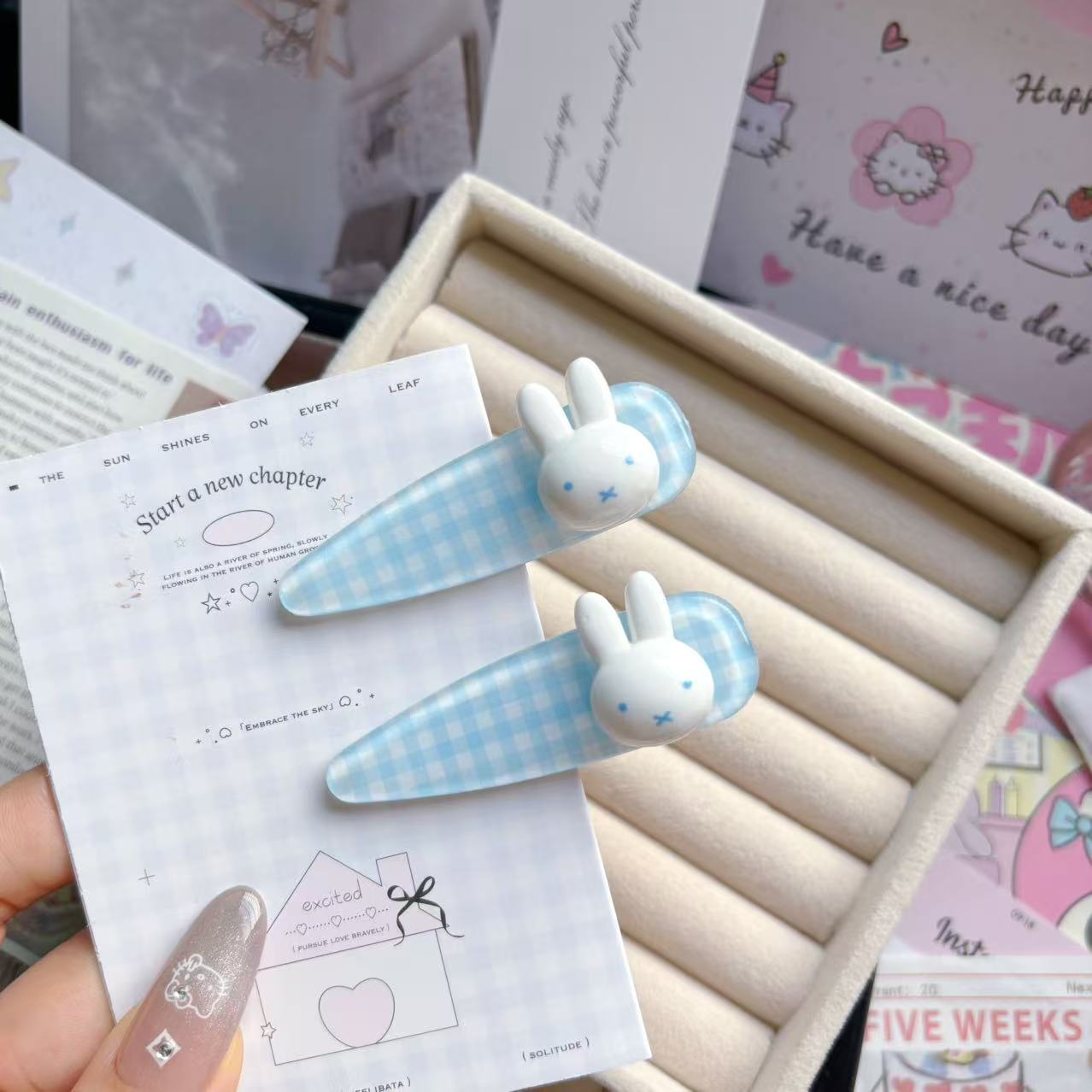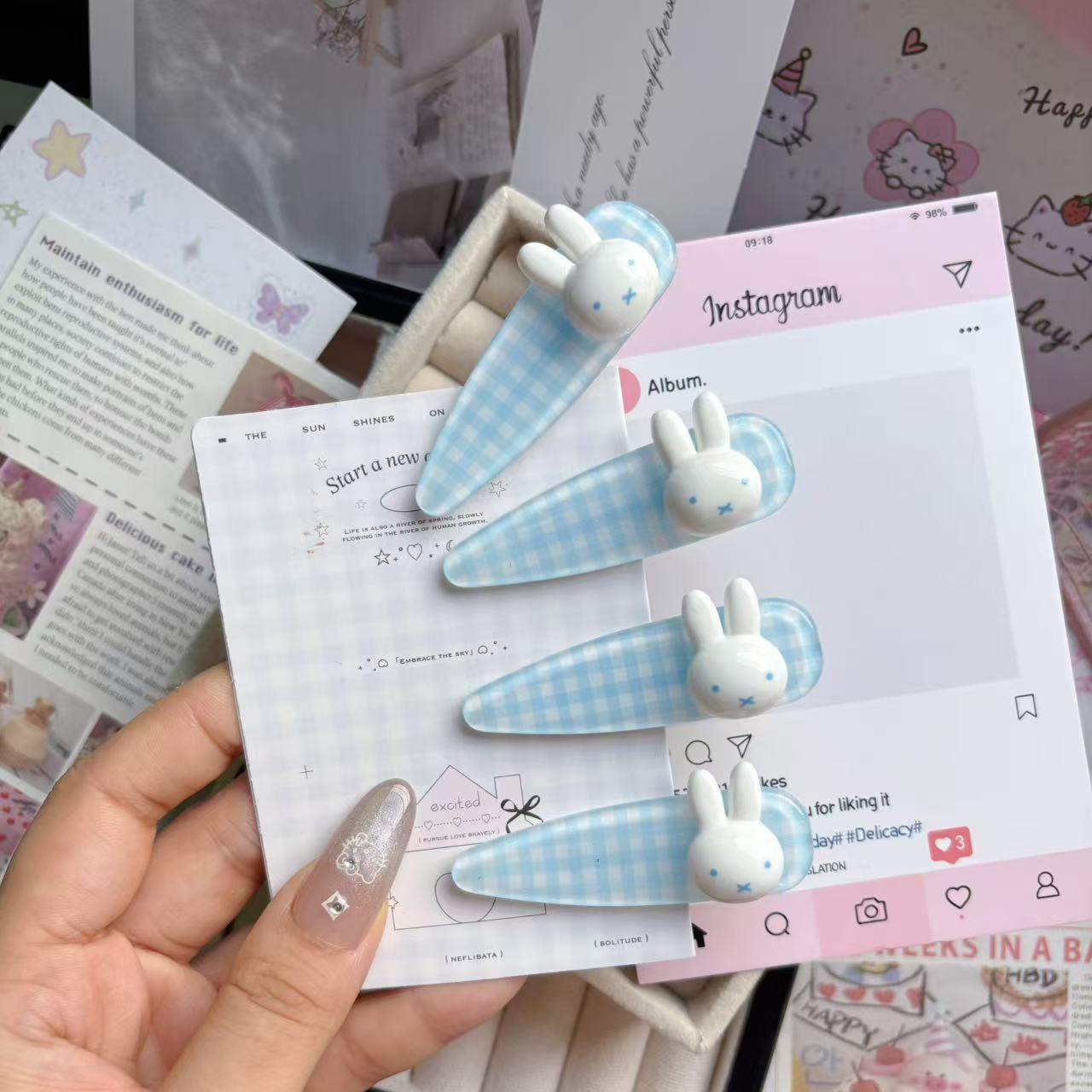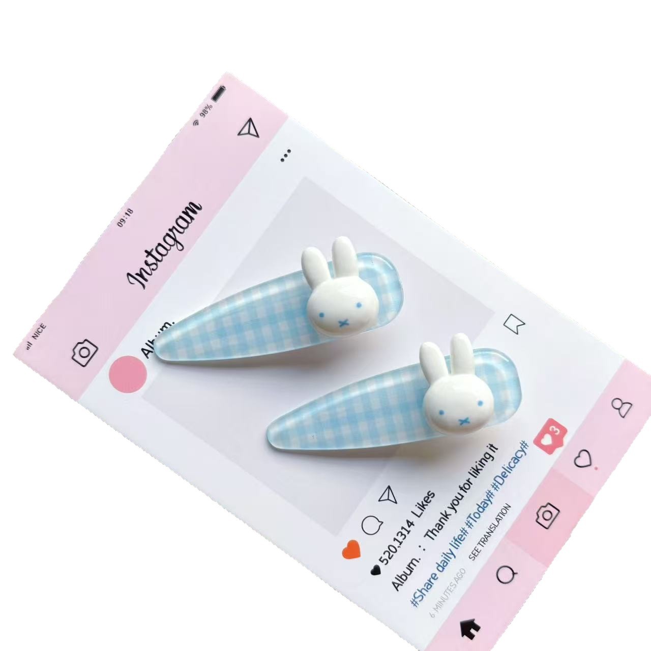 可爱卡通蓝格子米菲兔发夹甜美少女夹甜妹发夹软萌百精致刘海百搭