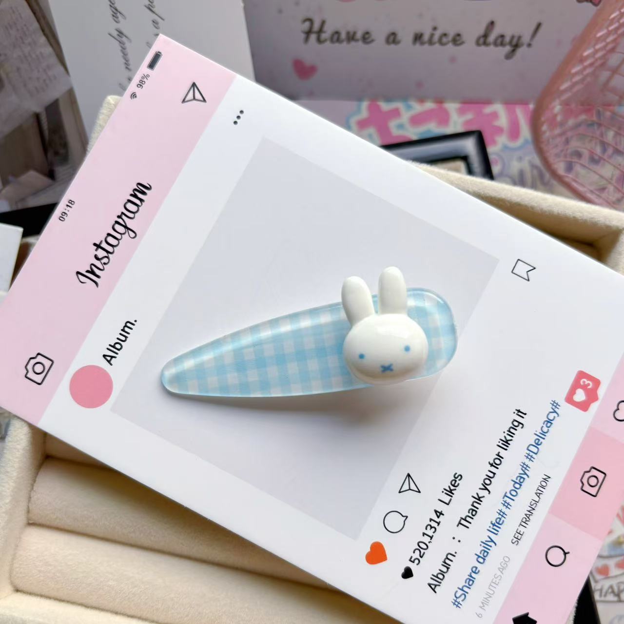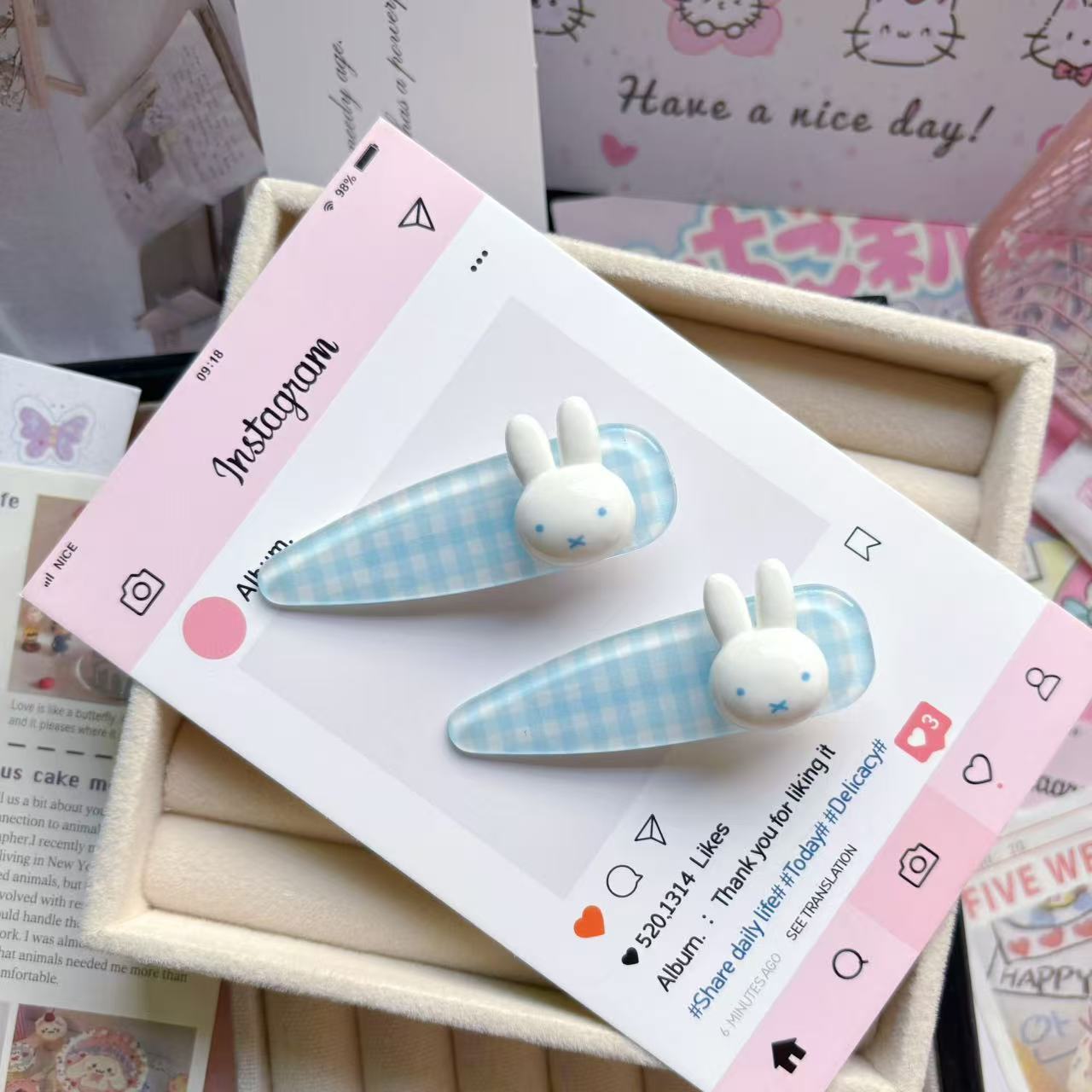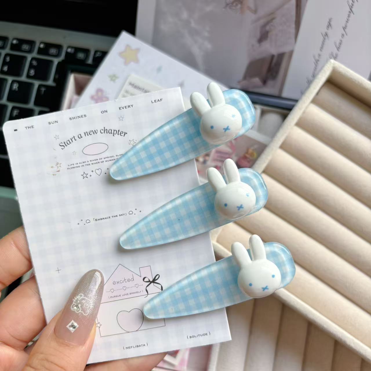 可爱卡通蓝格子米菲兔发夹甜美少女夹甜妹发夹软萌百精致刘海百搭