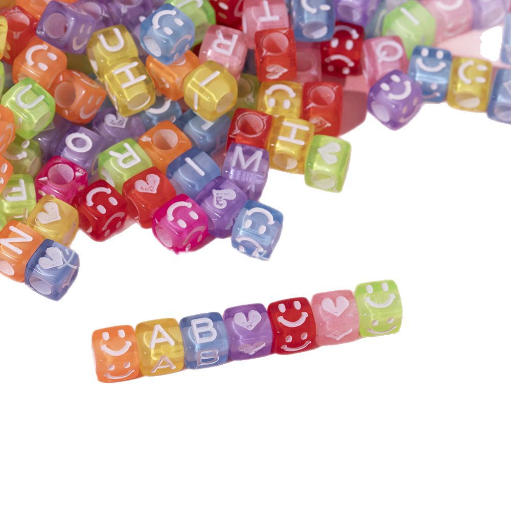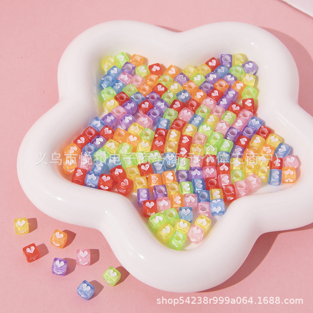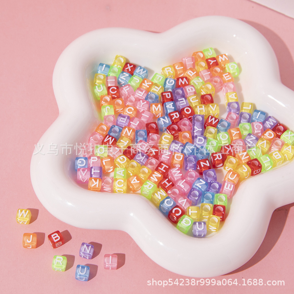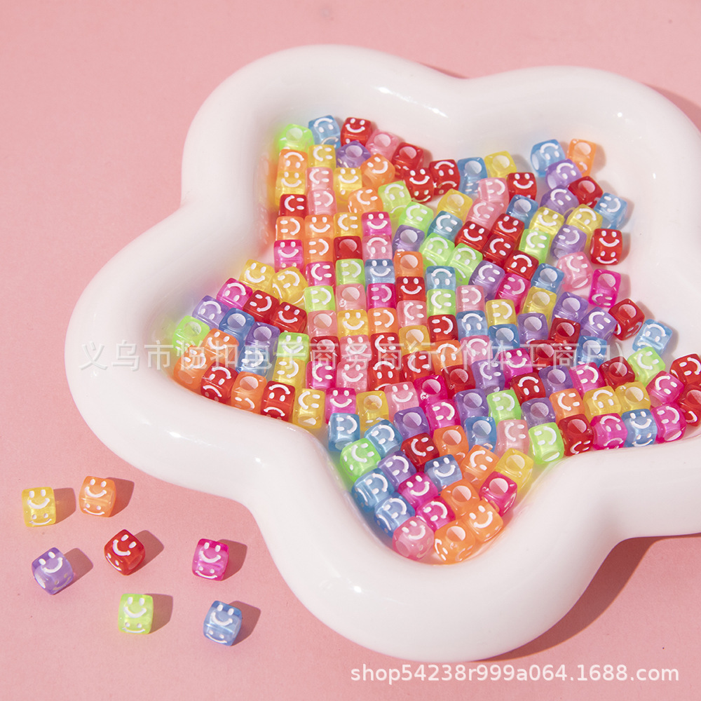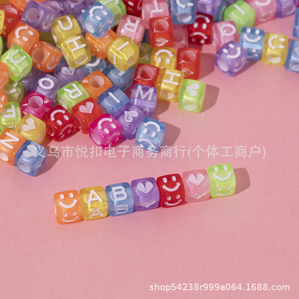 马卡龙色6*6透明方块字母爱心笑脸散珠DIY手工串珠散珠手机链珠子