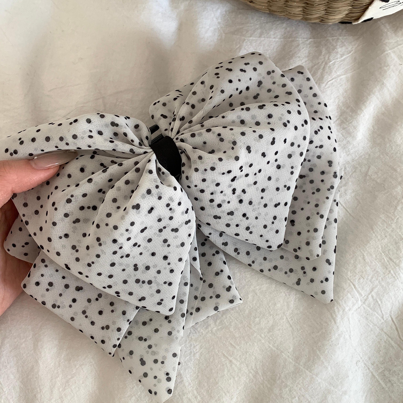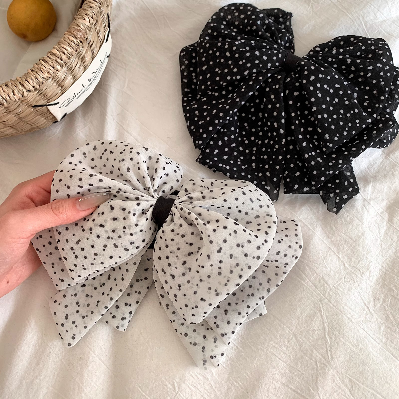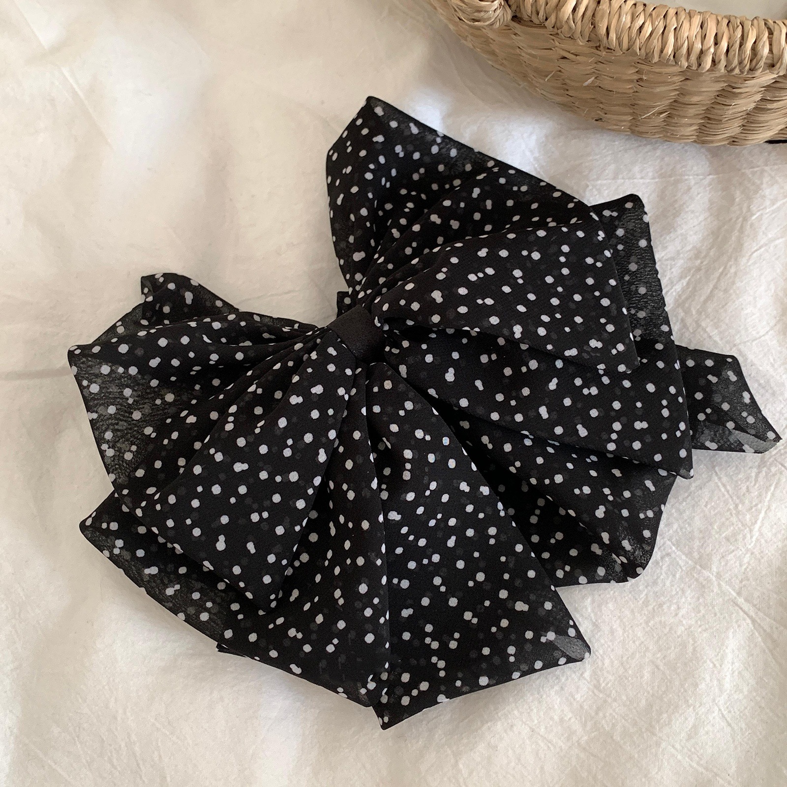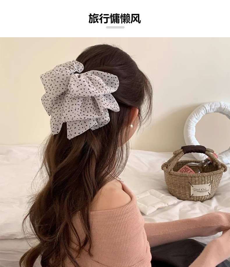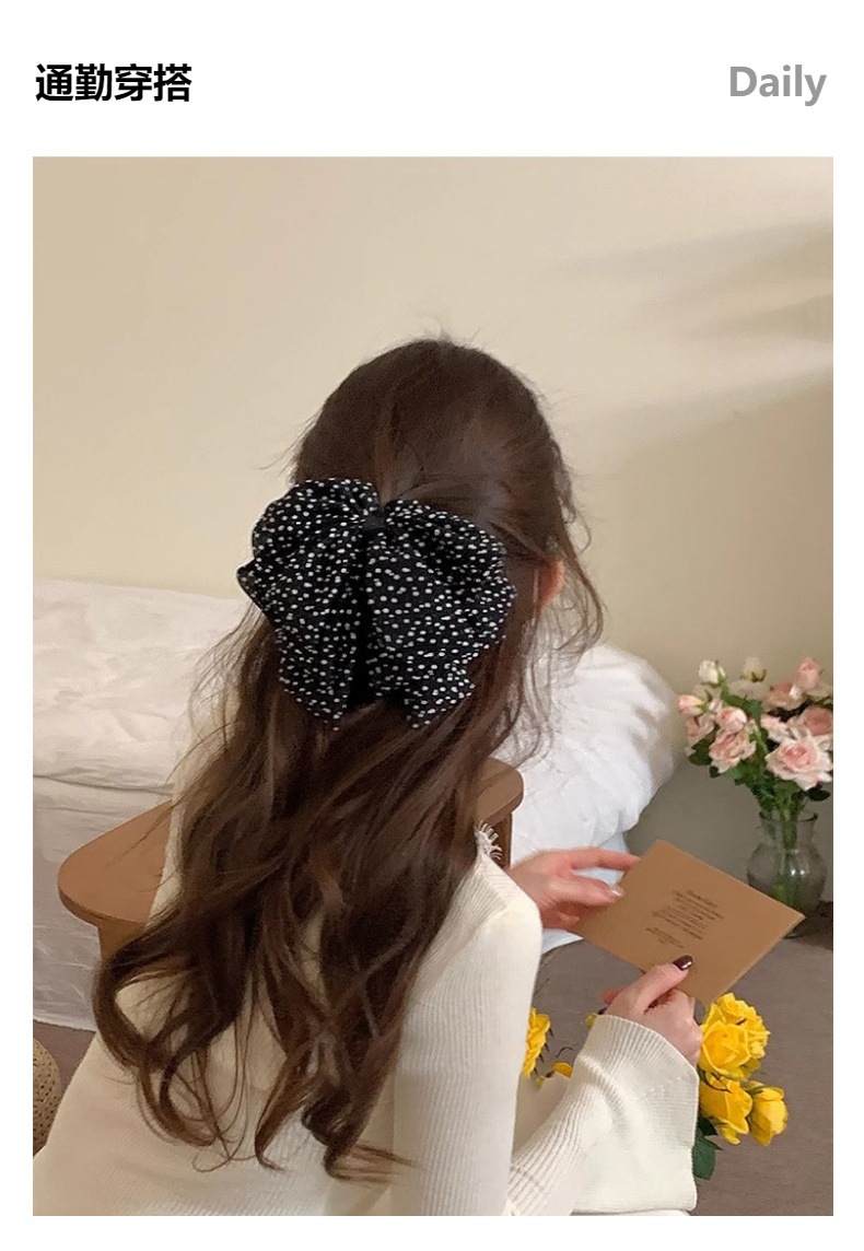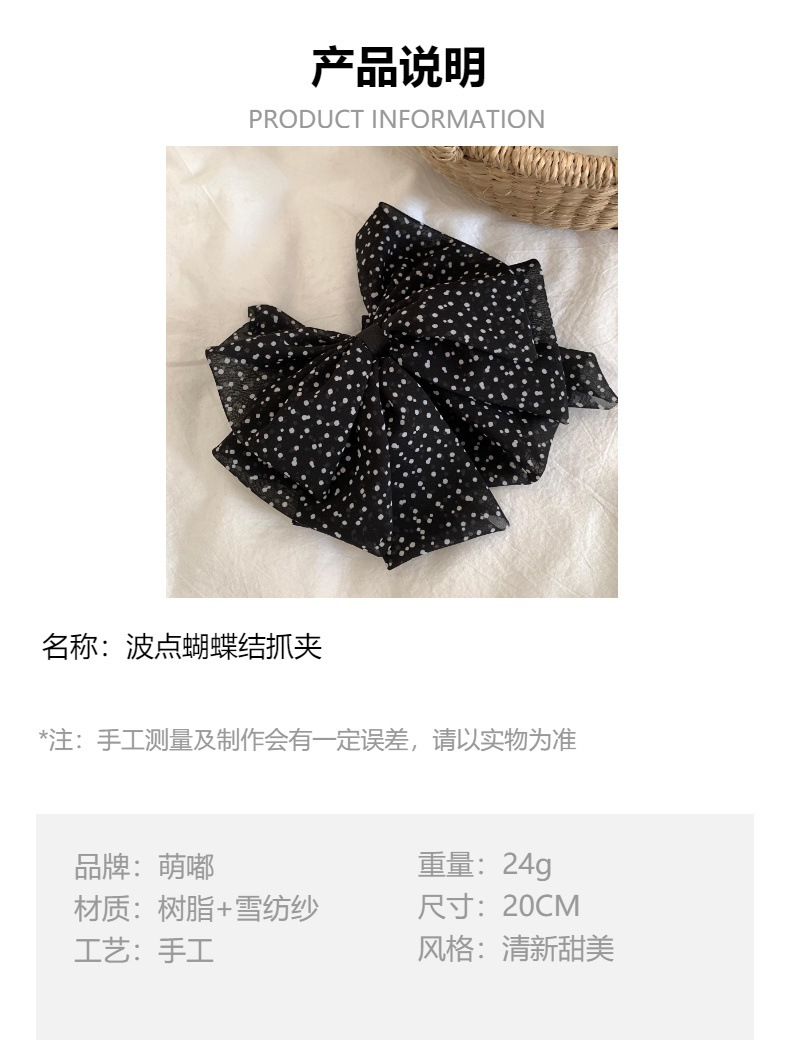 法式复古网纱波点蝴蝶结抓夹气质时尚雪纺半抓秋冬发饰女发夹夹子