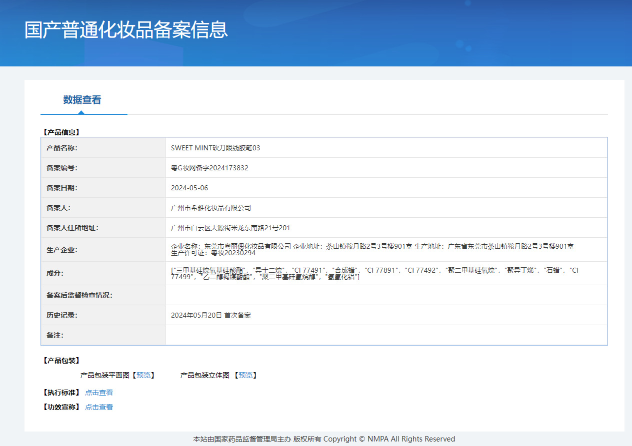 SWEET MINT砍刀眼线胶笔持久防水防汗不易晕染勾勒下至阴影卧蚕笔