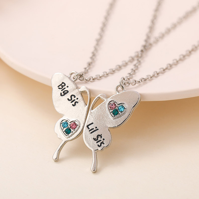 欧美夸张闺蜜字母好朋友爱心蝴蝶项链个性设计感吊坠批发便宜饰品