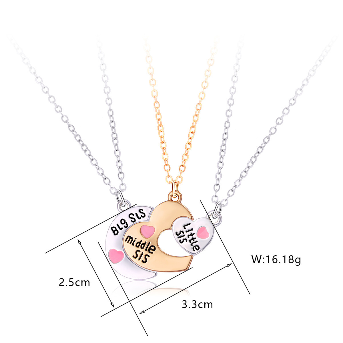 爱心拼接大小姐妹三件套项链简约气质百搭好朋友闺蜜吊坠礼物批发