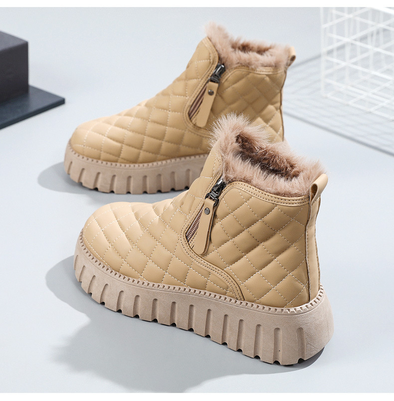 新款雪地靴时尚百搭厚底中帮小短靴女靴子女冬季加绒抗寒保暖女鞋