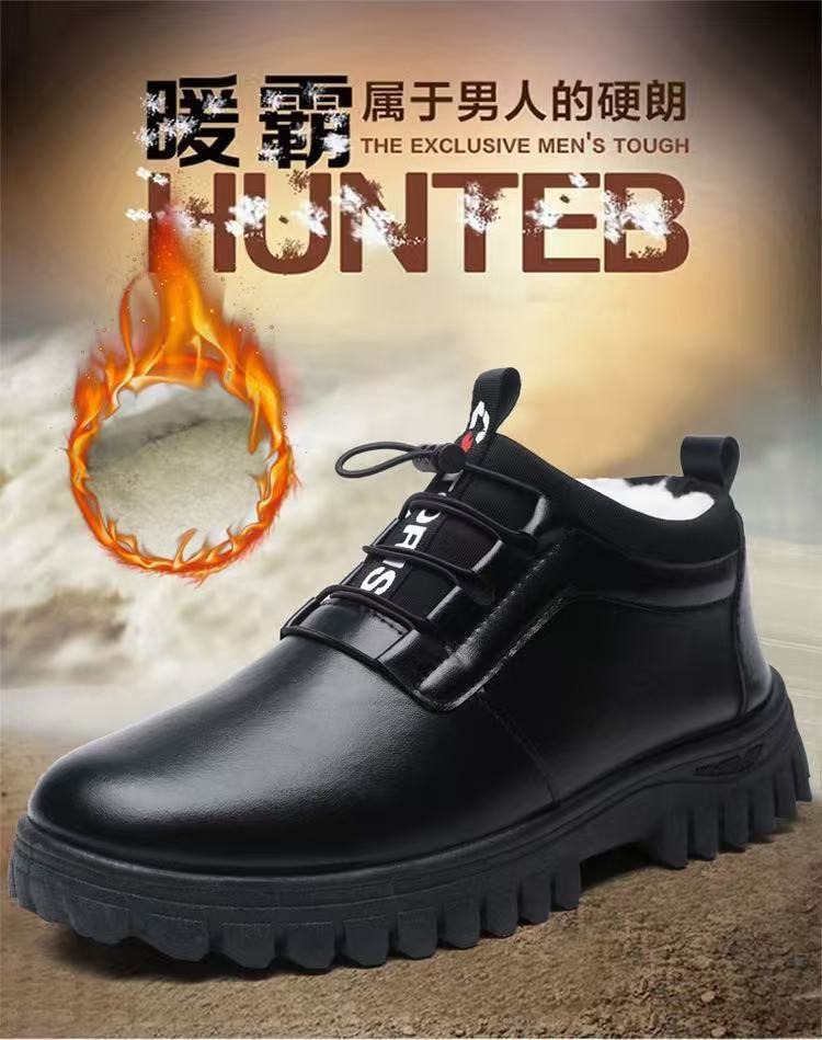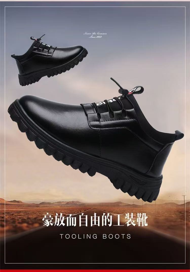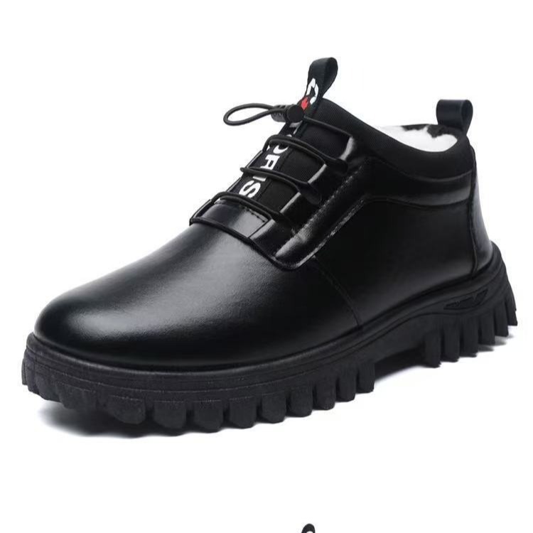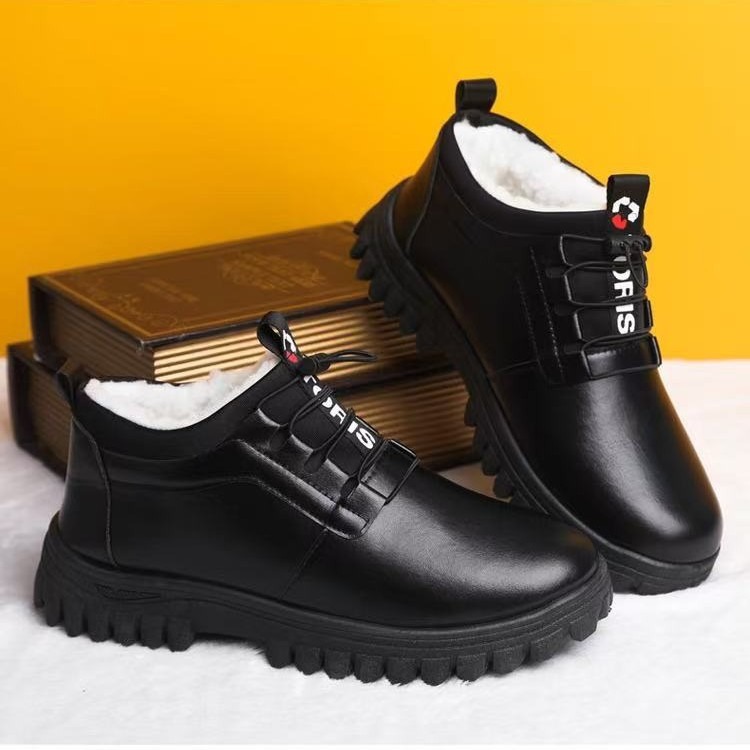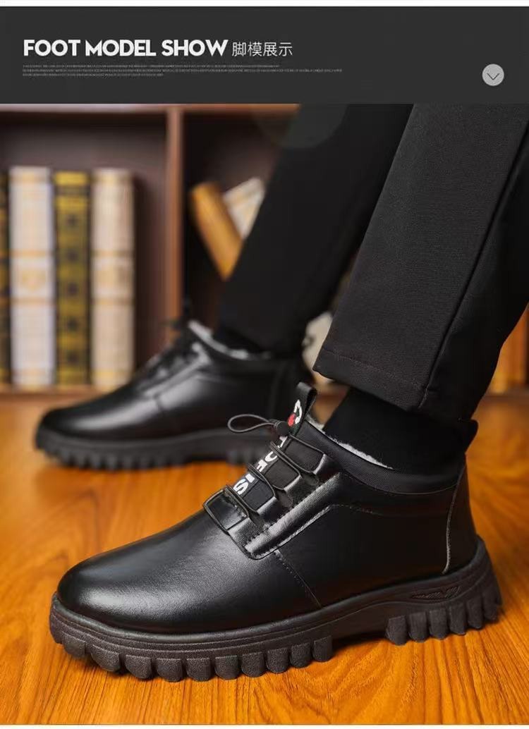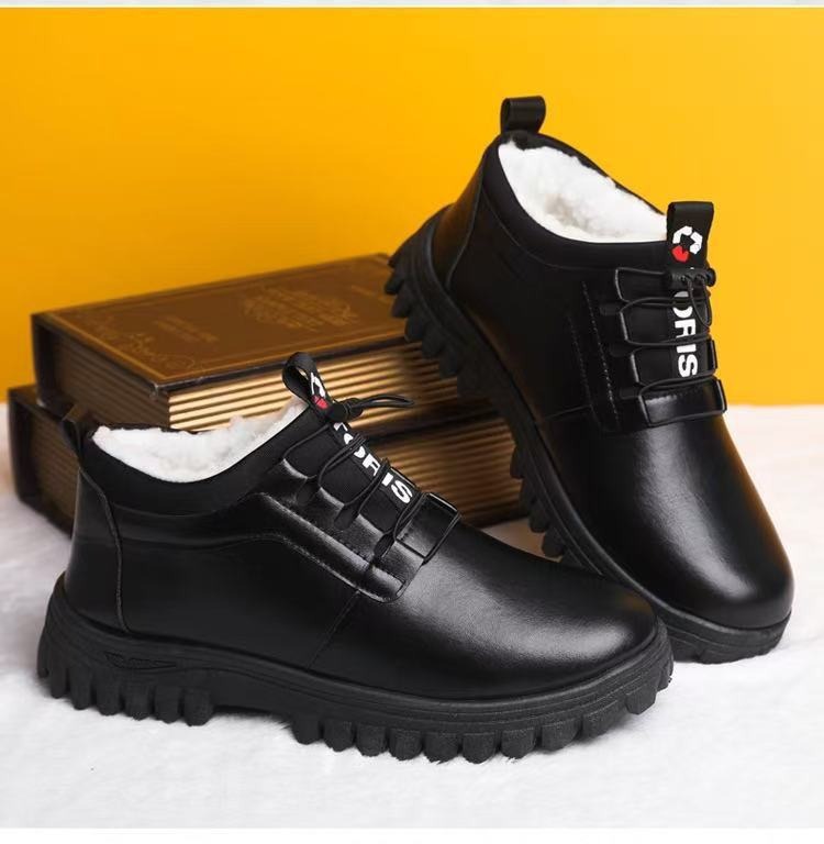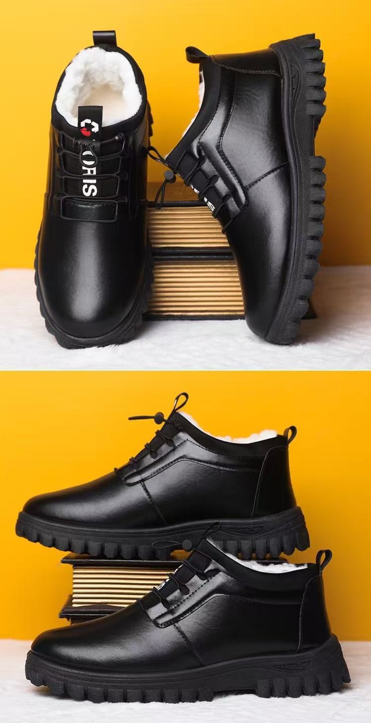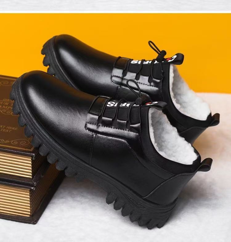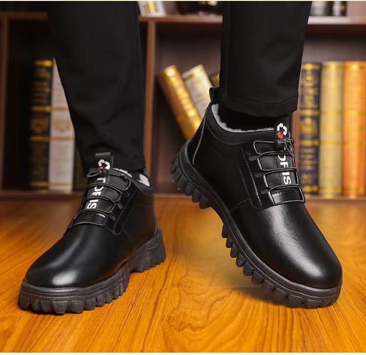 2025新款男士棉鞋冬季加绒加厚英伦风皮鞋厚底防滑时尚保暖雪地靴