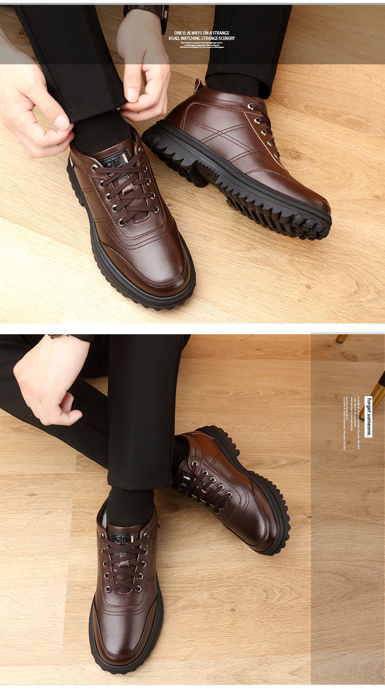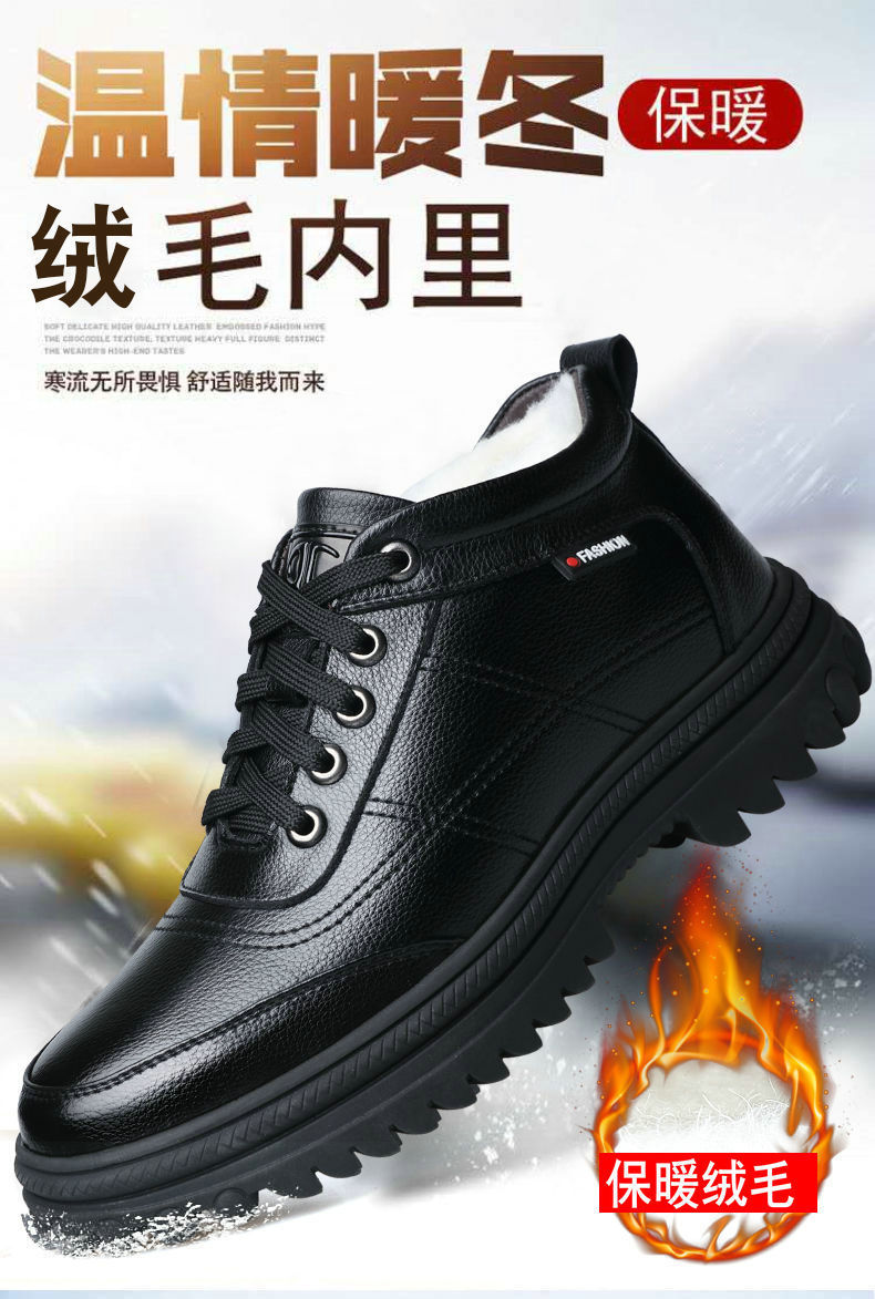 跨境男士棉鞋中帮保暖加绒休闲百搭冬季皮面跑步鞋中年时尚休闲鞋