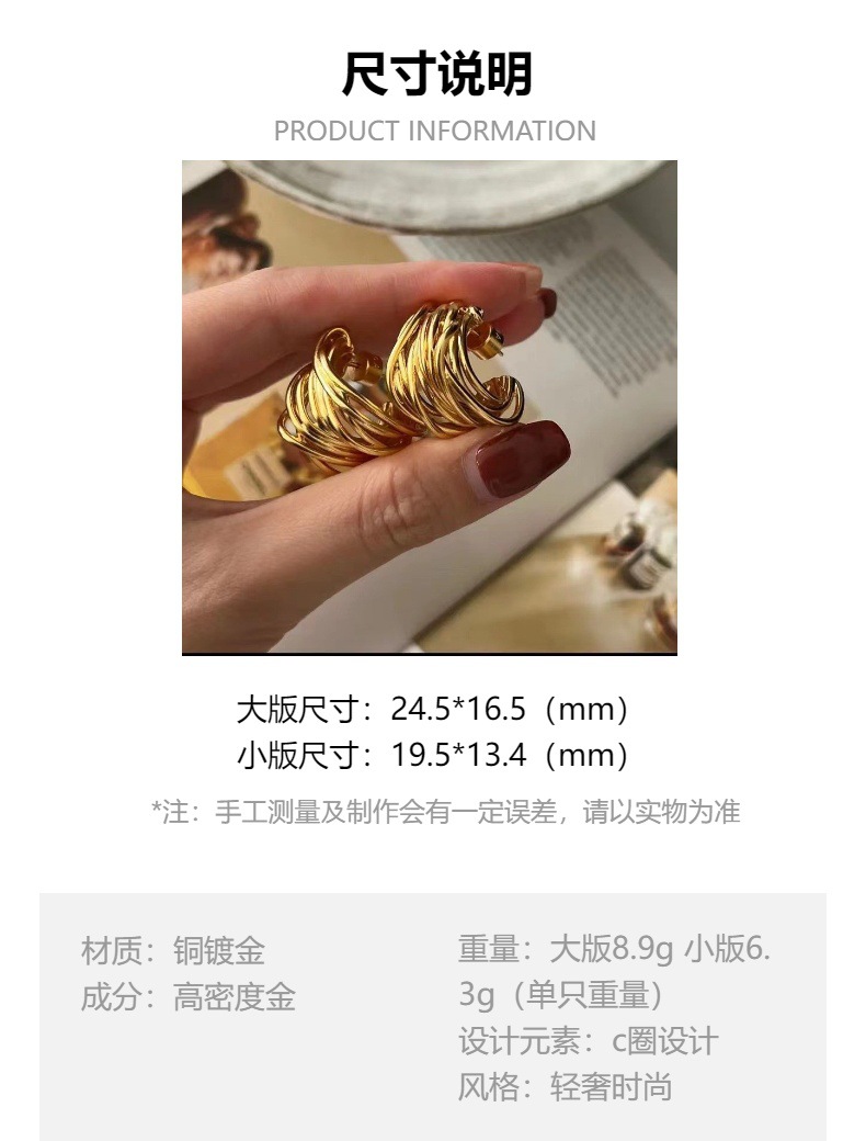 高级感轻奢C形小众金属重工复古潮流欧美2025新款设计感气质耳圈