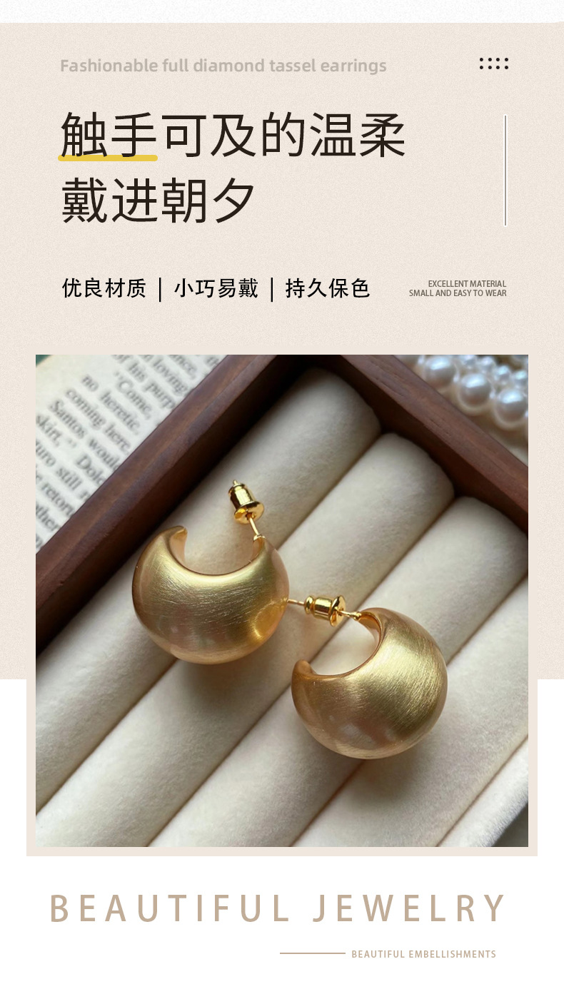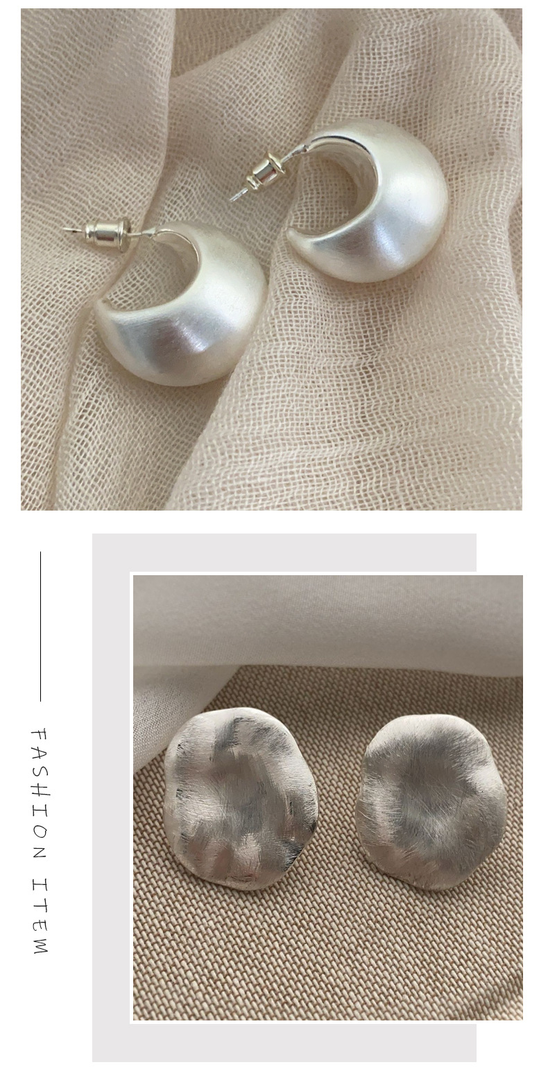 法式复古夸张个性哑光金属耳钉女韩国小众百搭气质时尚耳环耳饰