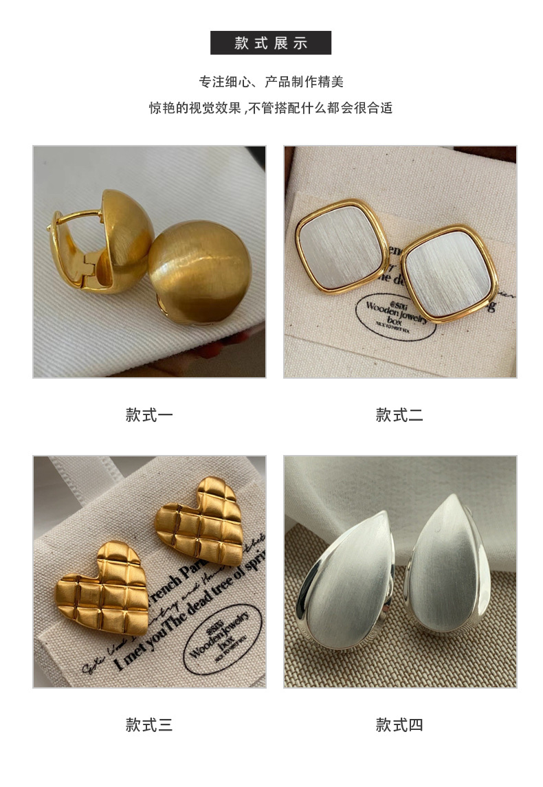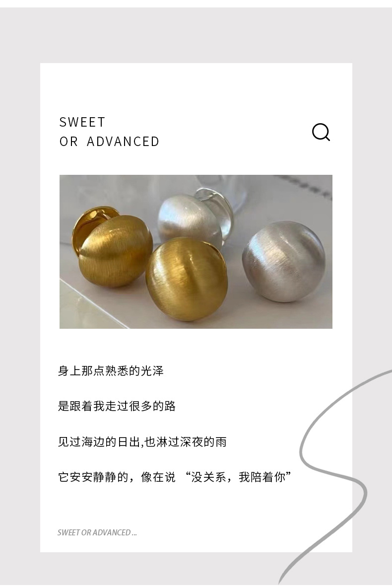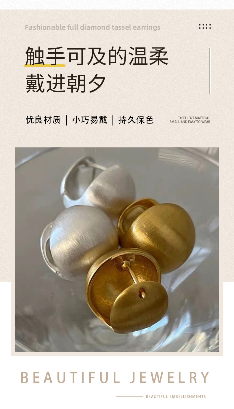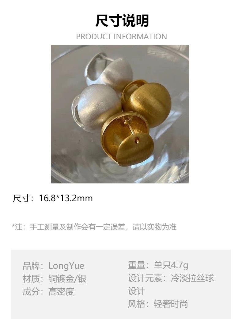 拉丝圆球耳环女高级感磨砂小众设计轻奢气质球球耳扣质感复古耳钉