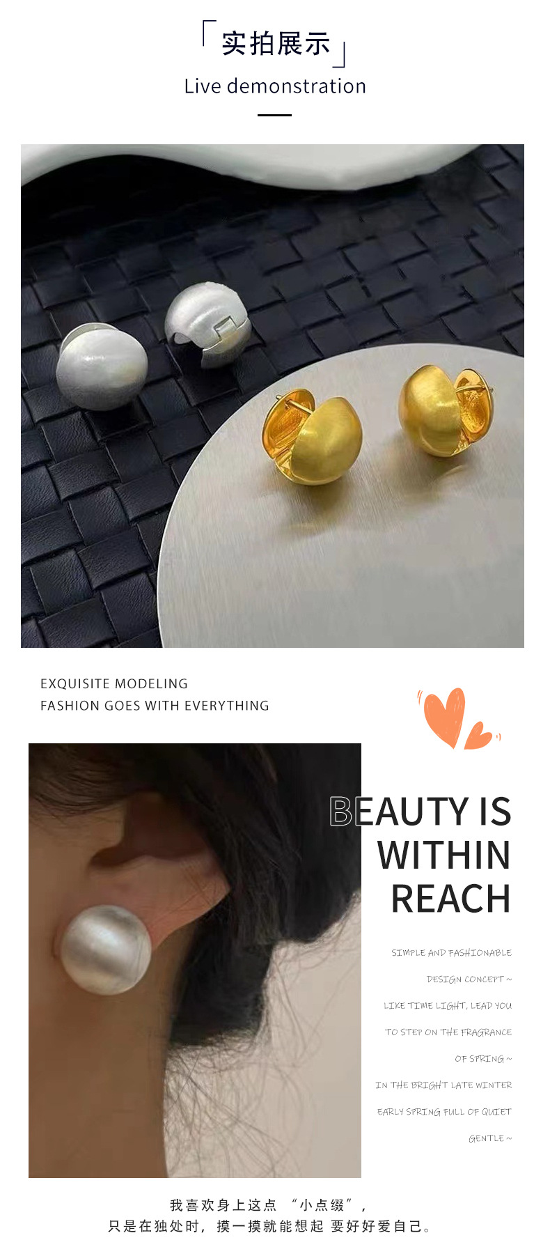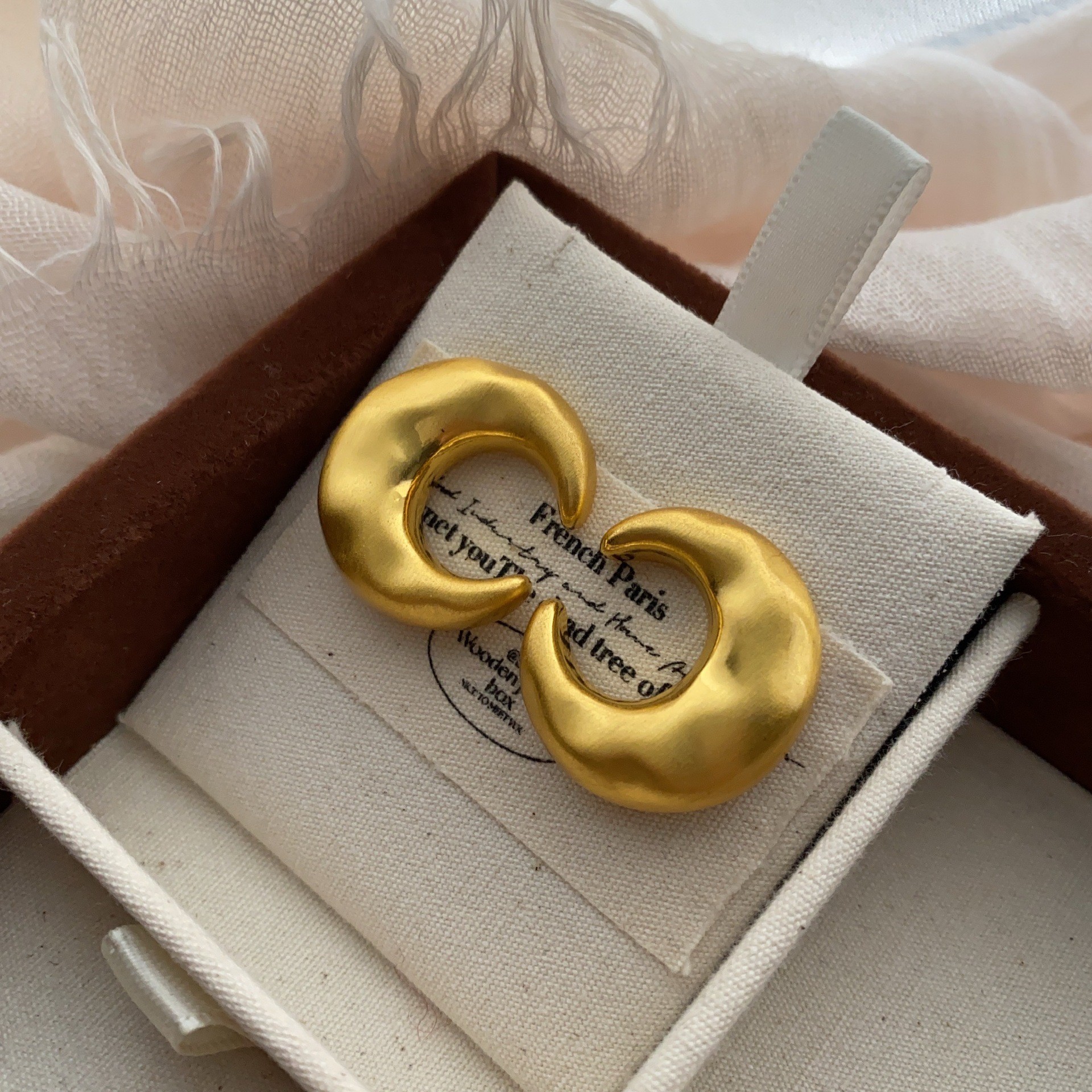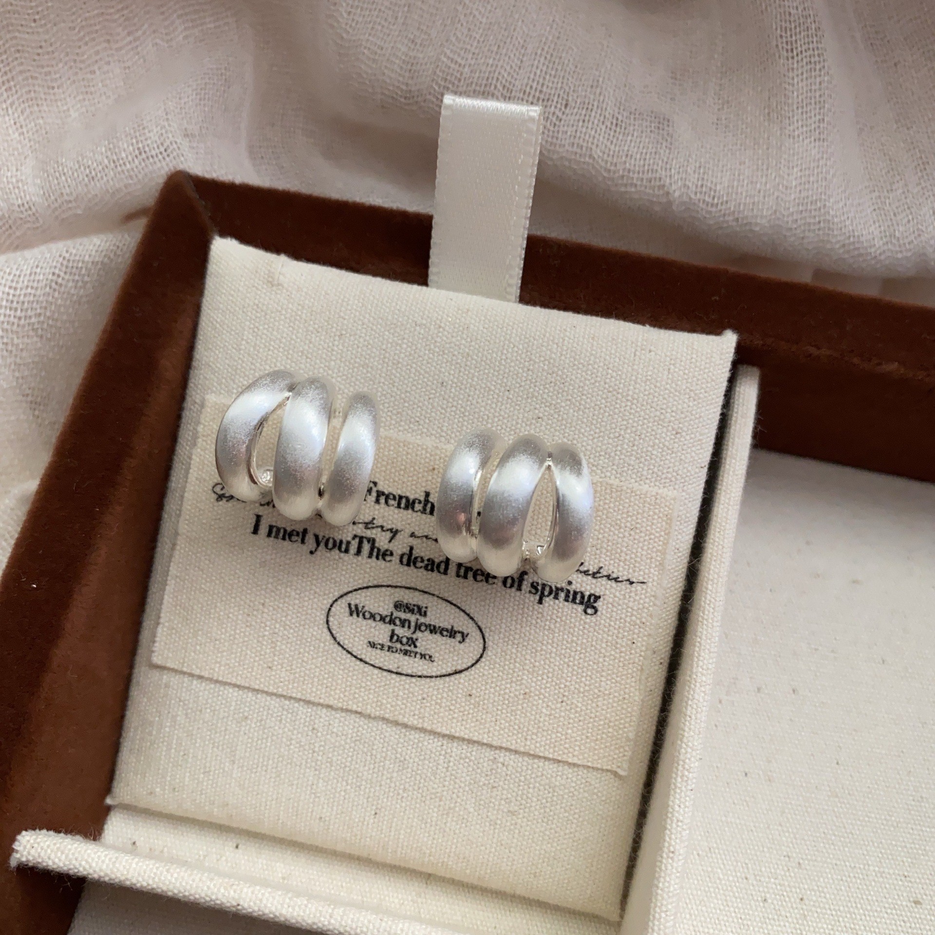 拉丝圆球耳环女高级感磨砂小众设计轻奢气质球球耳扣质感复古耳钉