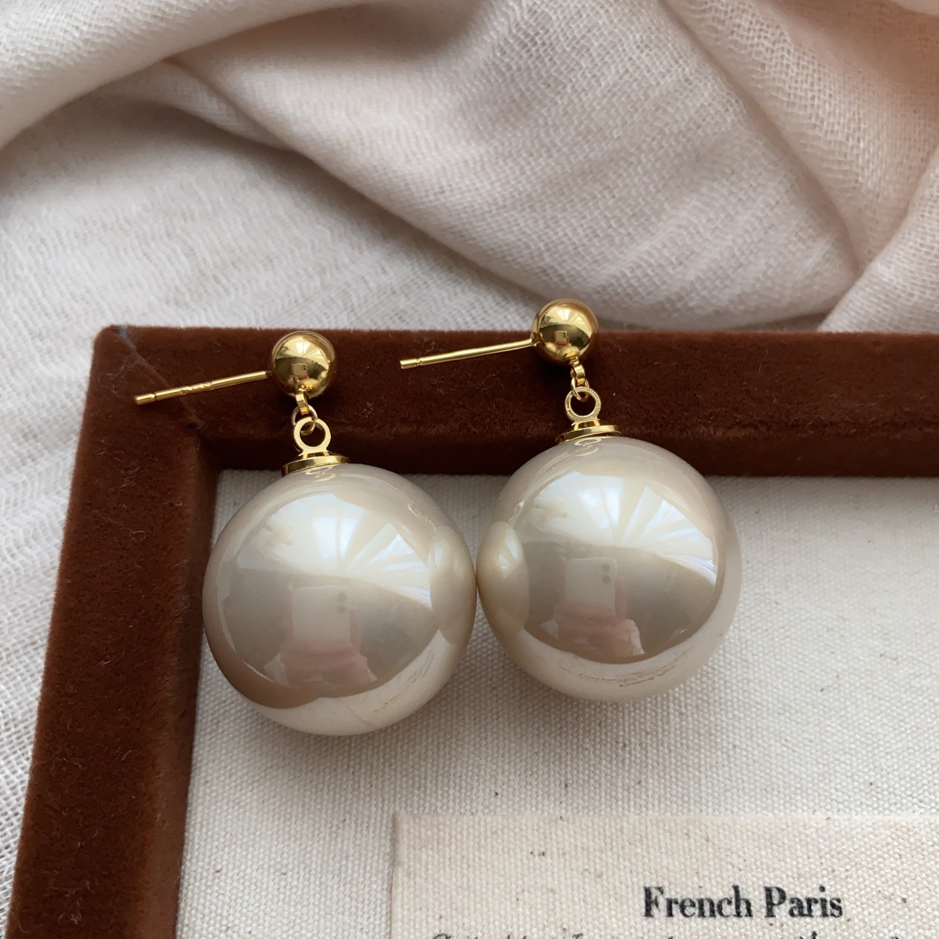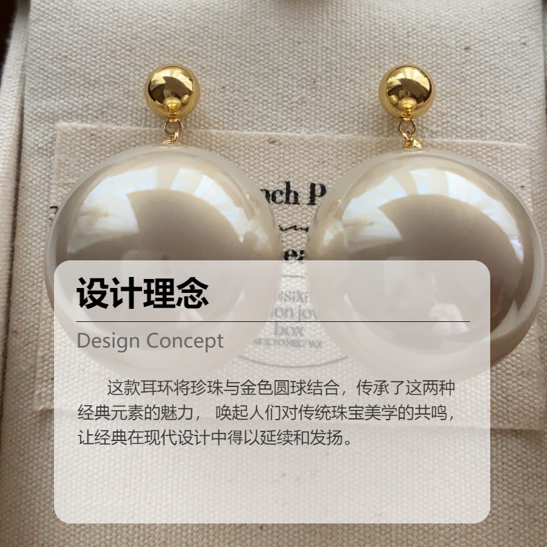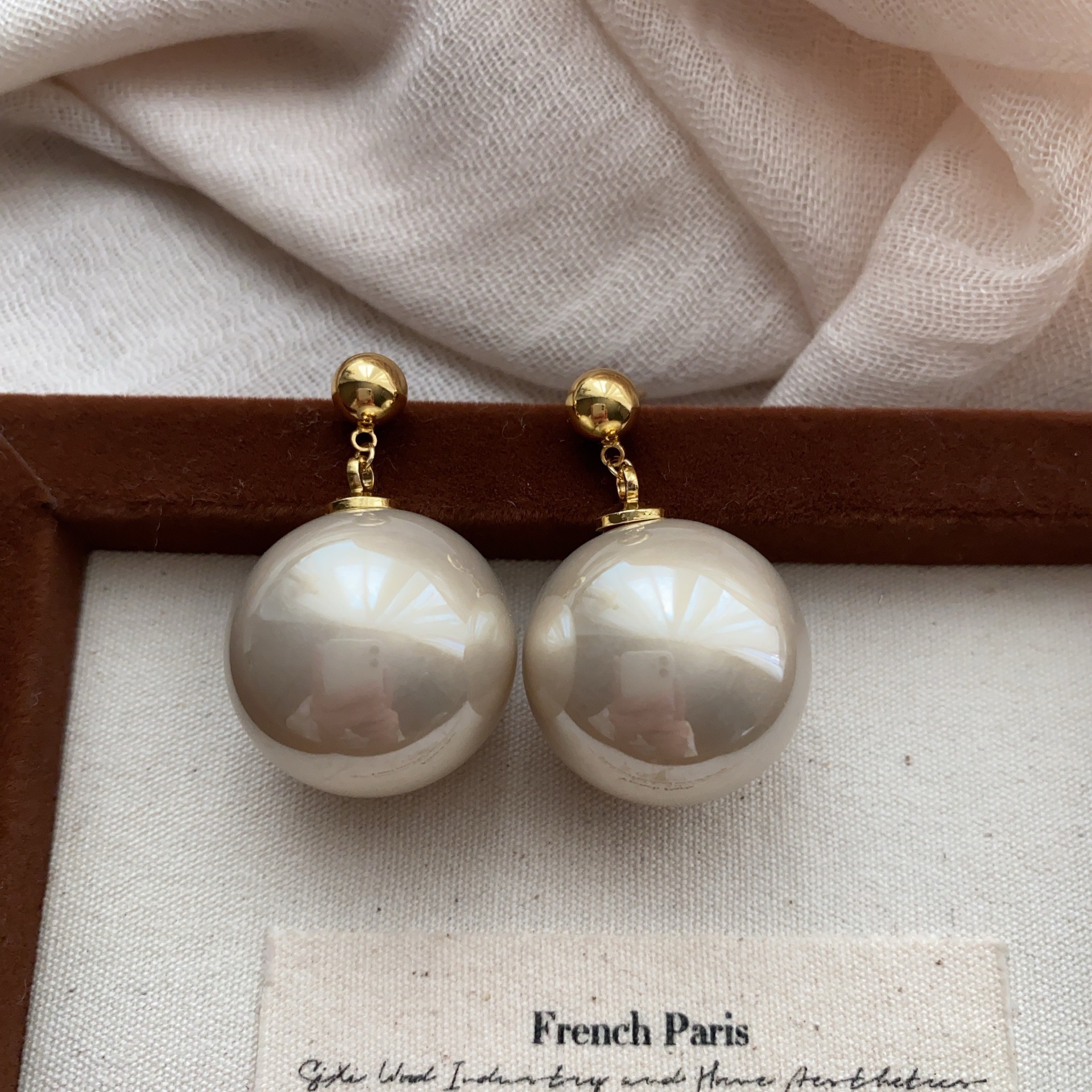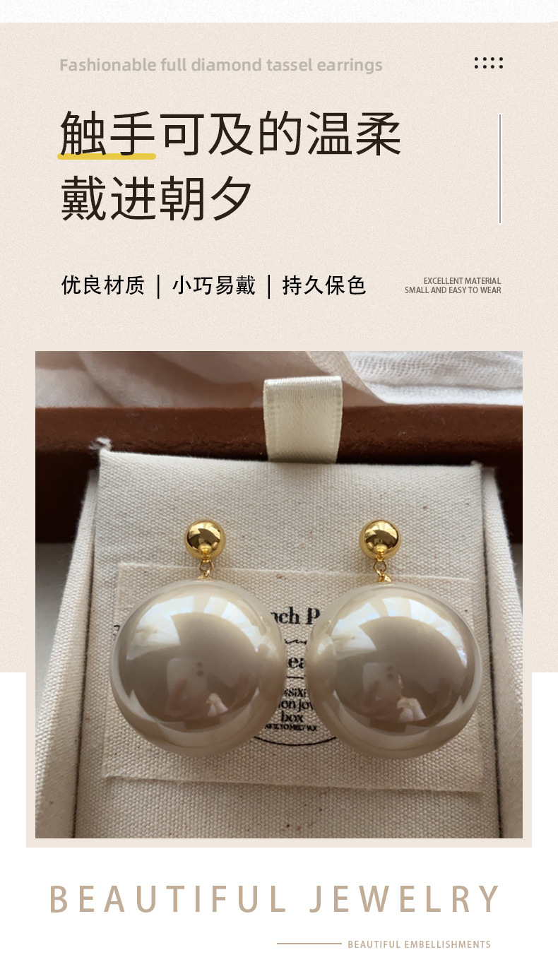 欧美简约珍珠耳环大颗耳坠耳钉百搭时尚女士高档名媛气质轻奢耳饰