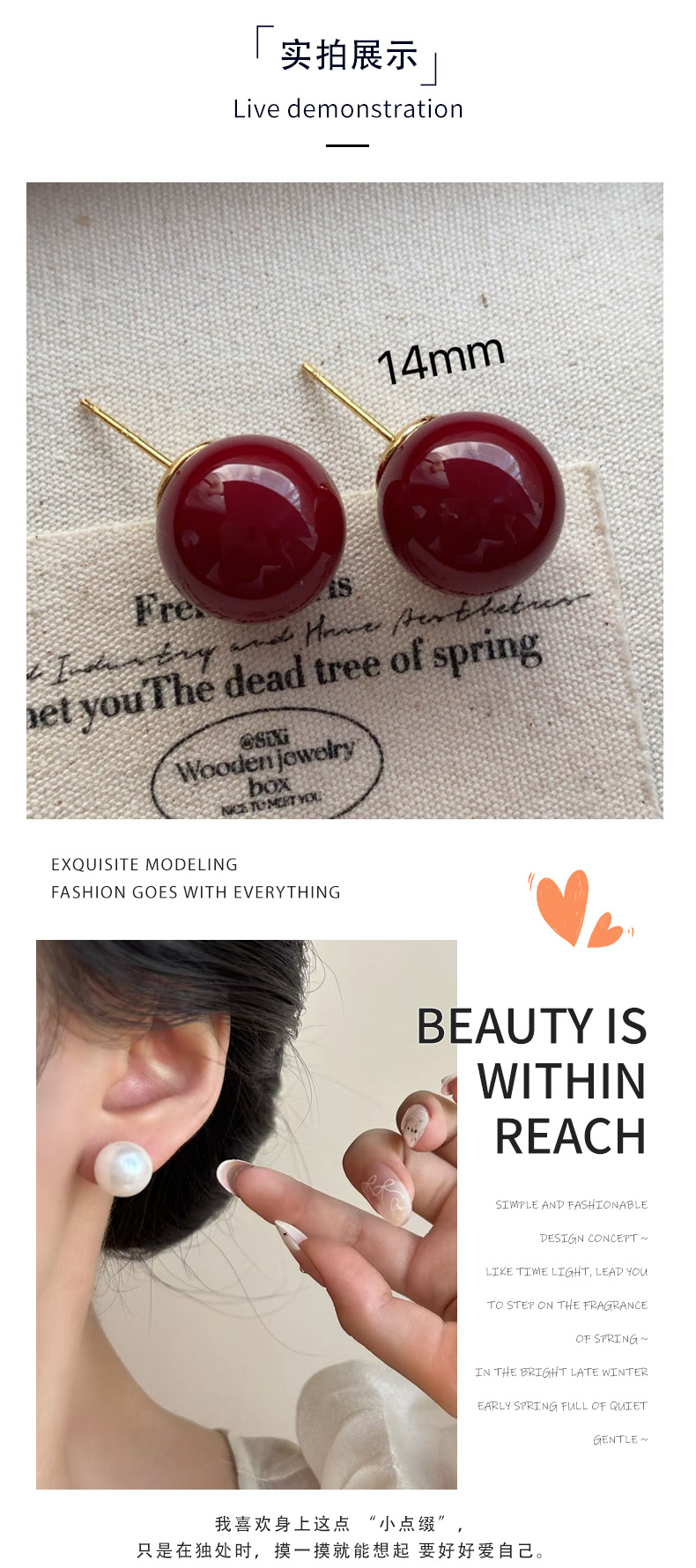 超显白2025年新款本命年红色珍珠耳钉耳环高级感百搭显脸瘦耳饰女
