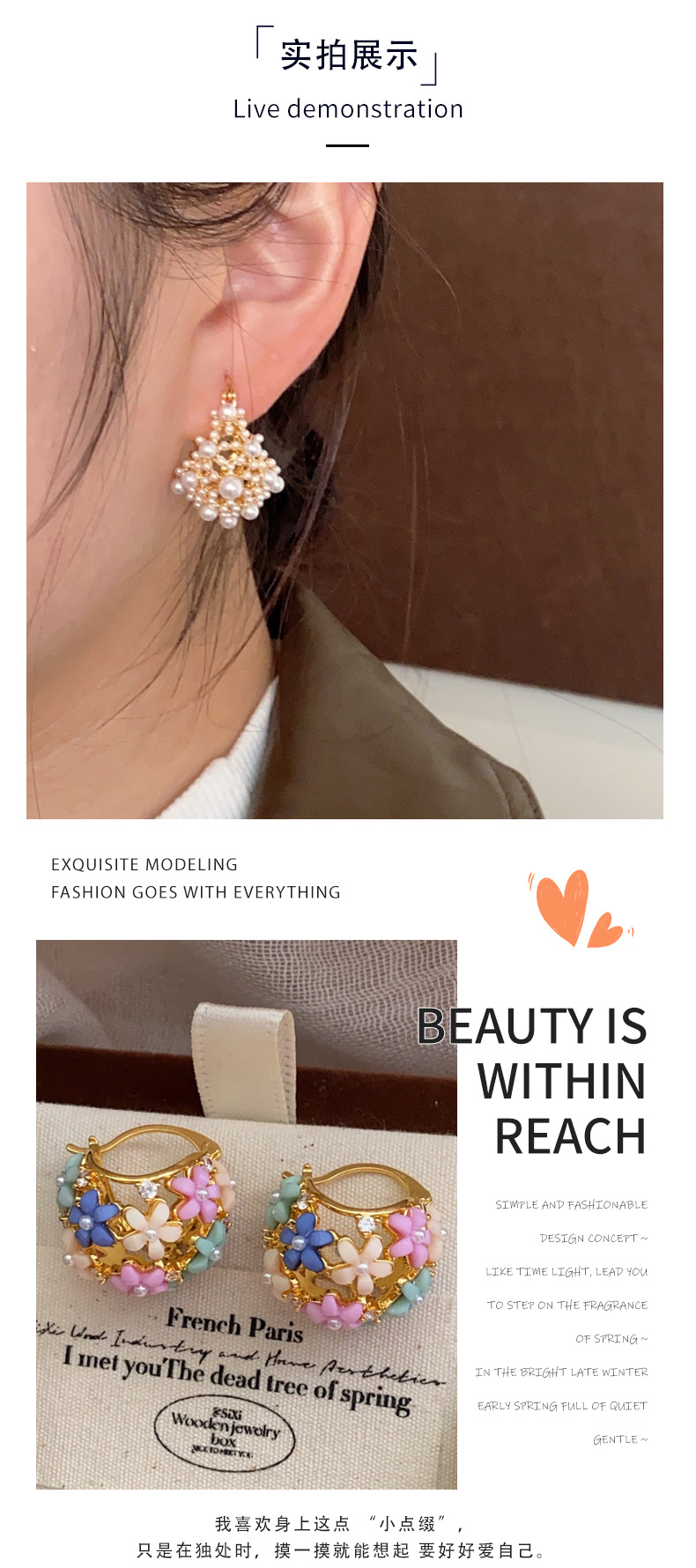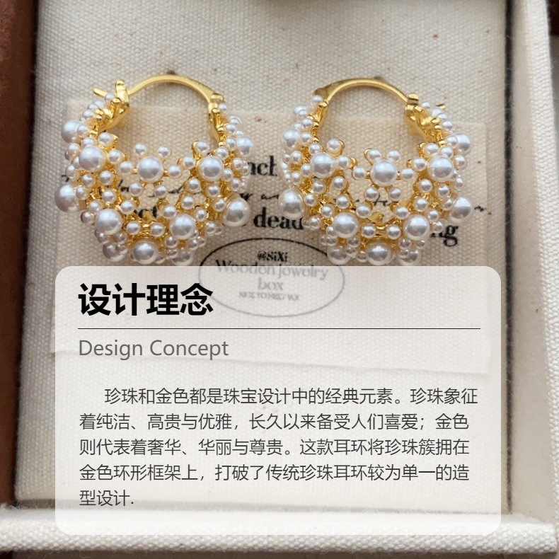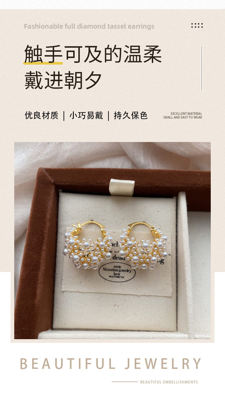 法式浪漫小米珠耳环时尚大气古风耳饰气质高级感轻奢小众设计耳圈
