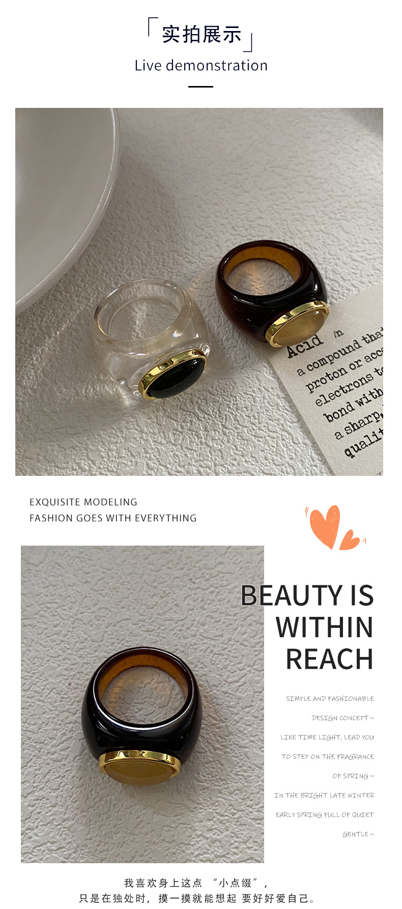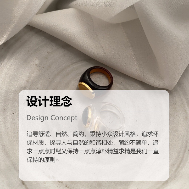 法式浪漫风小众设计气质博主同款高级感指环复古简约树脂棕色戒指