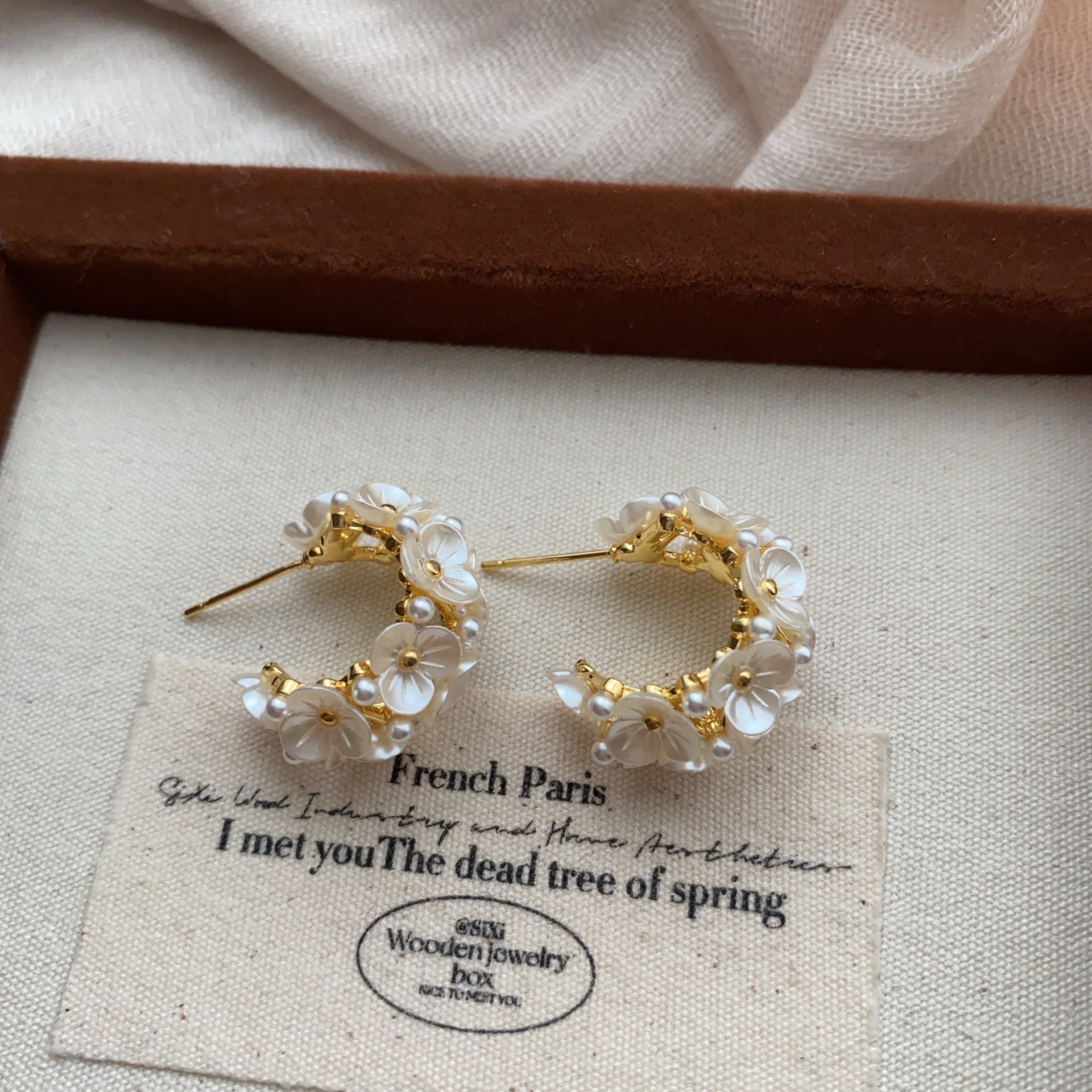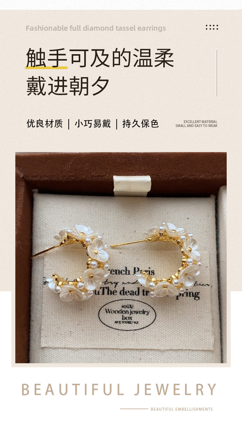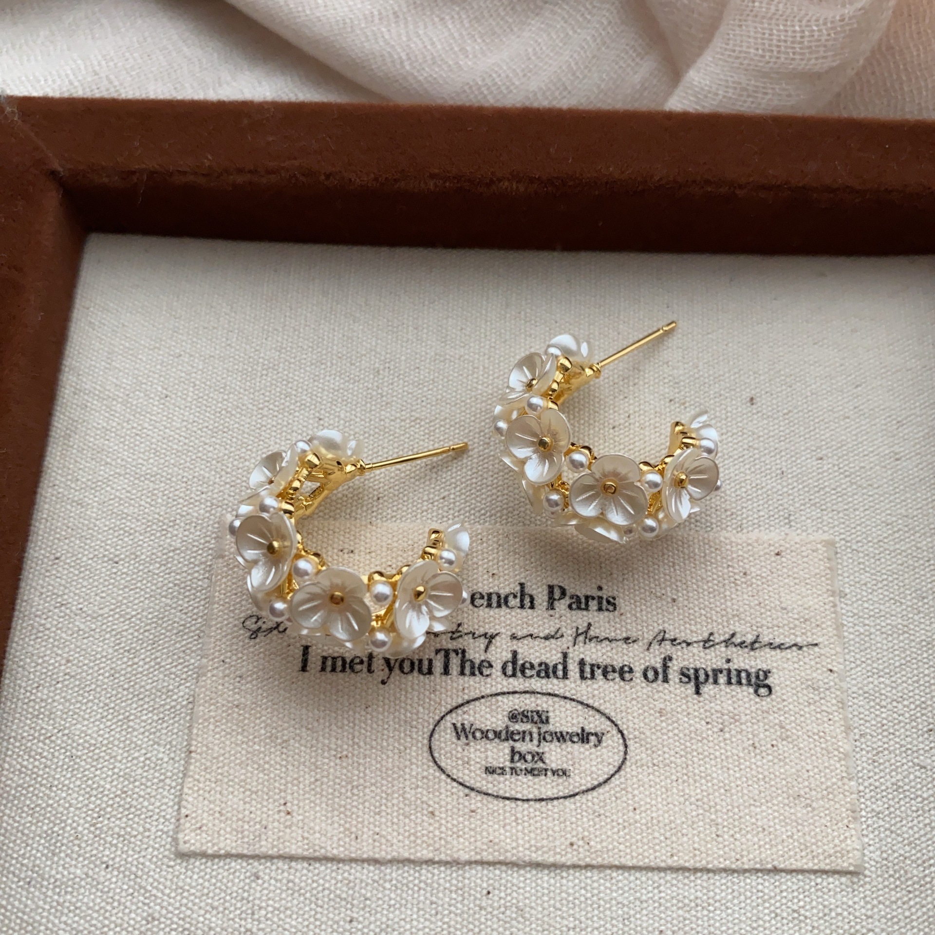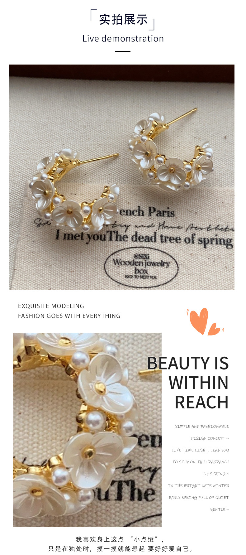 时尚韩版高雅气质小众独特设计贝壳花珍珠耳环女耳圈夸张耳坠耳钉