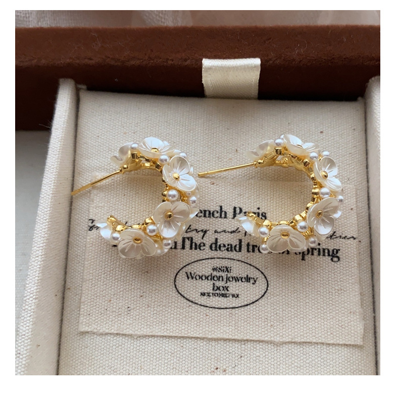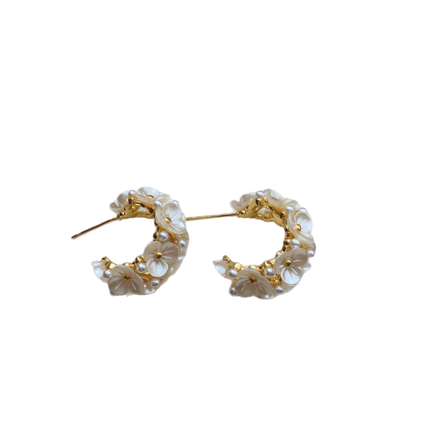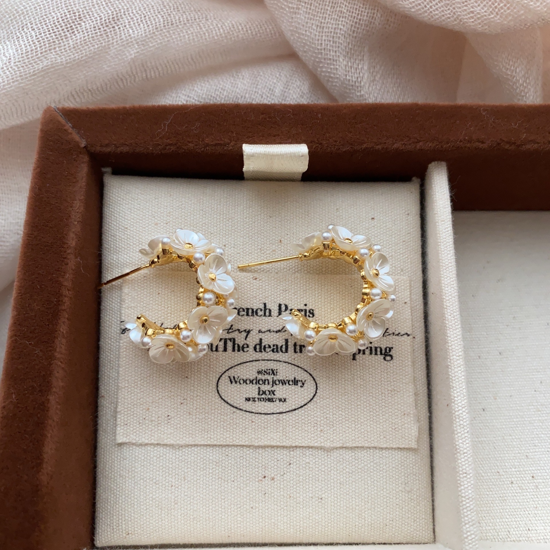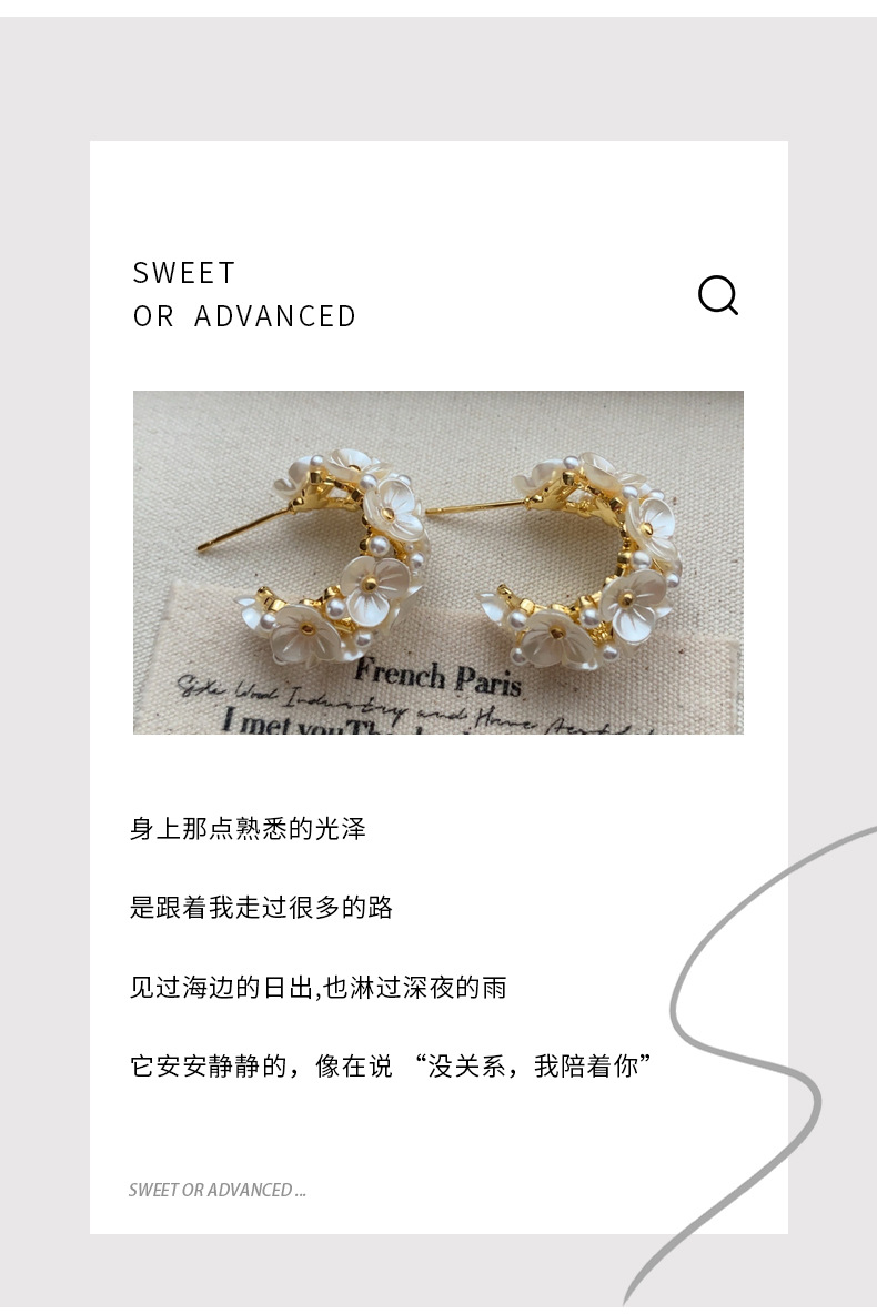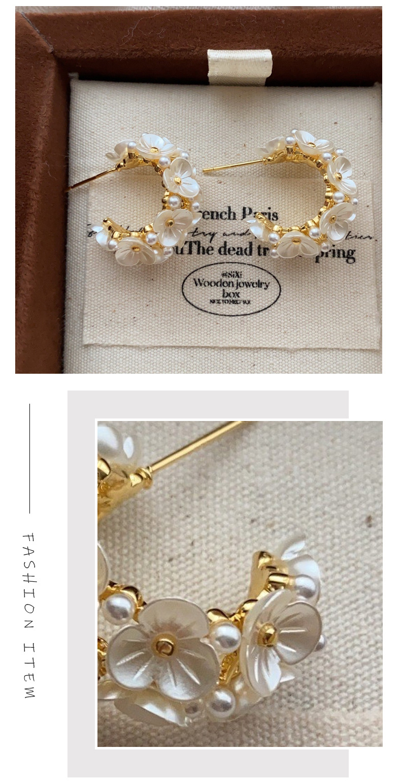 时尚韩版高雅气质小众独特设计贝壳花珍珠耳环女耳圈夸张耳坠耳钉