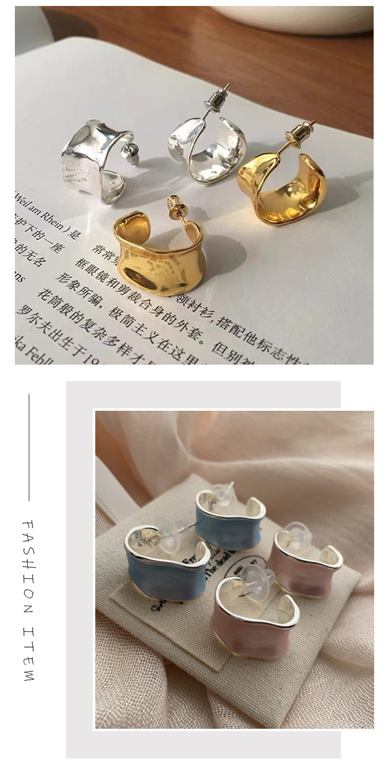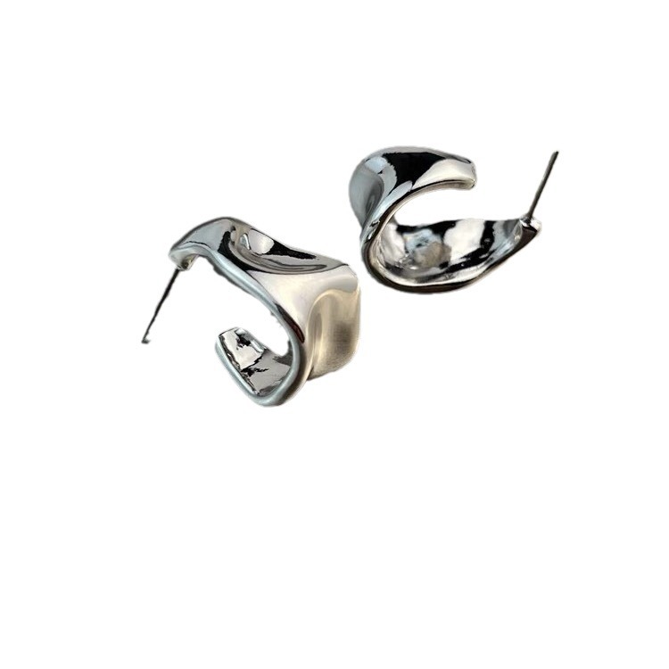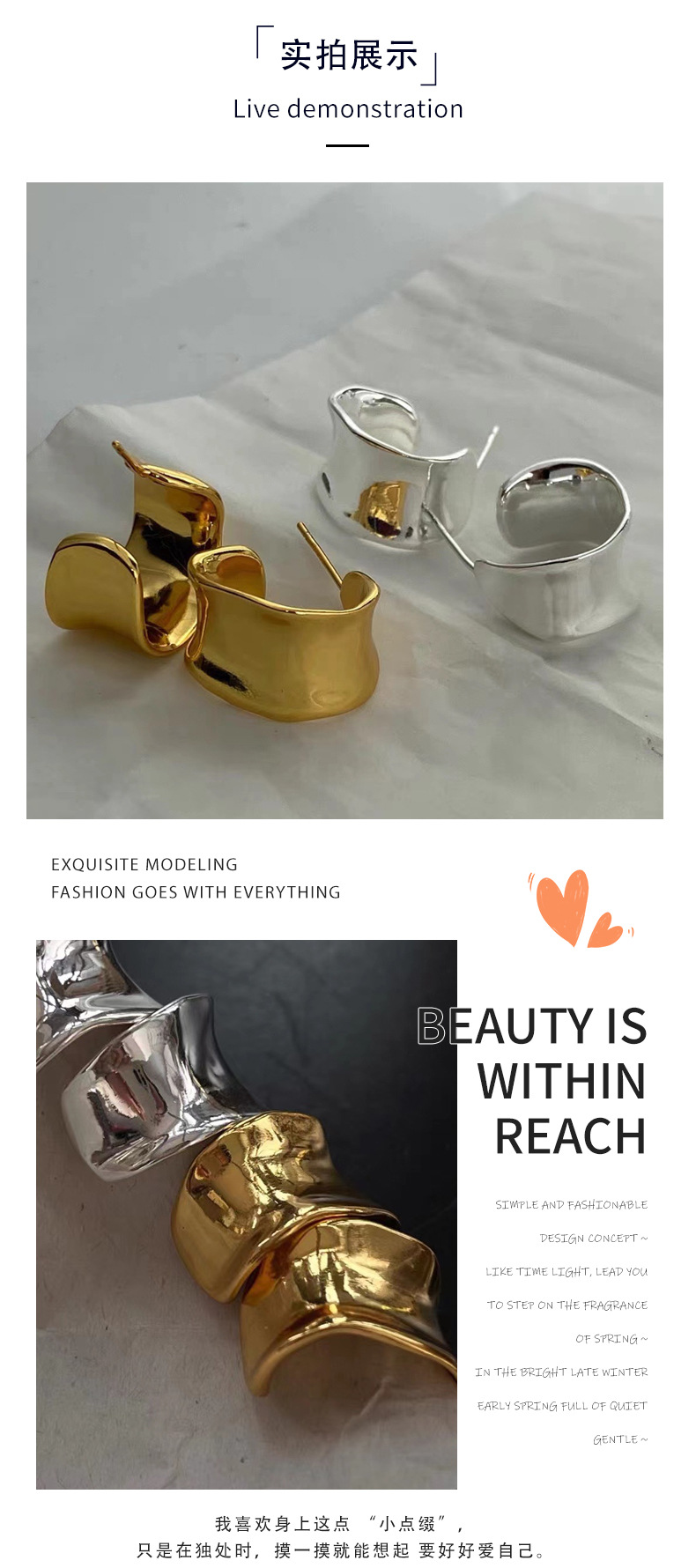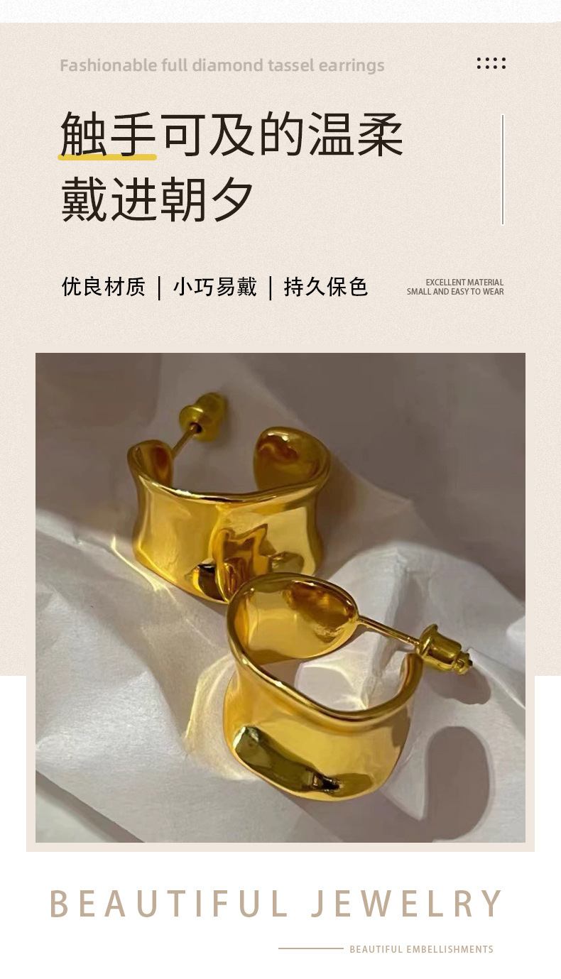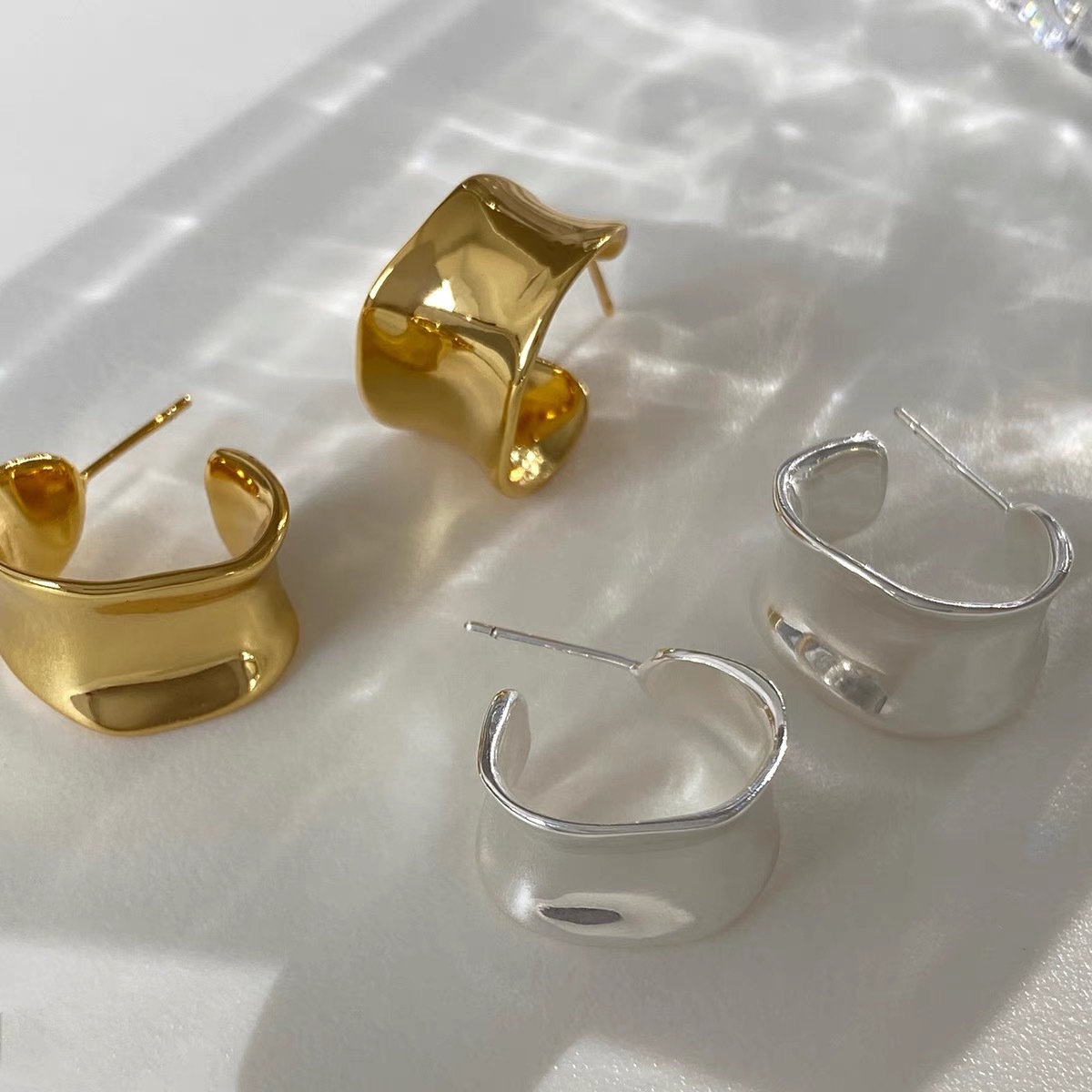 松本惠奈同款简约锤纹弧形耳环气质不规则宽面光面欧美风格耳饰钉