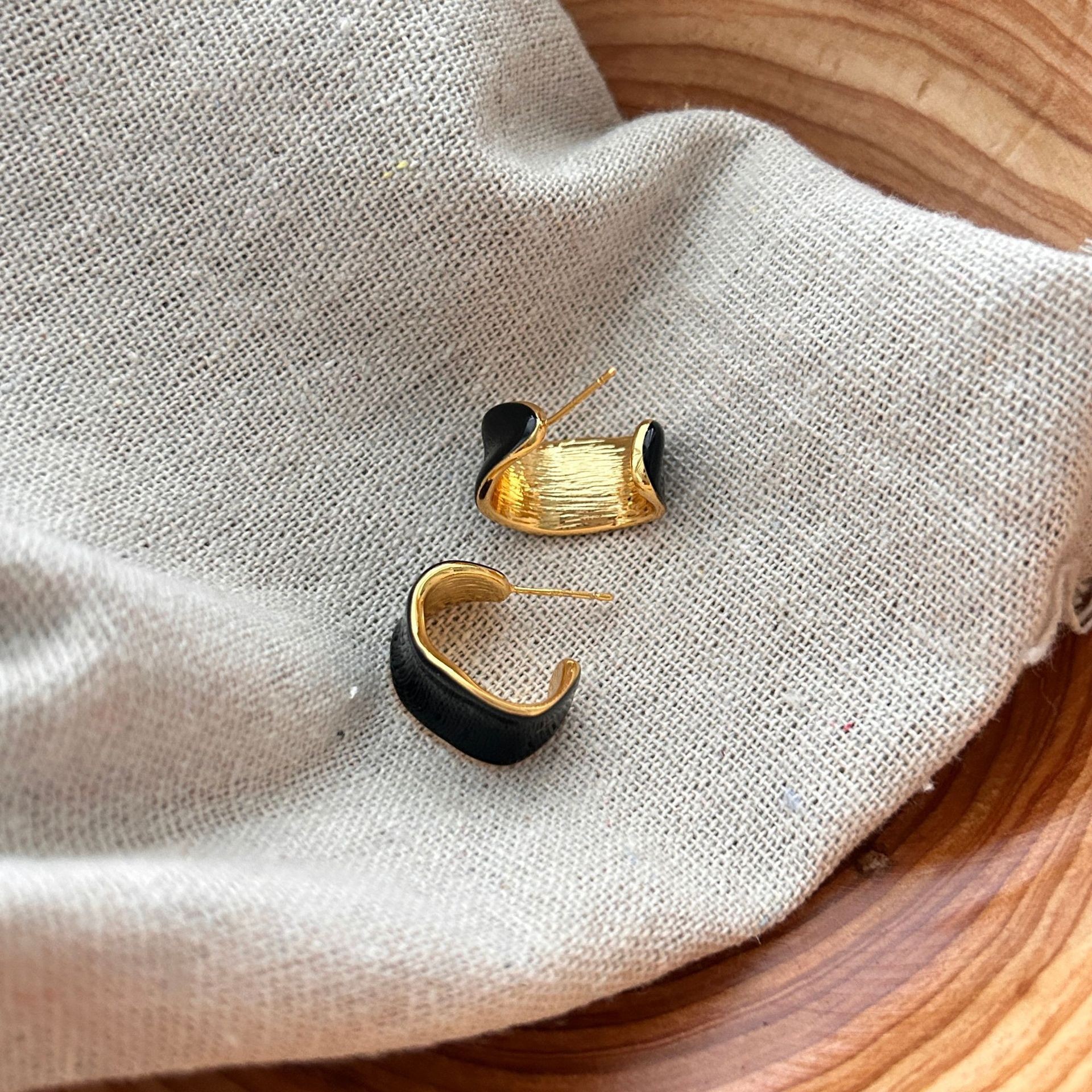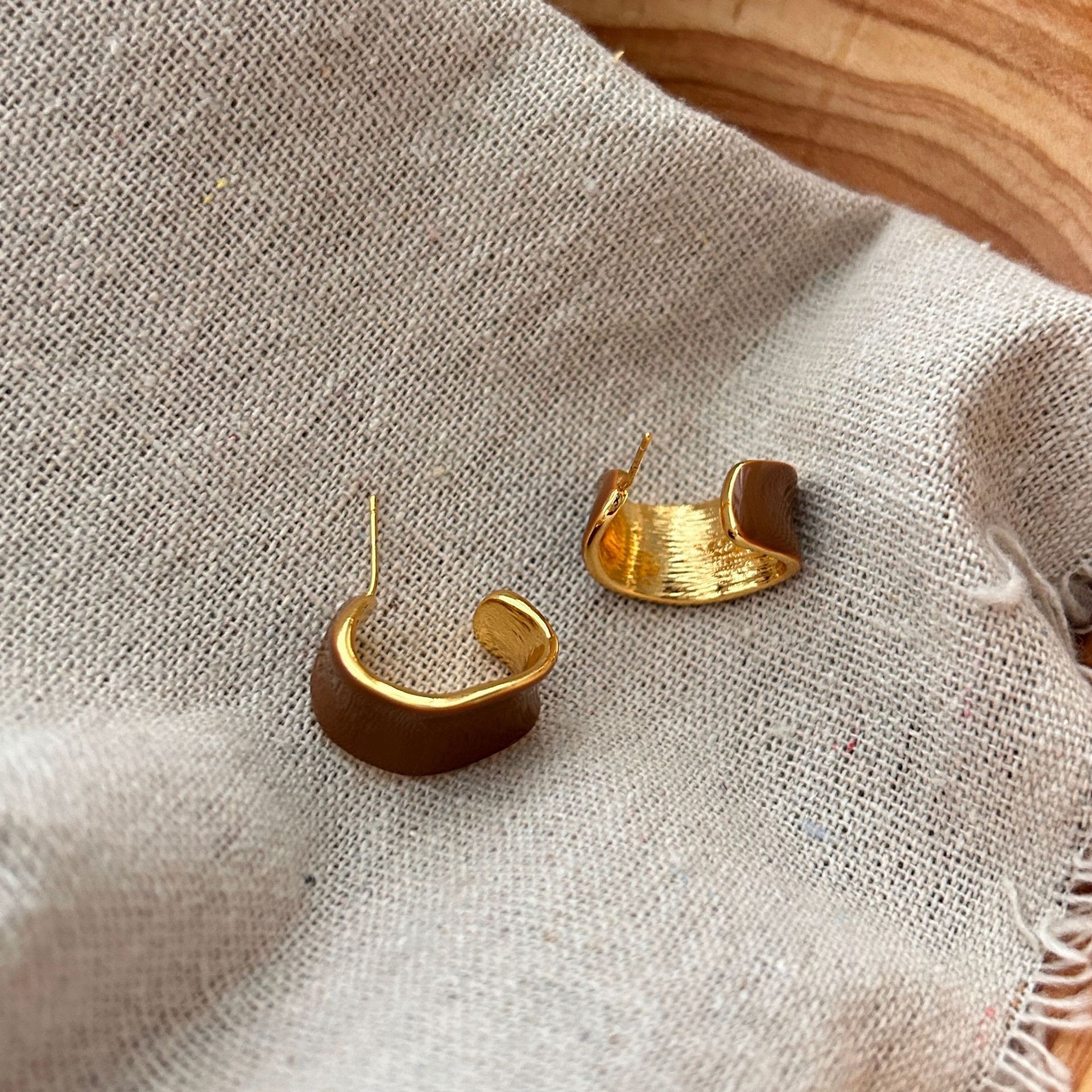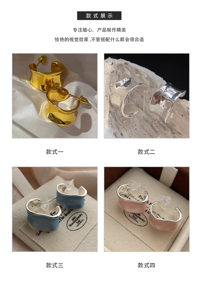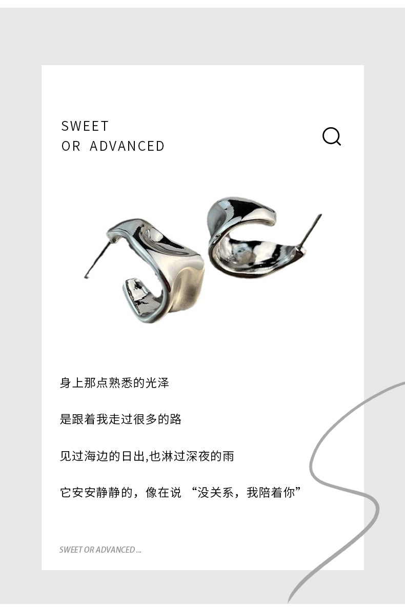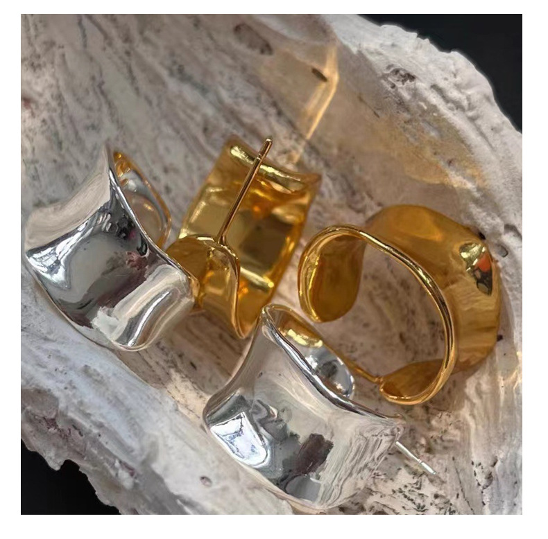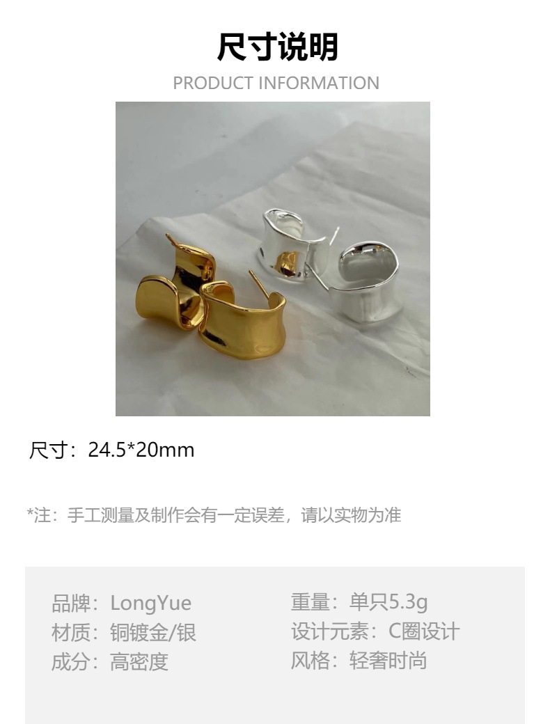 松本惠奈同款简约锤纹弧形耳环气质不规则宽面光面欧美风格耳饰钉