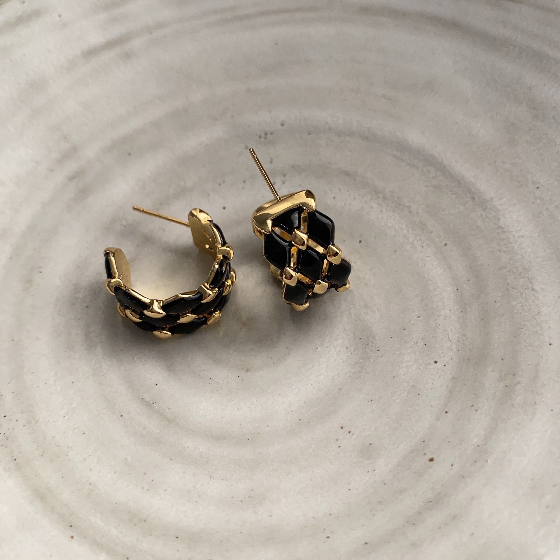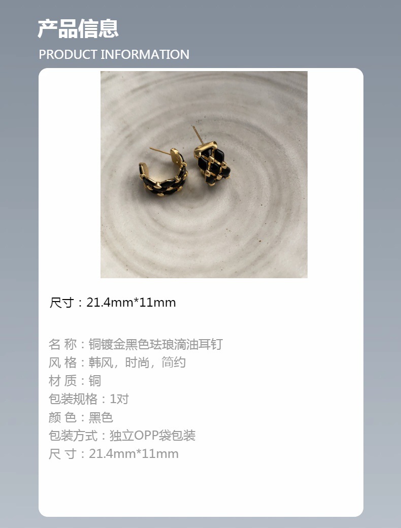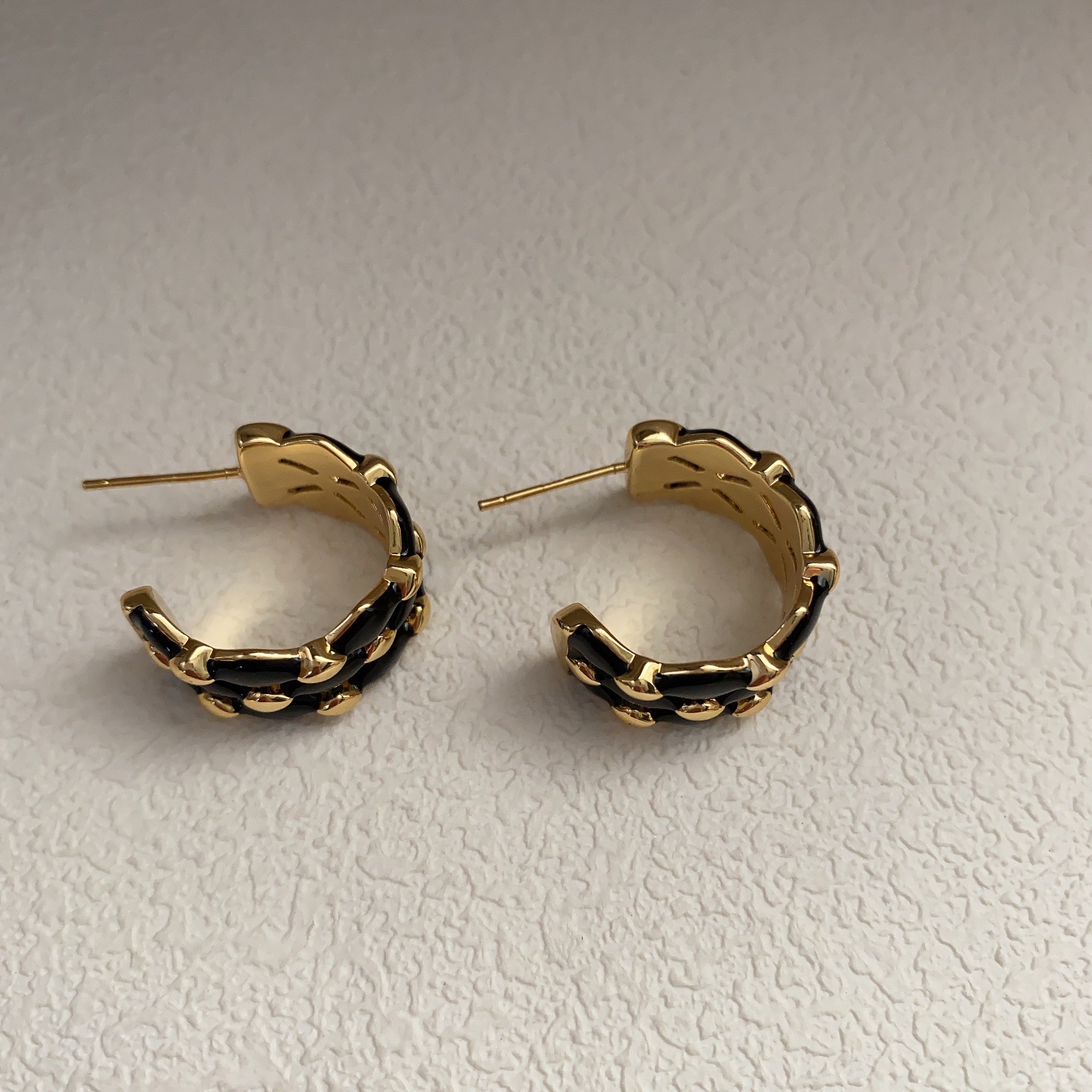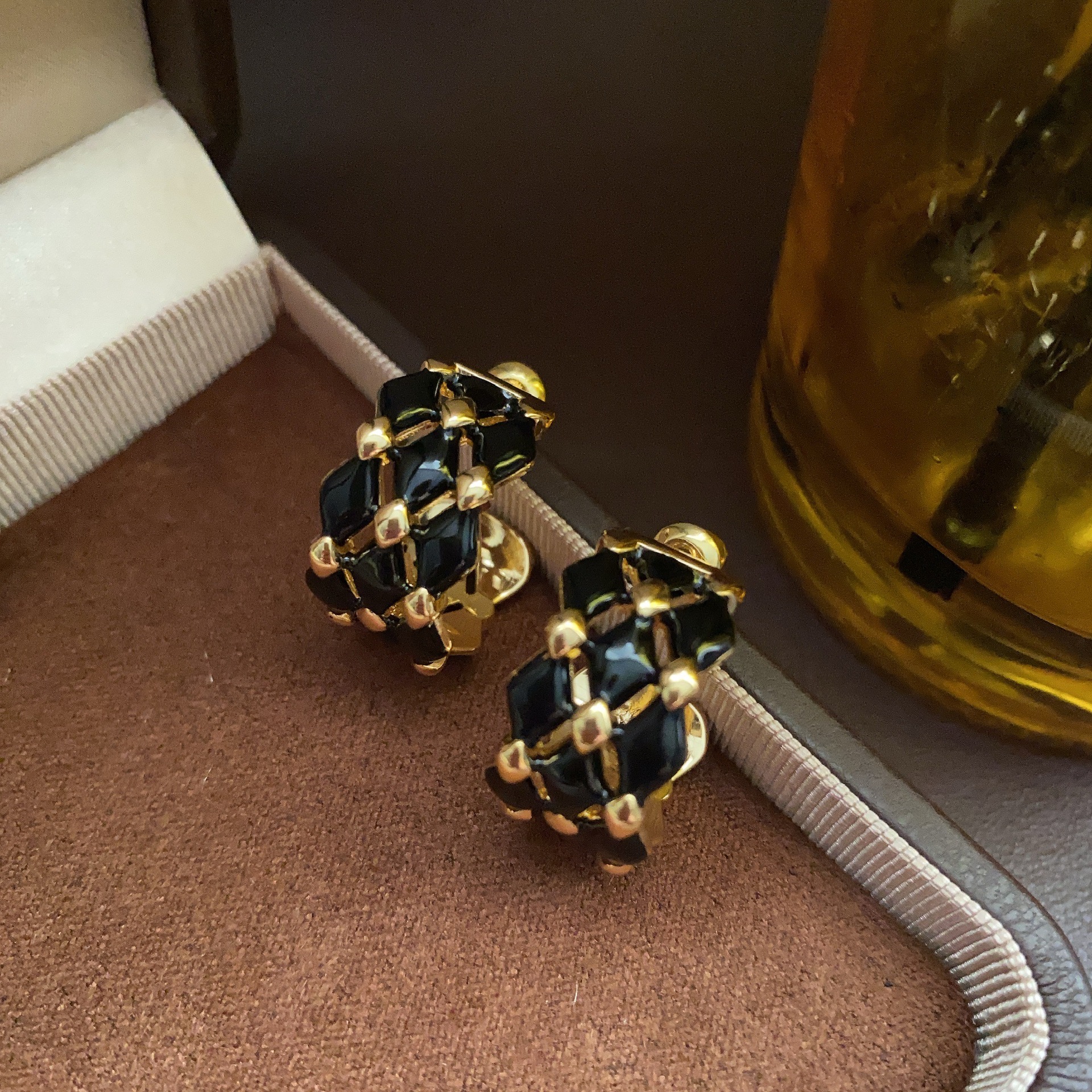 黑金珐琅滴油c形拼色耳钉欧美轻奢高级感时尚爆款菱格耳饰通勤女