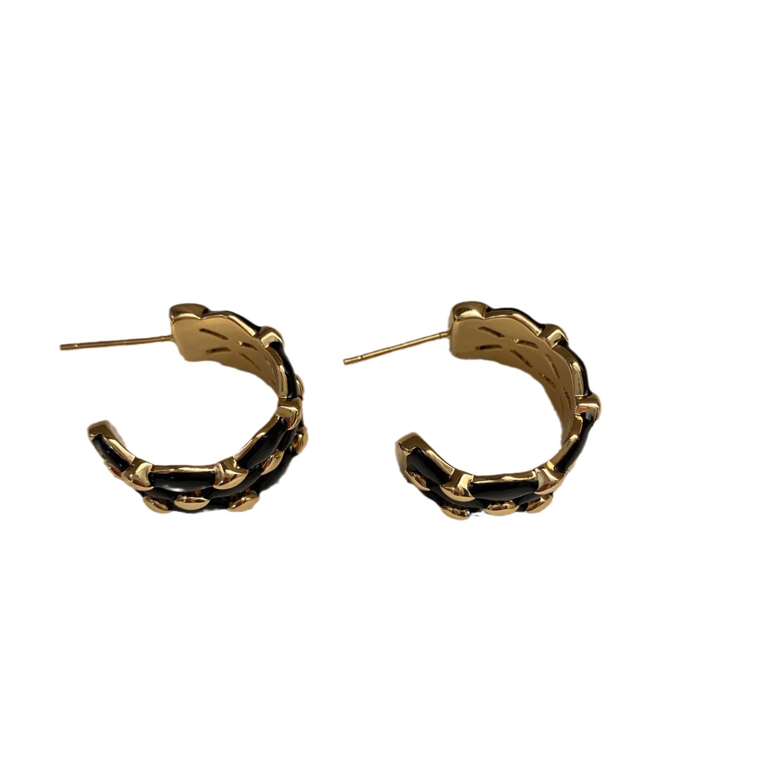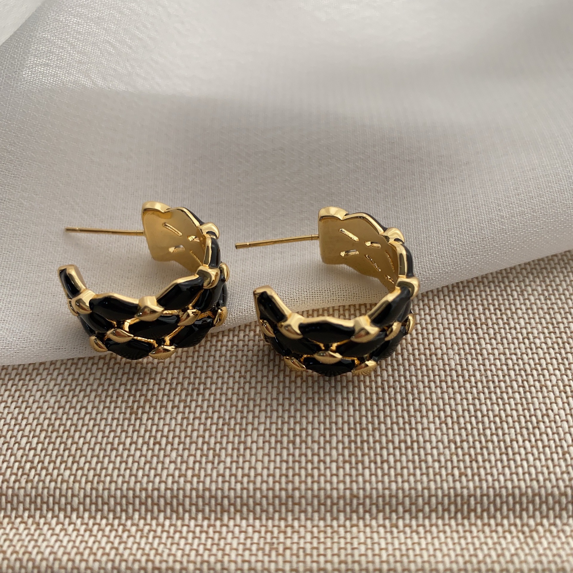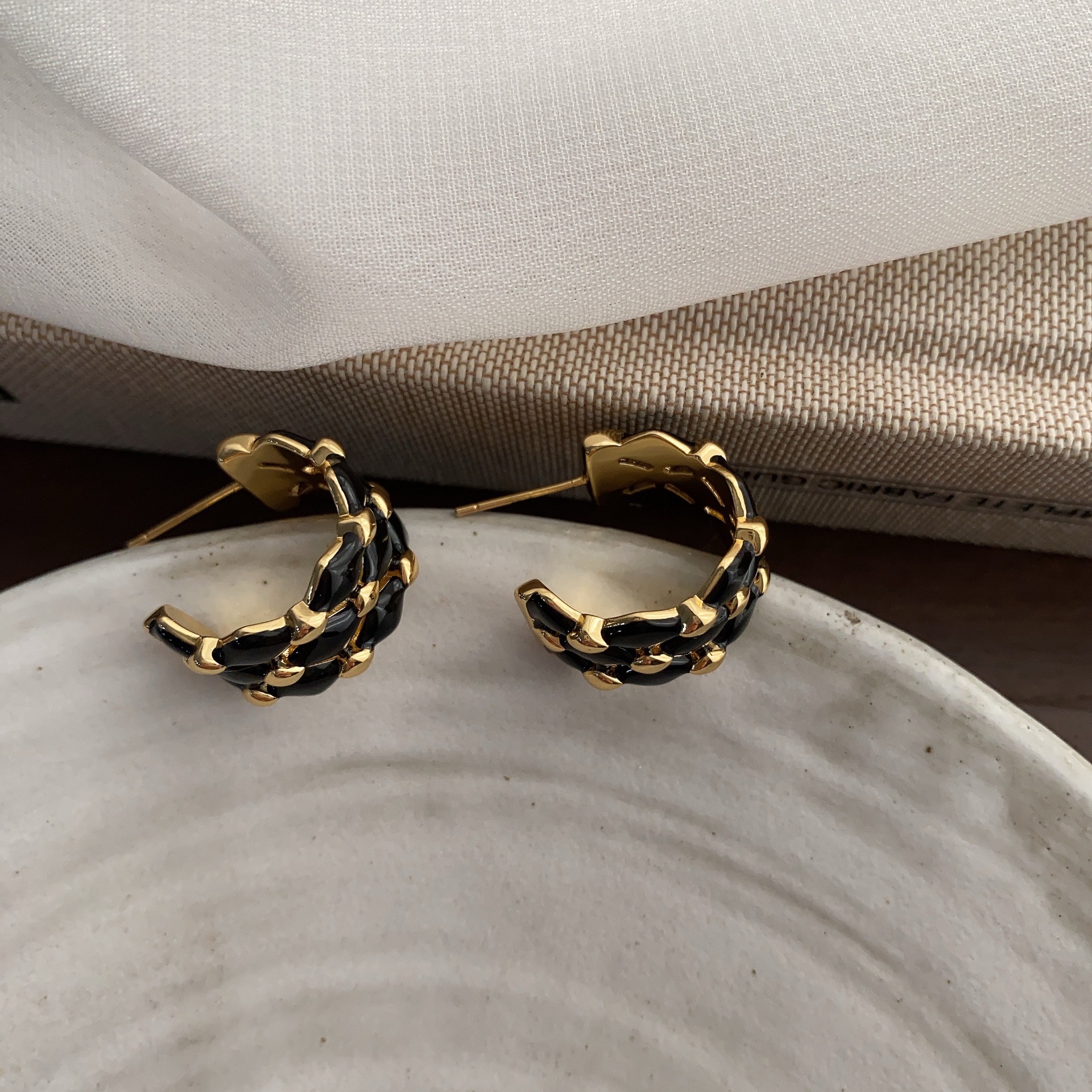黑金珐琅滴油c形拼色耳钉欧美轻奢高级感时尚爆款菱格耳饰通勤女