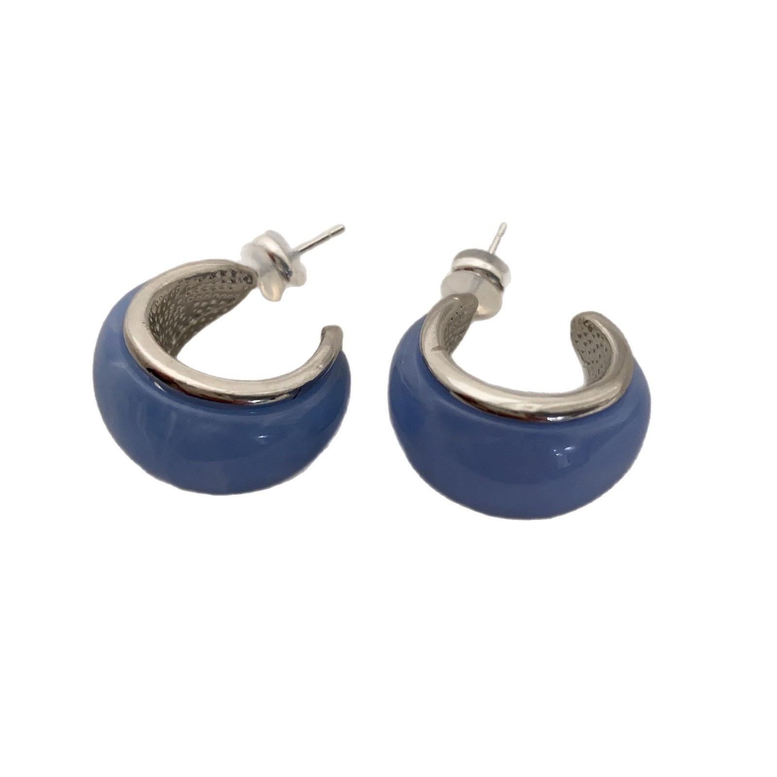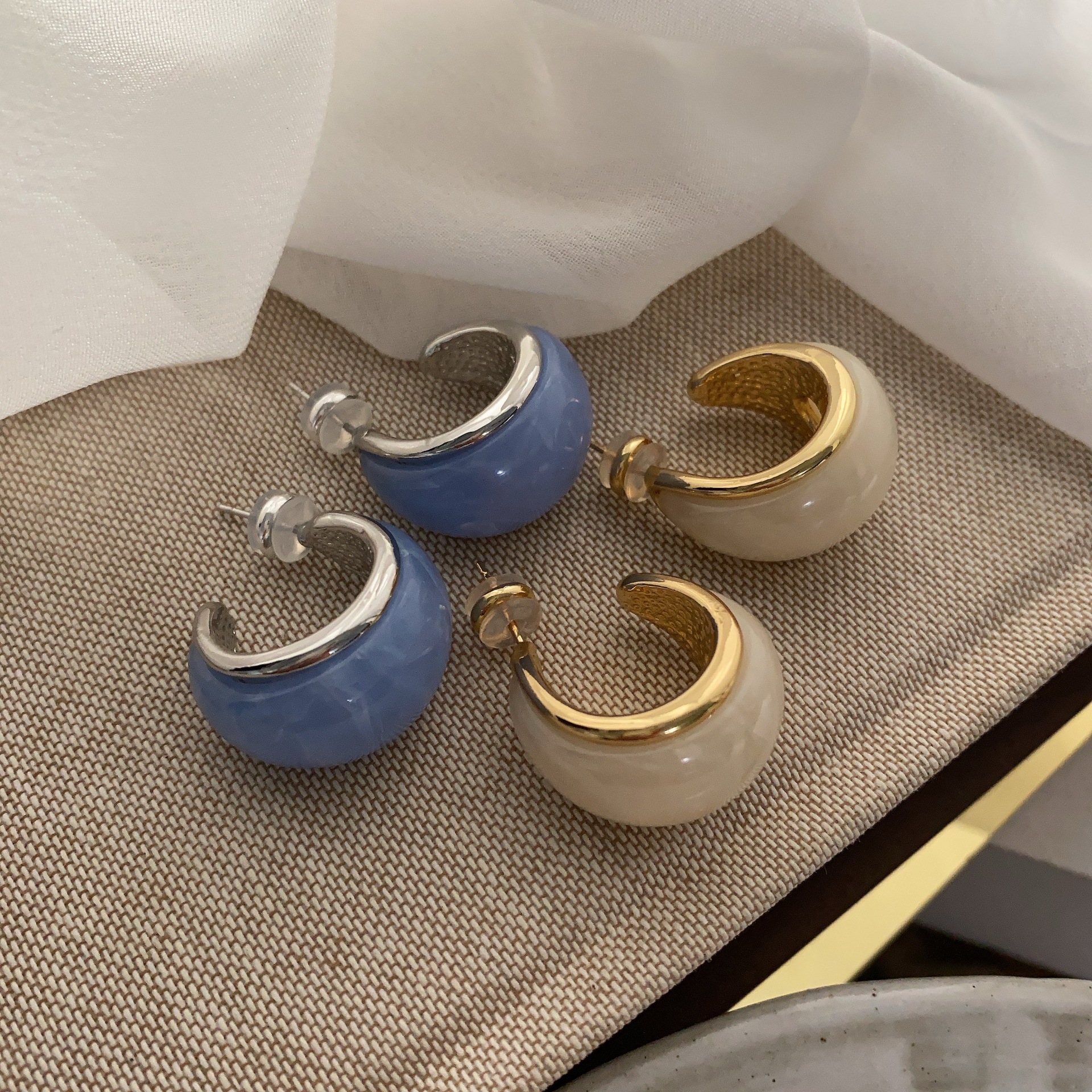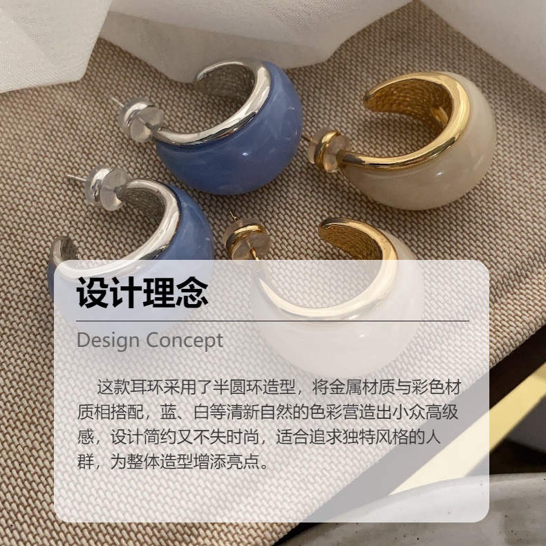 蓝白撞色复古风耳饰克莱因法式设计高级感新款小众简约别致耳钉女