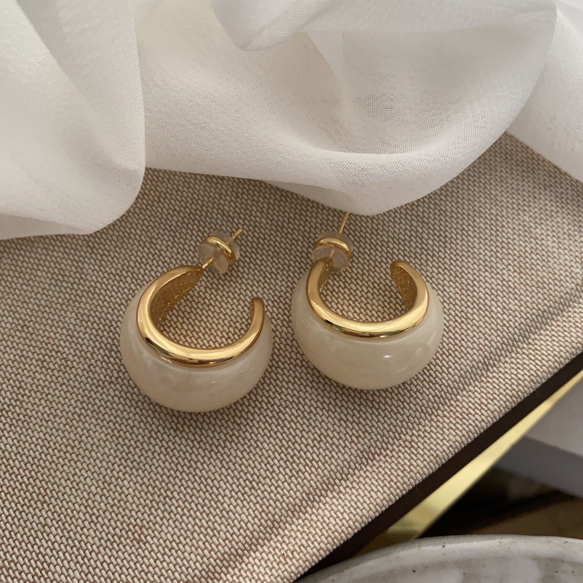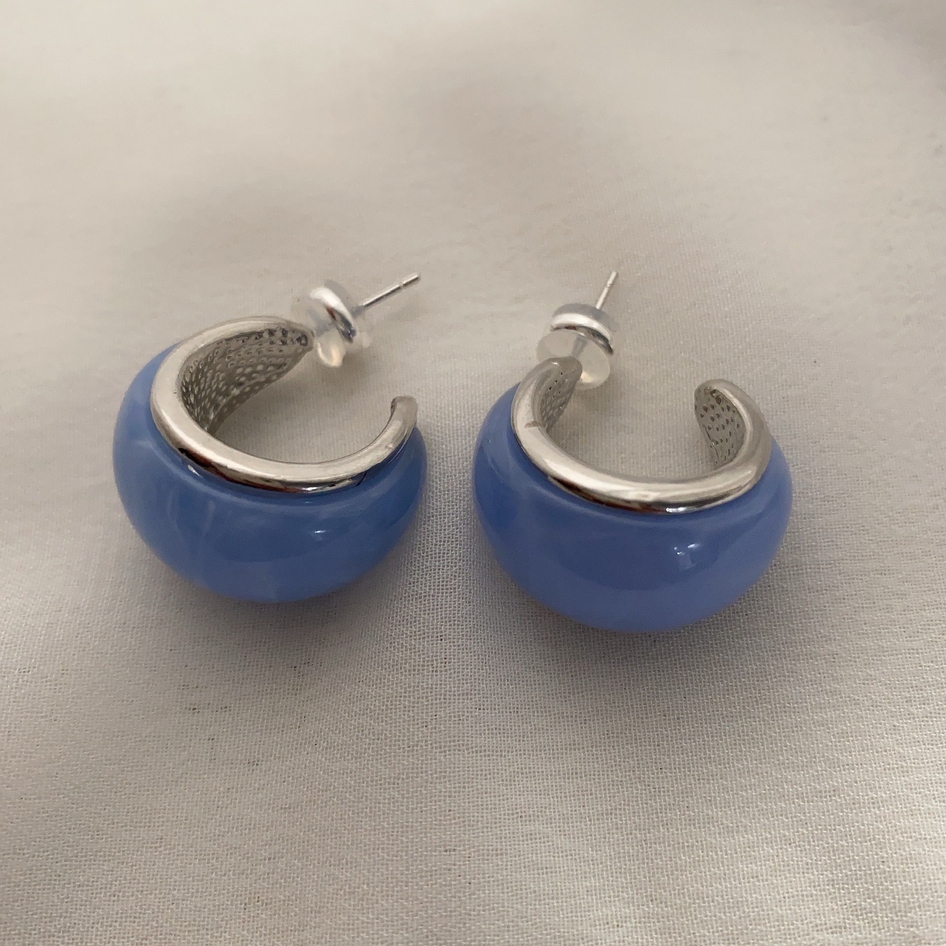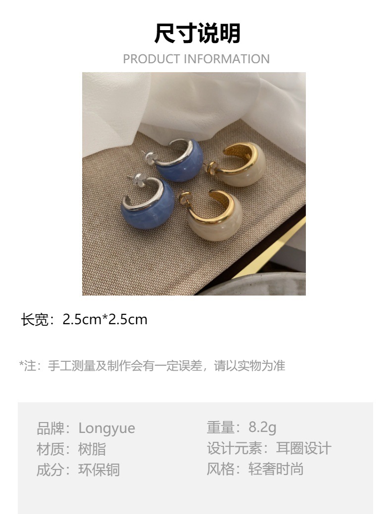 蓝白撞色复古风耳饰克莱因法式设计高级感新款小众简约别致耳钉女