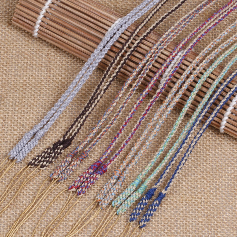 藏式横穿天珠棉线挂绳唐卡平安扣吊坠挂绳路路通项链绳挂脖绳批发